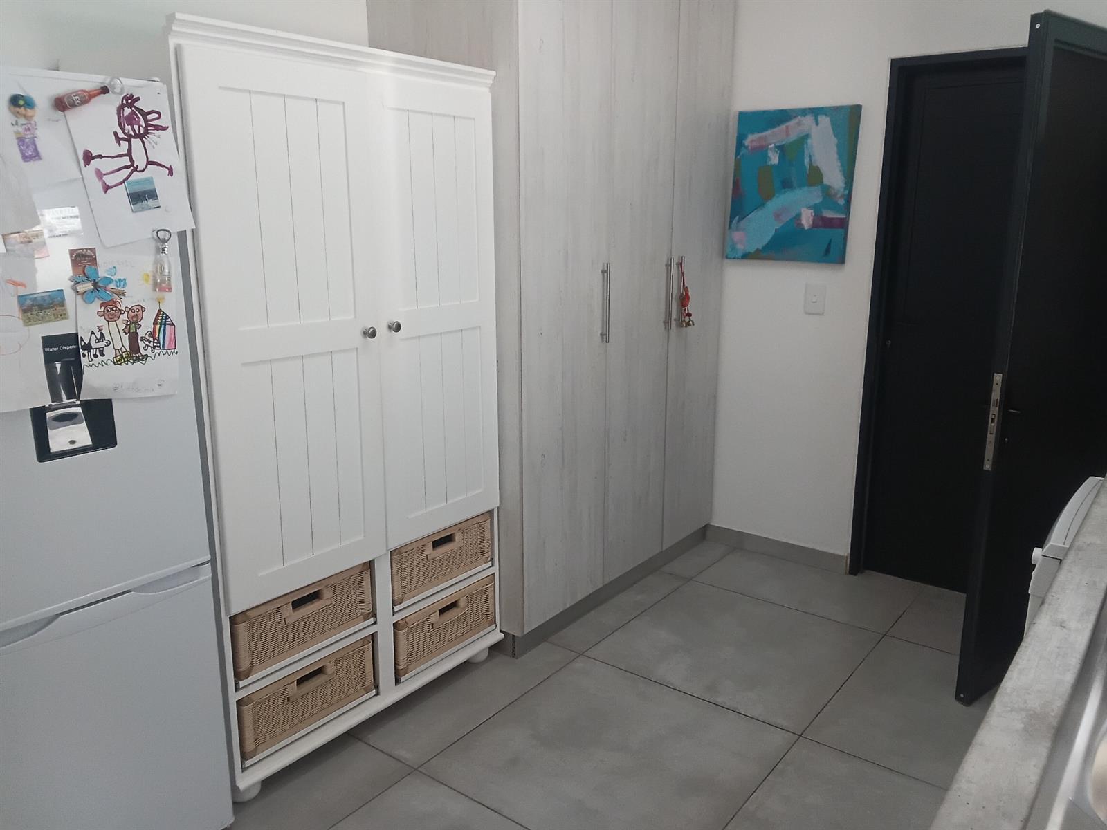 The modern kitchen is thoughtfully designed with ample cupboard space and a freestanding gas stove, while the large scullery provides all the necessary connections for a washing machine and dishwasher, ensuring practicality without compromising on style.