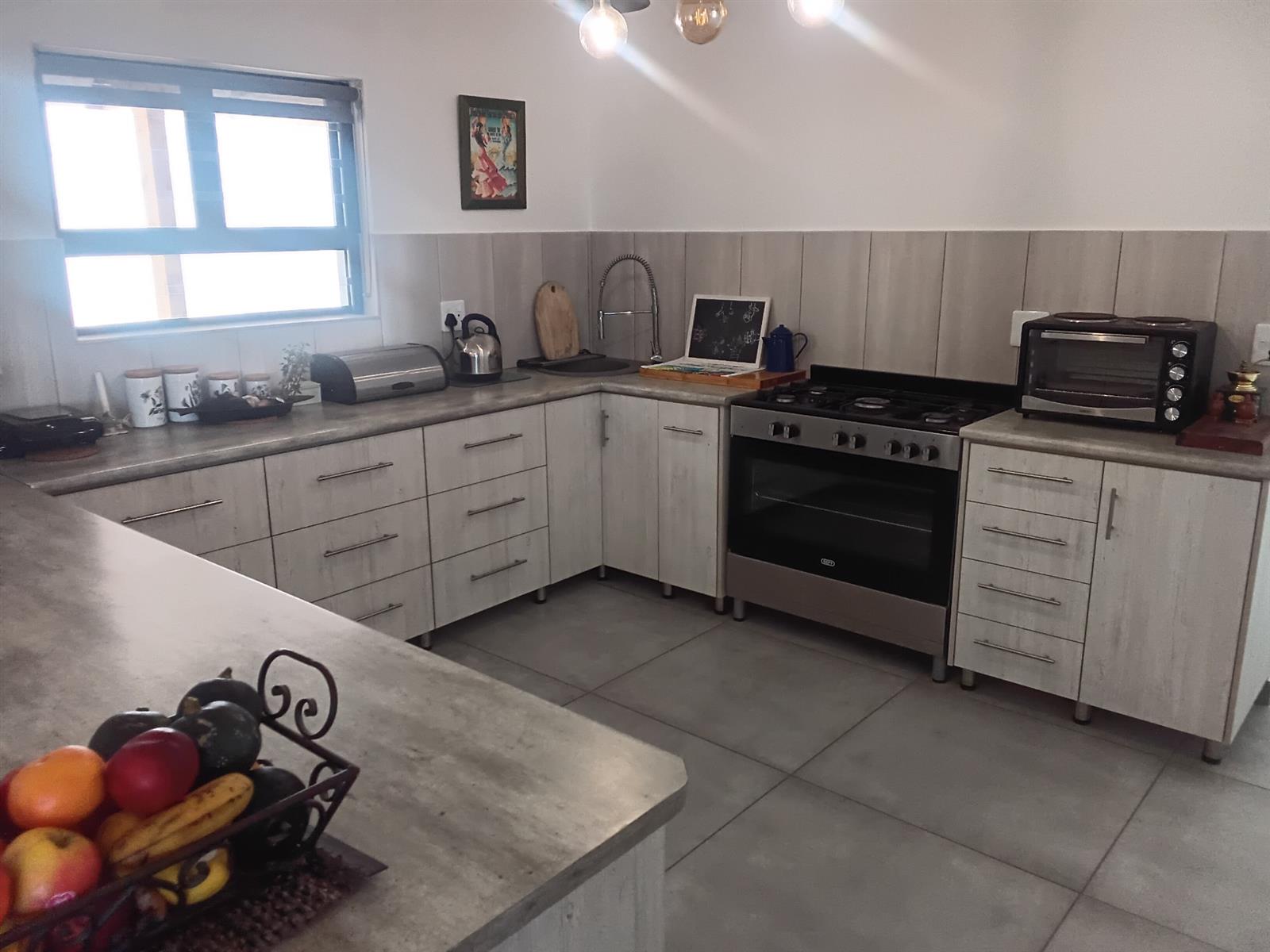 As you enter the home, you are welcomed into a spacious open-plan lounge and kitchen with an impressive double-volume ceiling that enhances the feeling of light and space. The built-in braai in the lounge creates a warm and inviting atmosphere, perfect for entertaining family and friends or enjoying cozy winter evenings.