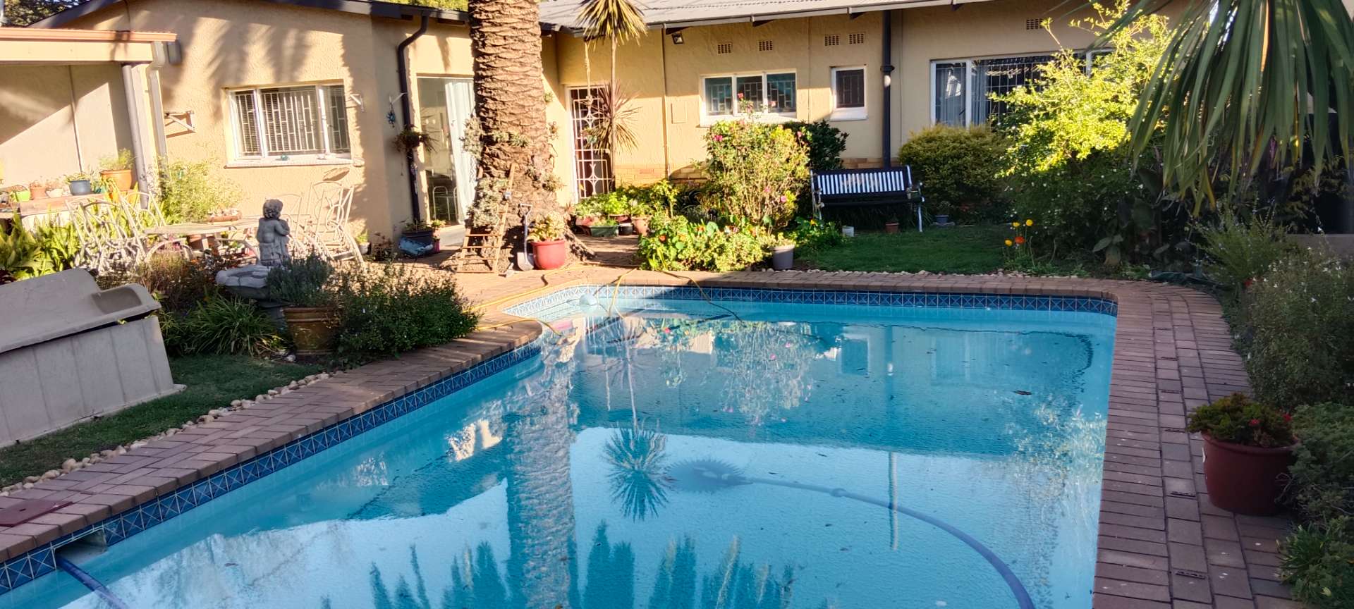 Step inside to discover a generous family lounge and dining room, perfect for gatherings and cozy evenings. The sunny TV room, complete with a built-in bar, provides an inviting space for leisure and relaxation. A sliding door opens onto a beautifully established garden and sparkling swimming pool.