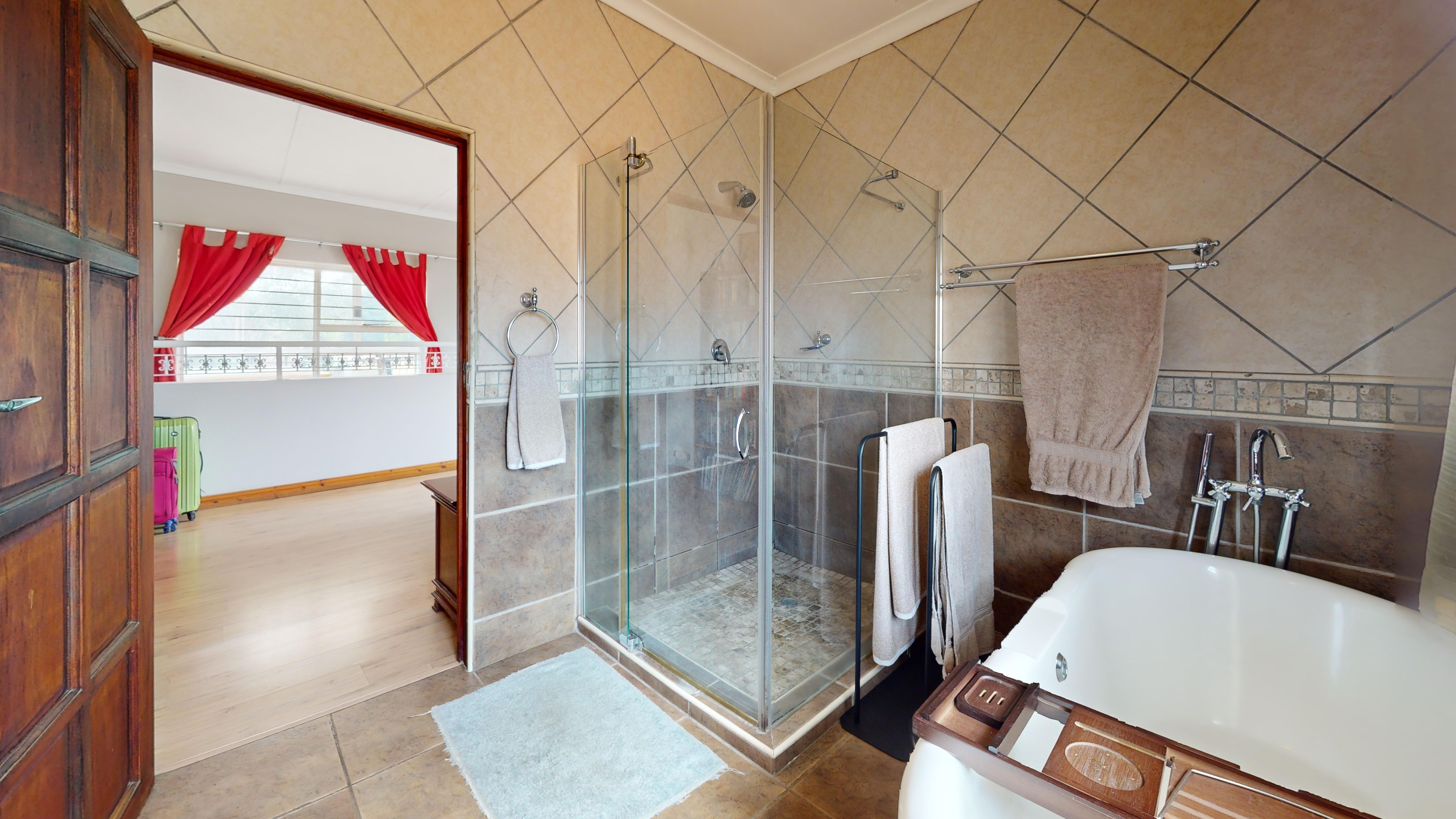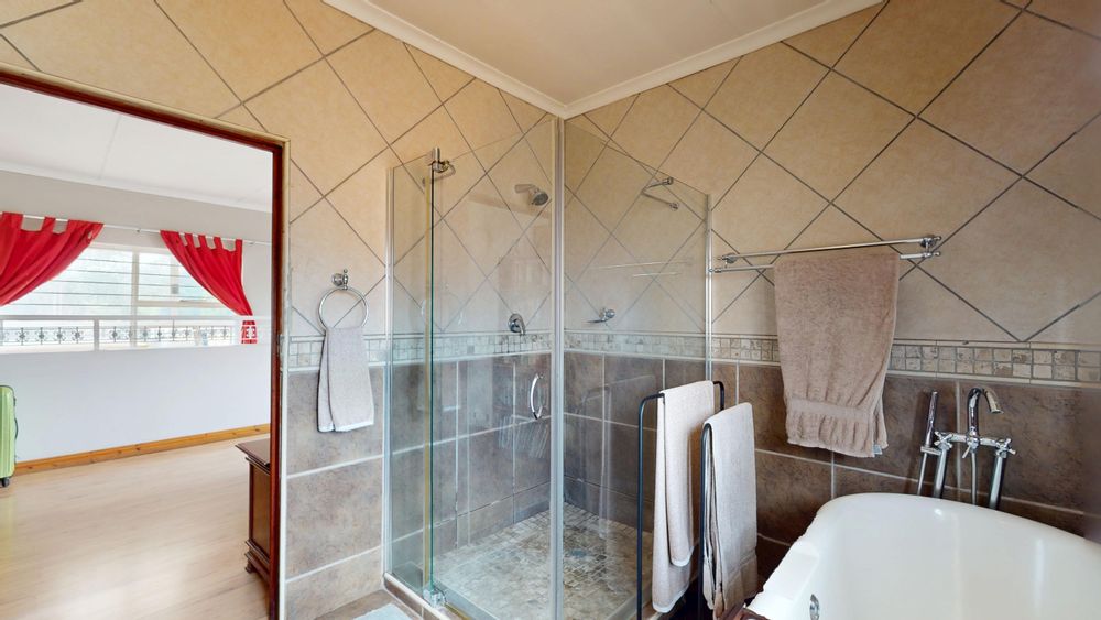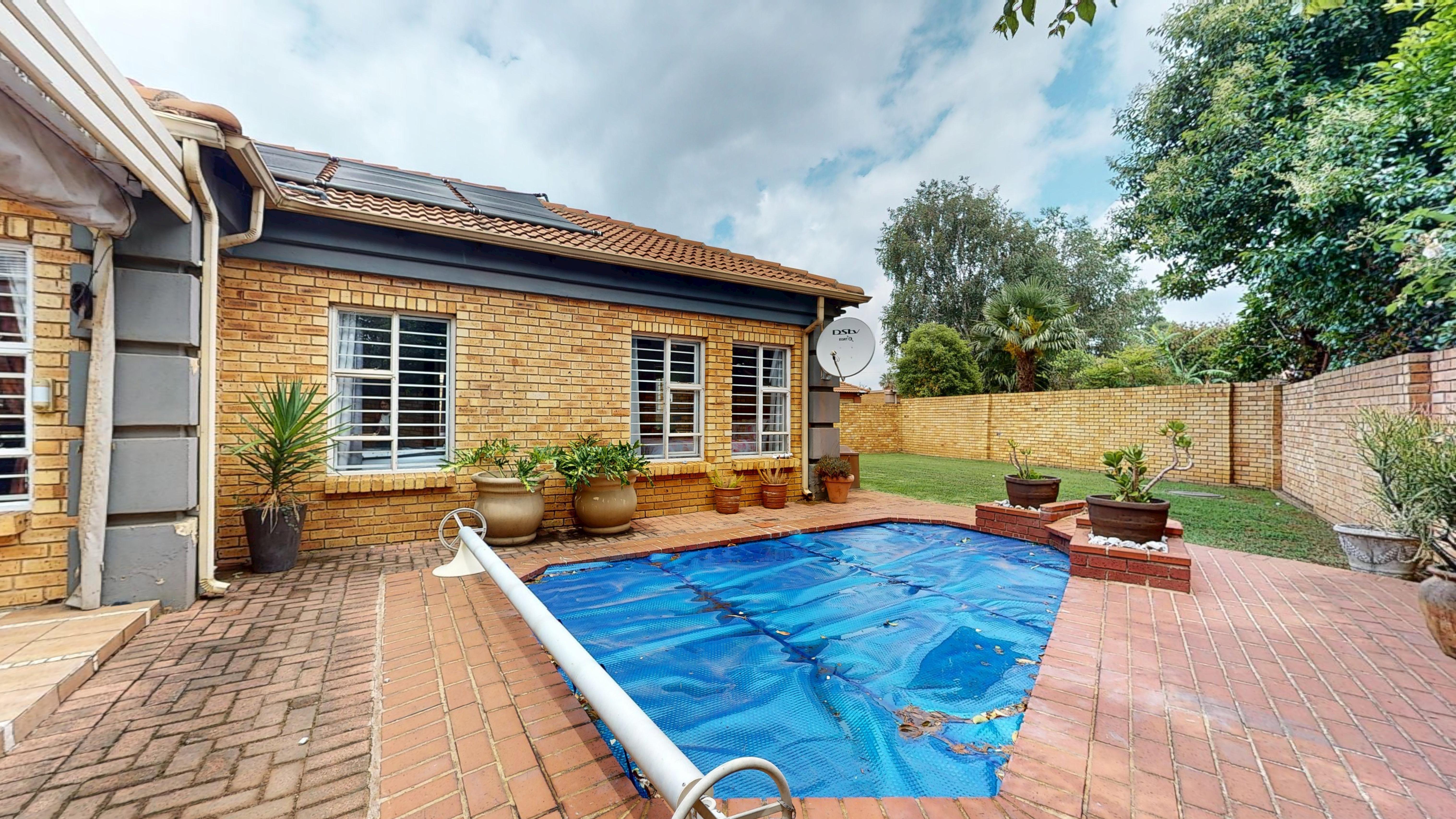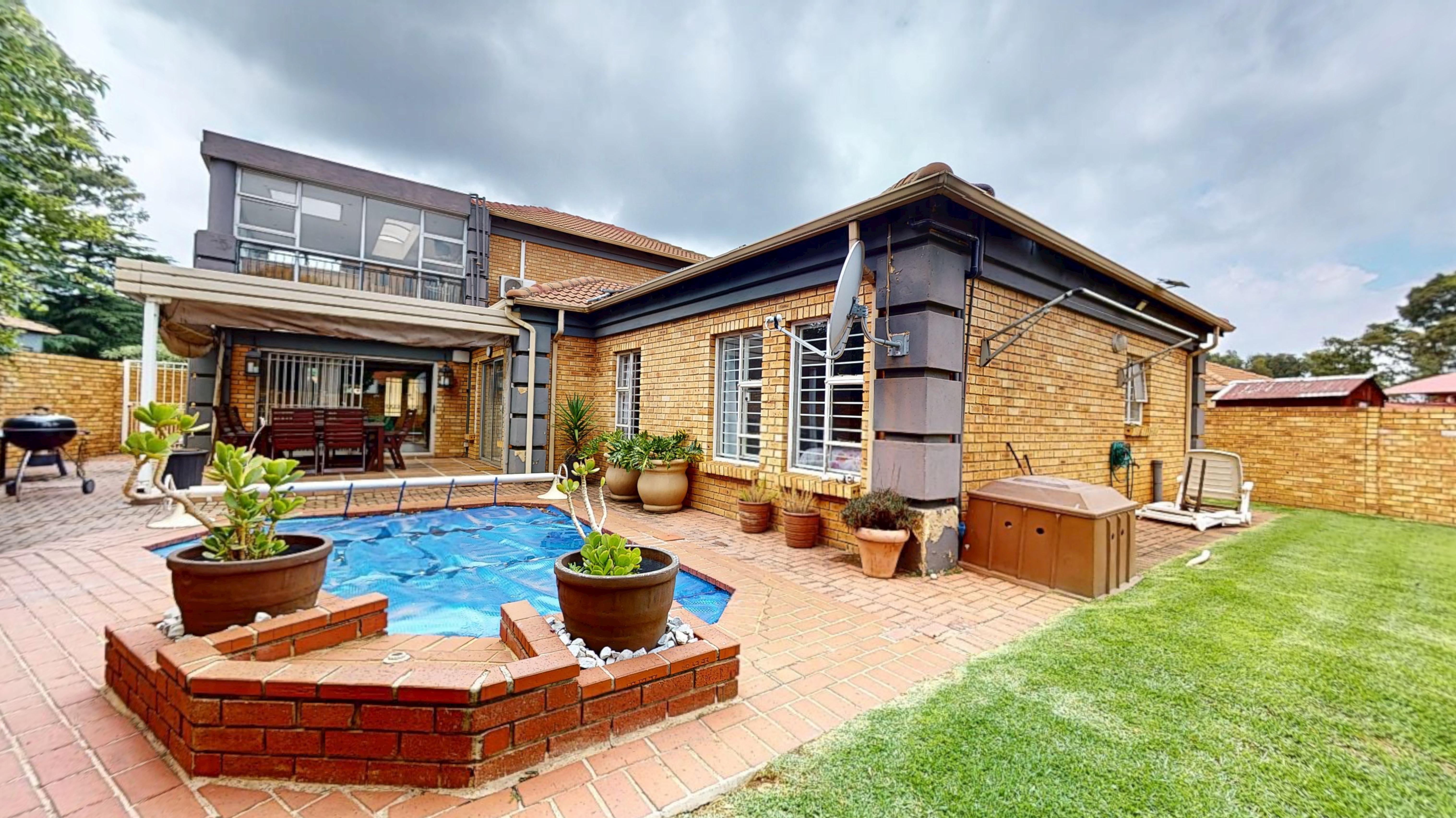Experience modern elegance and comfort in this immaculate double-story freestanding home, perfectly positioned in a sought-after golf estate in Boksburg. This face-brick, low-maintenance property combines stylish design with practical living. The home features a spacious lounge, a separate dining area, and a beautifully finished kitchen with granite countertops, sleek modern cupboards, a walk-in pantry, and a convenient serving hatch. All bedrooms are fitted with laminated flooring, and the passage is enhanced by a skylight that brightens the interior with natural light. Two of the bedrooms include en-suite bathrooms, while the upstairs master suite boasts a walk-in wardrobe, private balcony, and a luxurious enclosed entertainment space complete with a jacuzzi and sauna.