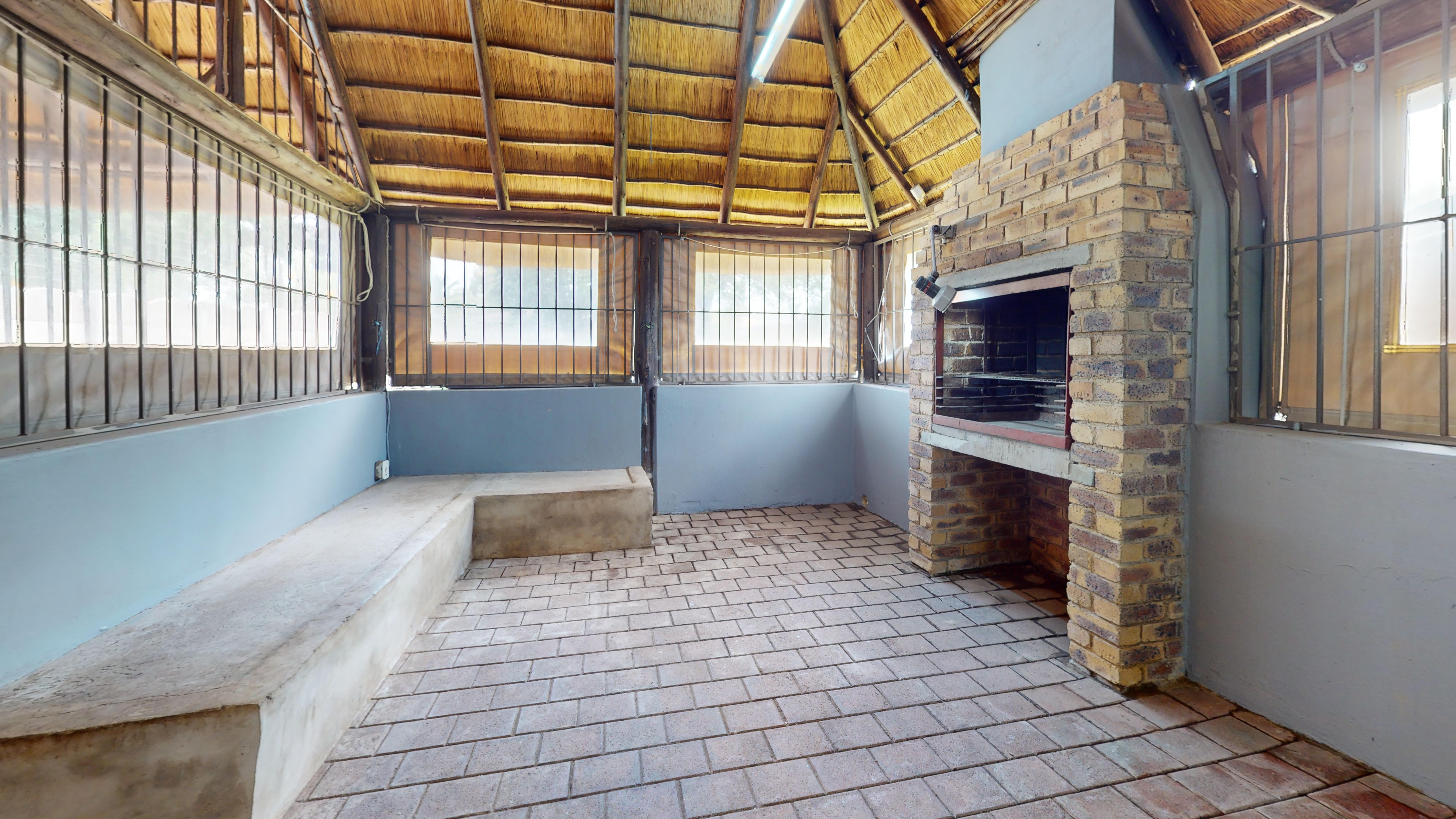 A highlight of this property is the large, fully fenced yard which is perfect for children, pets, gardening or entertaining. The thatched Lapa with built-in braai is ideal for weekend gatherings and social occasions, offering a dedicated space to enjoy the outdoors all year round. The long driveway leads to undercover parking and additional space for multiple vehicles, making this home both practical and welcoming for residents and visitors. There is also an outside room with potential use as storage, workshop area, or laundry space.