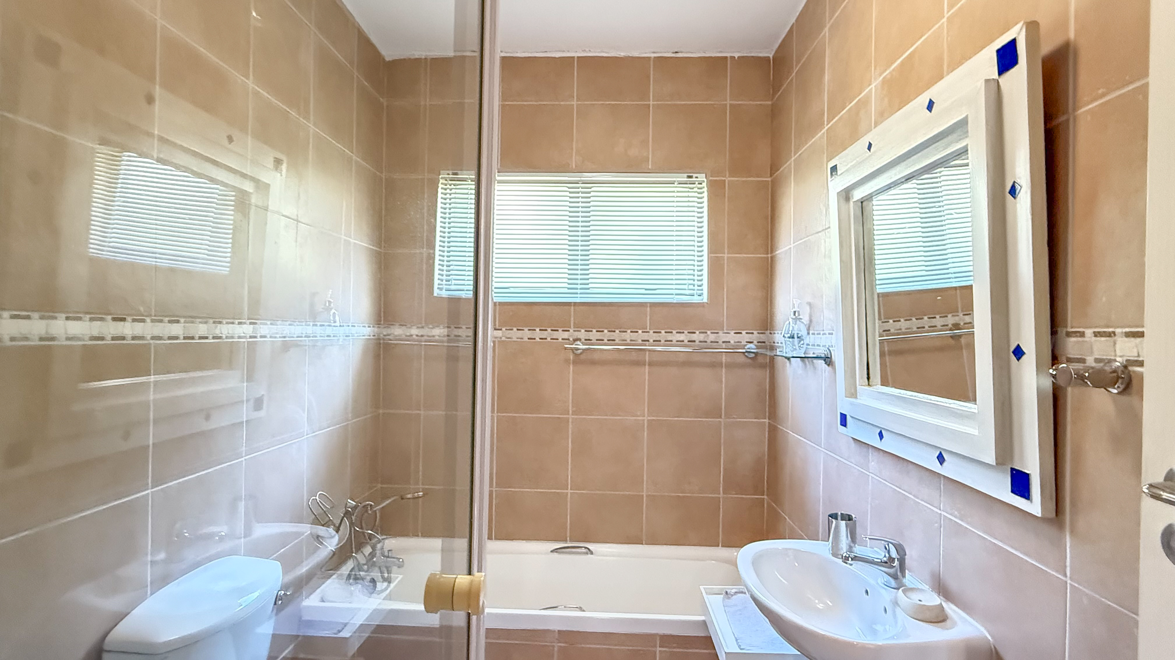 The master bedroom features an en-suite bathroom, providing a peaceful retreat, while the two additional bedrooms are bright and spacious, accommodating family and friends with ease.