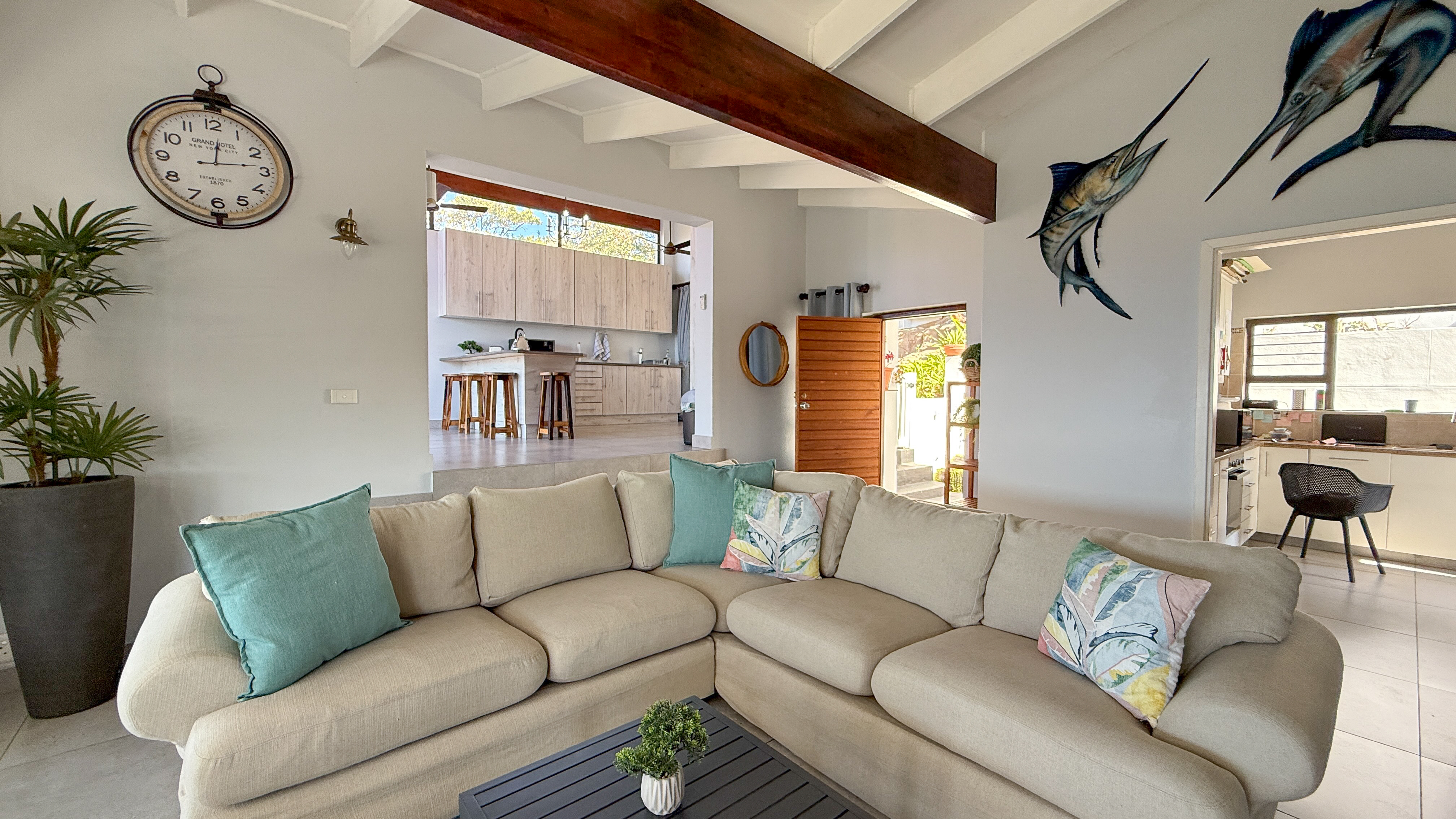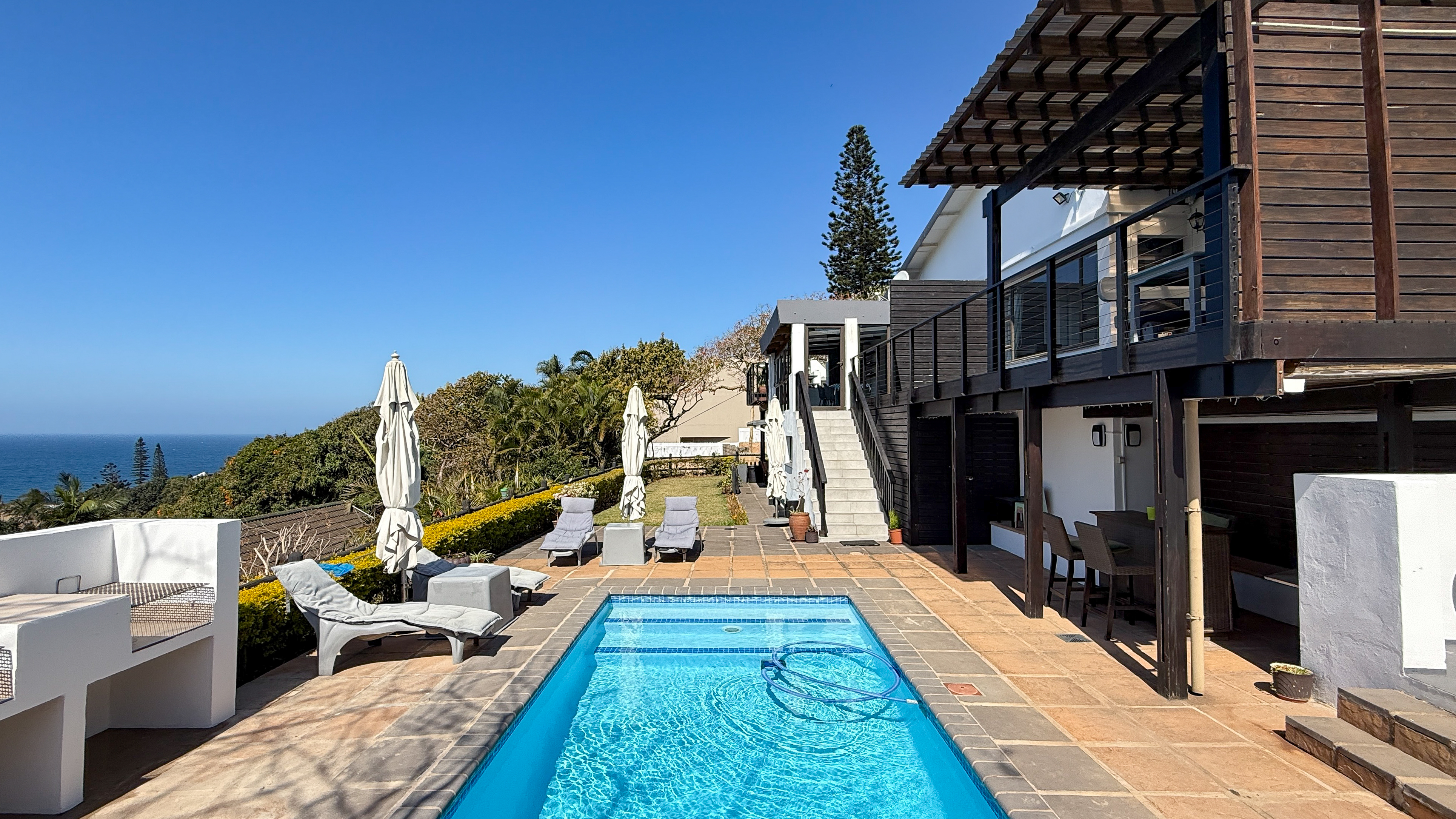 The property has recently been revamped and is immaculately maintained ensuring neatness, tidiness, and absolutely move-in ready. A sparkling swimming pool forms the heart of the home, surrounded by inviting entertainment areas, braai area where you can watch the sea whilst braaing and the beach is just a short walk away.