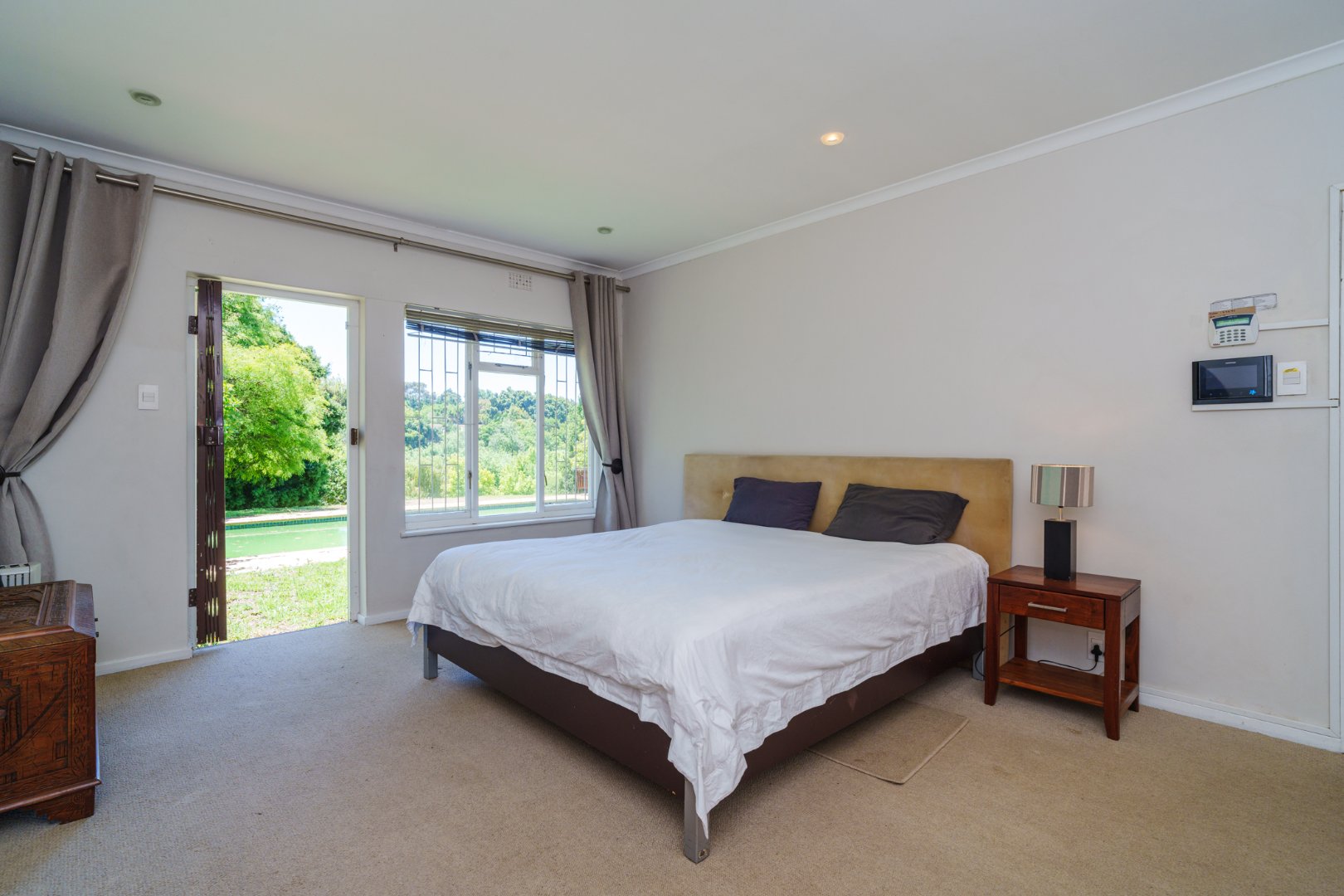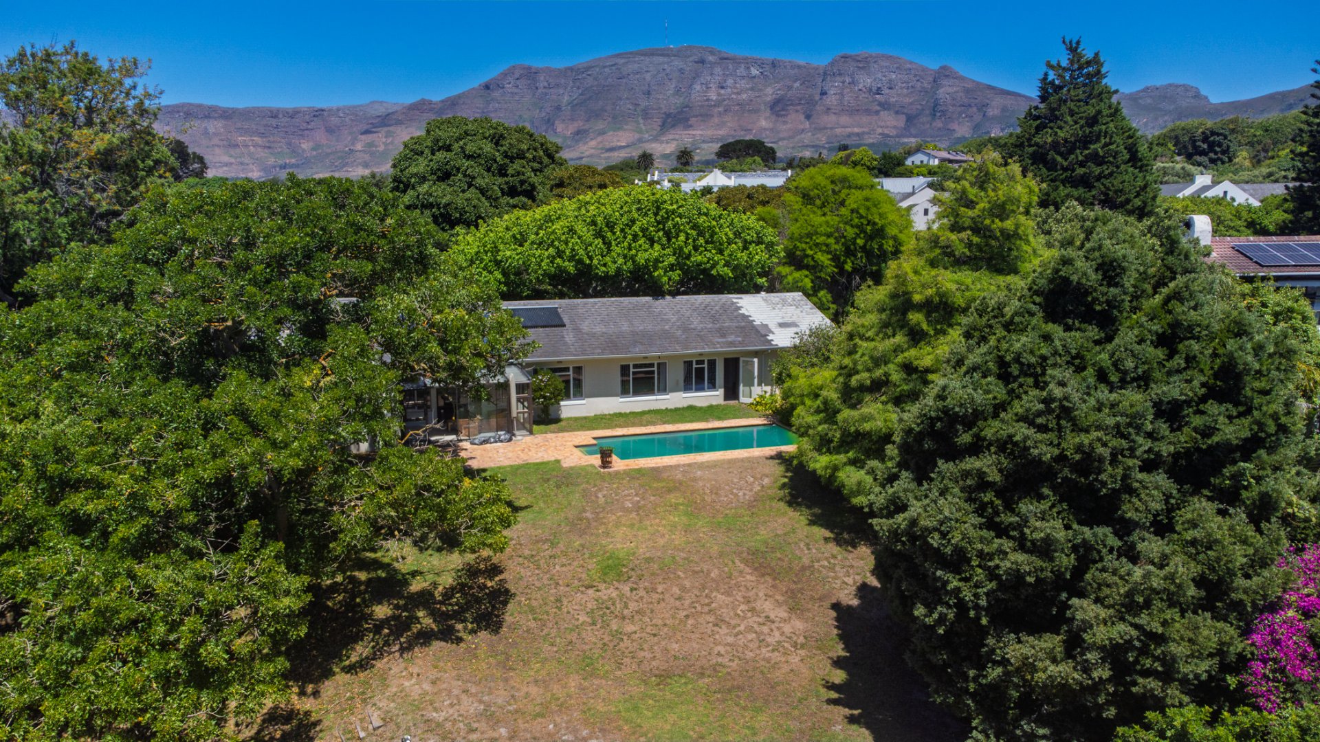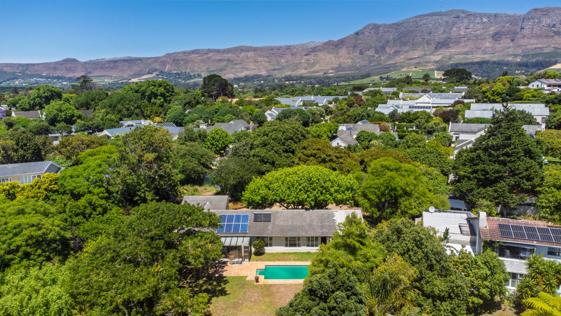 Practical and sustainable extras: double garage and multiple off-street parking bays, solar panels + solar geyser for energy efficiency, borehole and drying yard, all wrapped in a secure package with internal alarm, exterior beams and electric fencing.
