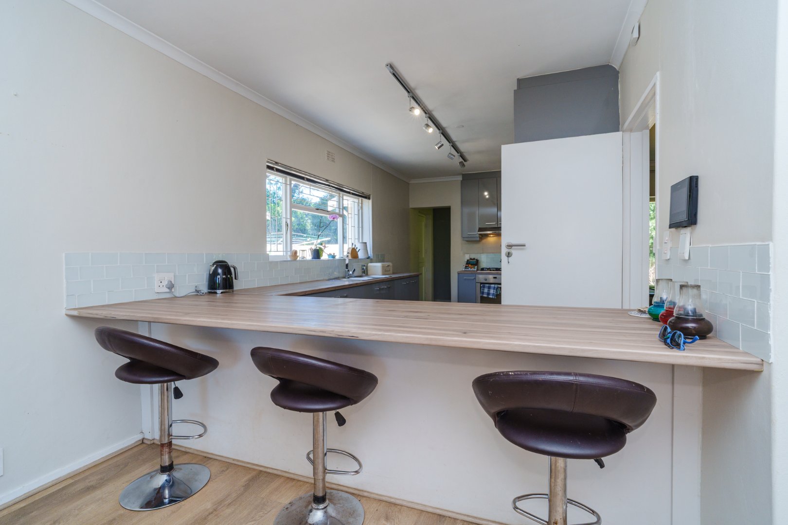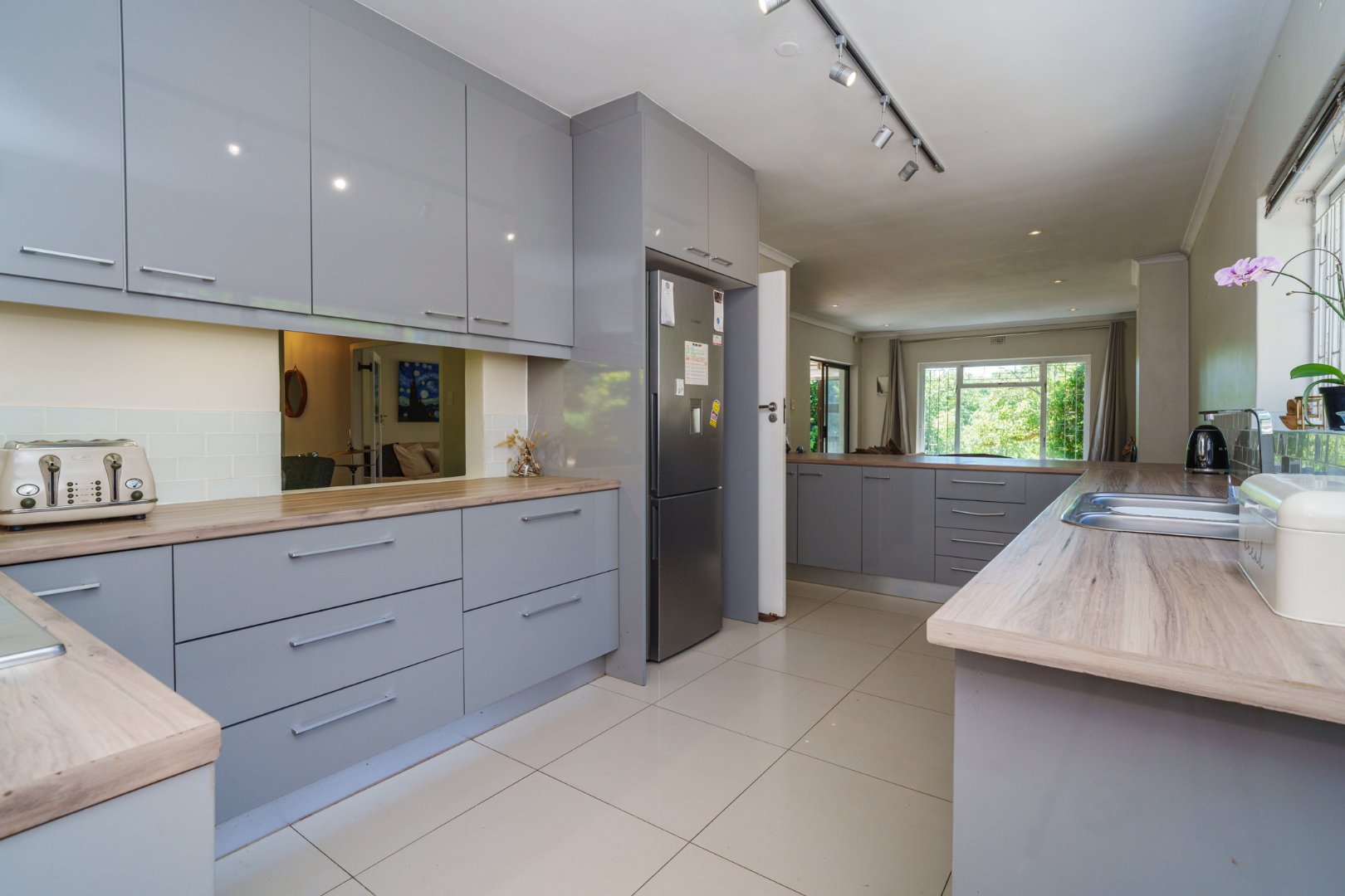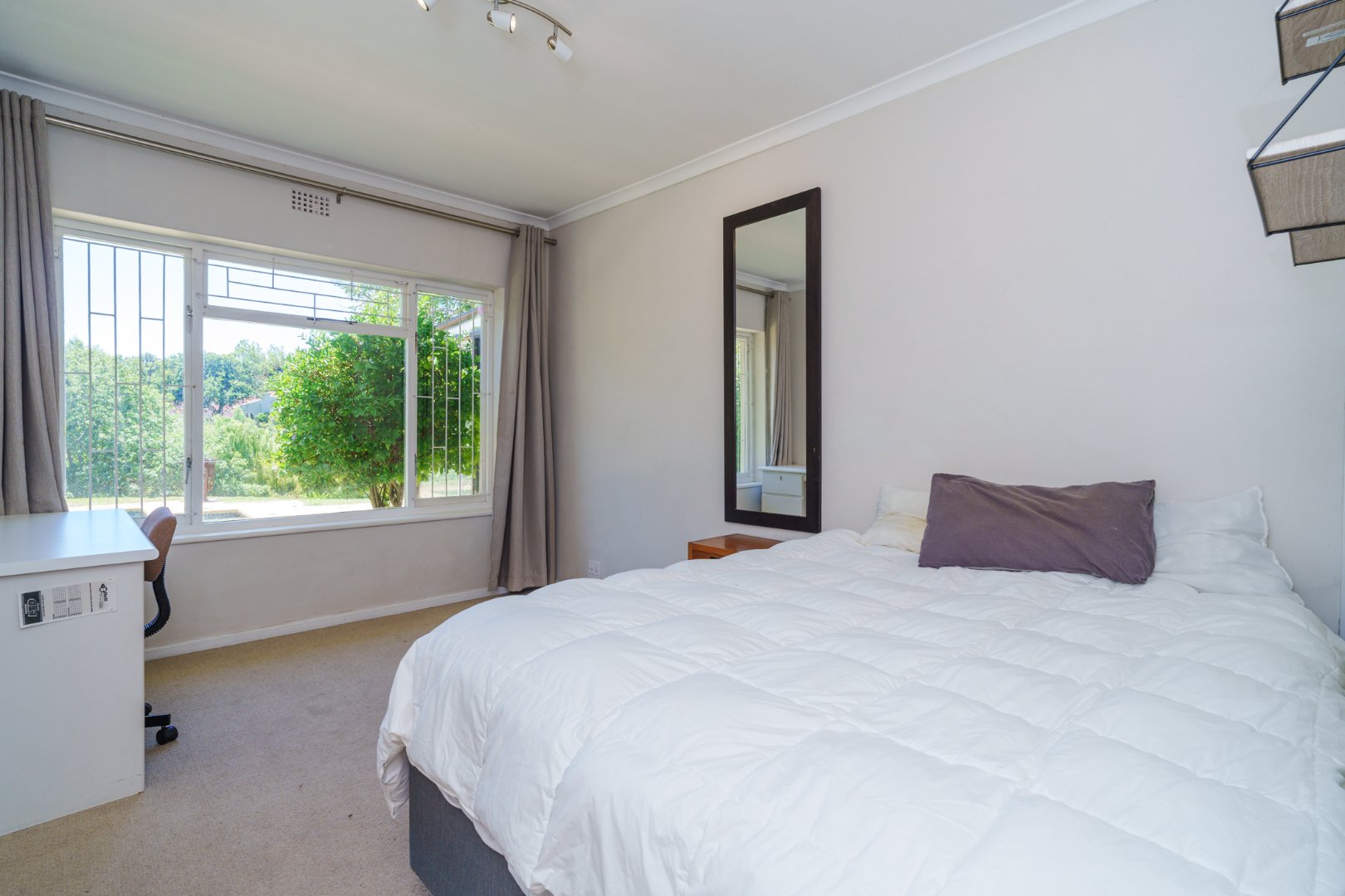 Practical and sustainable extras: double garage and multiple off-street parking bays, solar panels + solar geyser for energy efficiency, borehole and drying yard, all wrapped in a secure package with internal alarm, exterior beams and electric fencing.