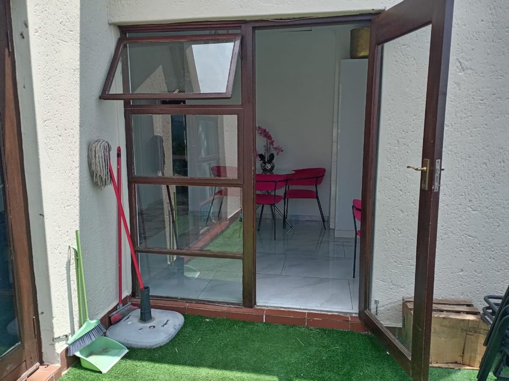 Beautiful communal gardens, swimming pool, and braai area with shaded seating