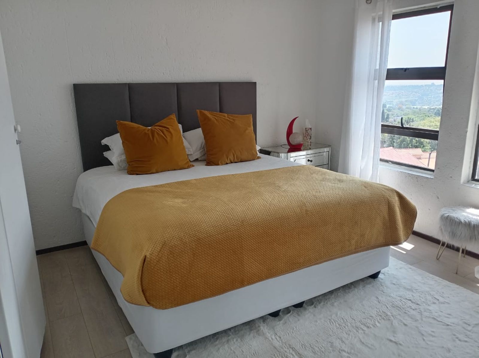 2 spacious bedrooms with laminated flooring and ample cupboard space