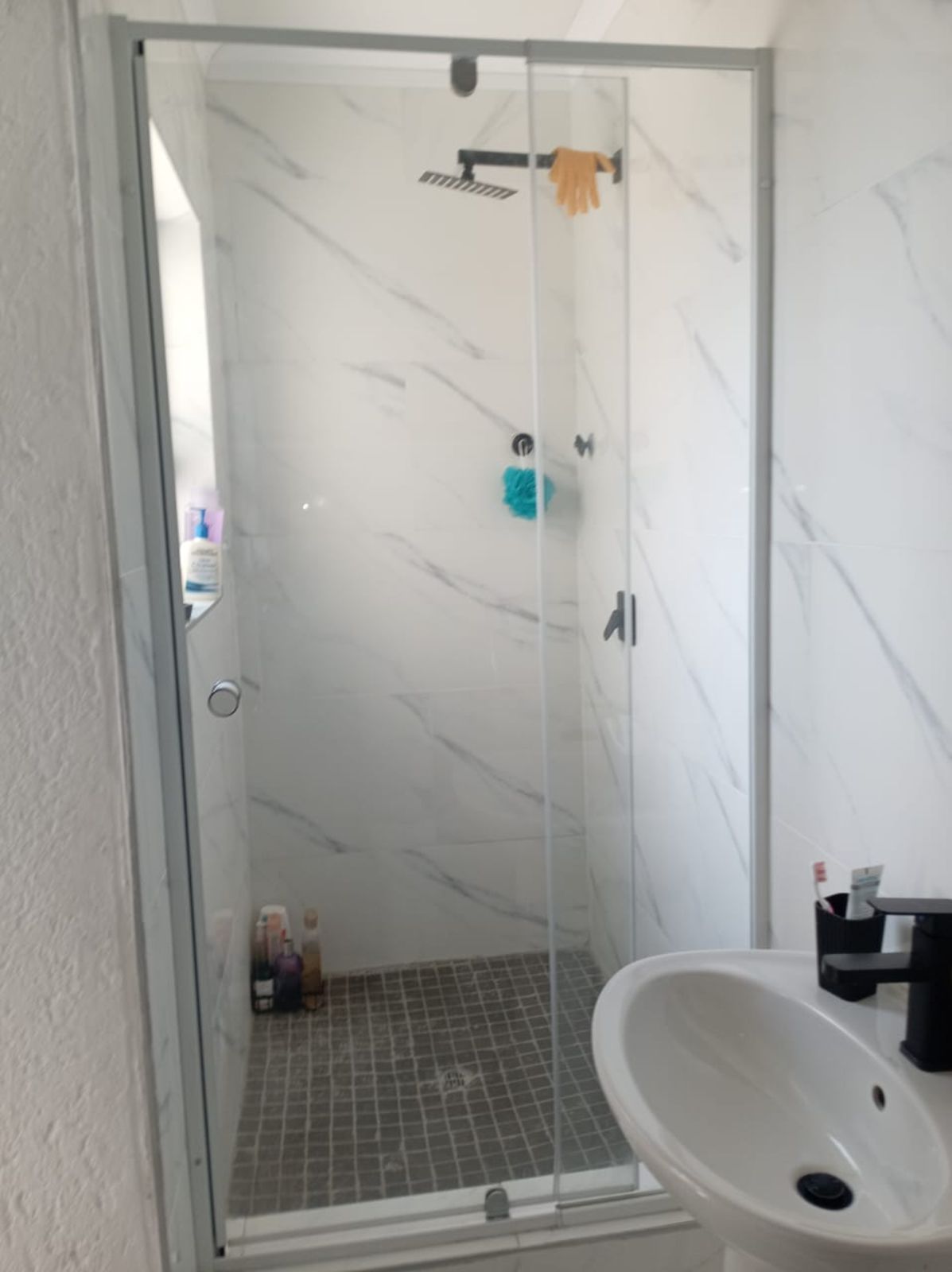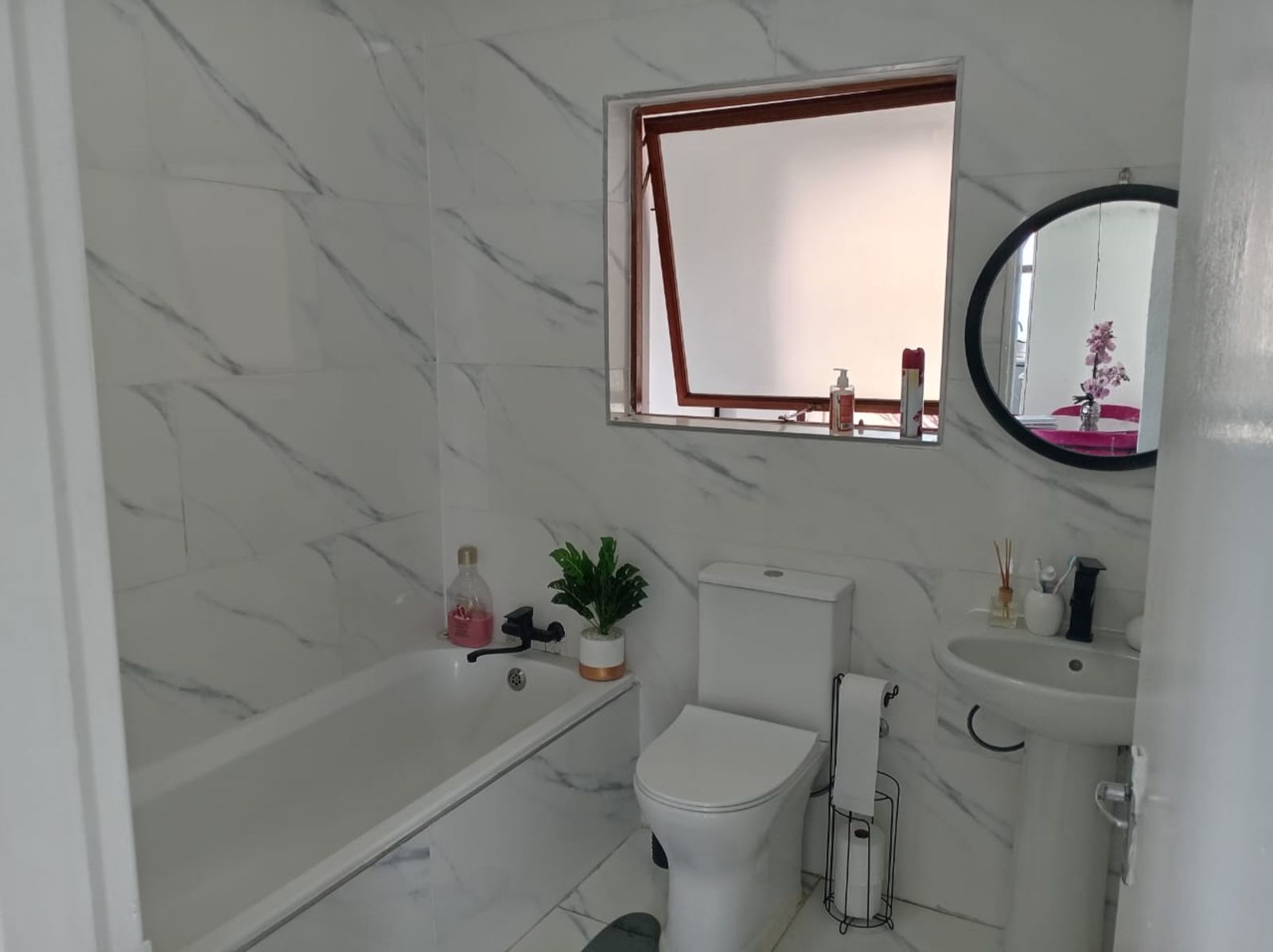 2nd bathroom fully tiled from floor to ceiling with modern finishes