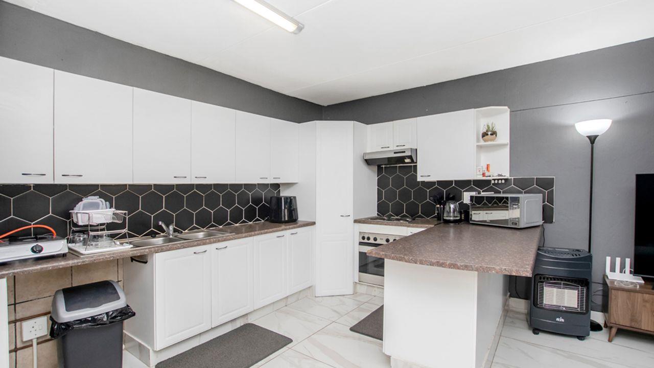 The kitchen boasts ample storage space within the stylish cupboards and countertops, catering to both culinary enthusiasts and those who appreciate functionality with finesse.