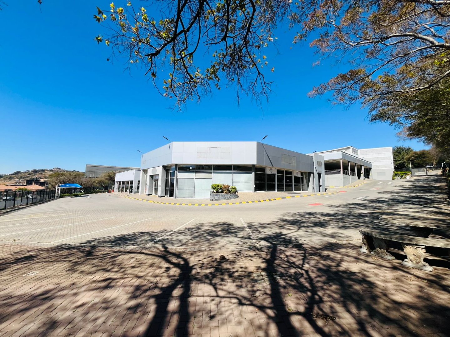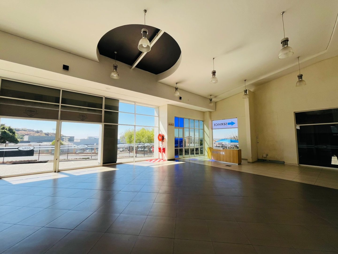 The expansive premises feature a spacious reception area, a range of tidy open-plan and executive offices, a wash bay, service and maintenance zones, and a large, adaptable showroom. The property is fully air-conditioned and benefits from plenty of natural light, creating a pleasant working environment.