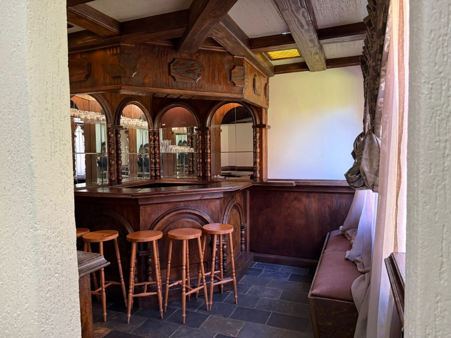 A warm, wooden built-in bar with its own private entertainment lounge is ideal for hosting and relaxing. Outside, a large wrap-around garden includes a big swimming pool and built-in braai, providing loads of space for kids to play or for the avid entertainer.
