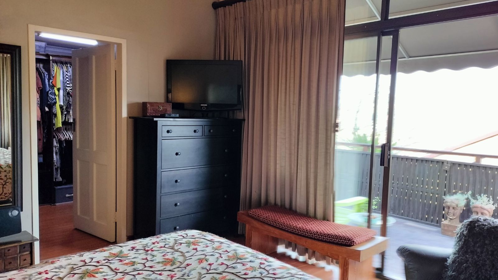 Ascending the beautifully tiled staircase, you are greeted by a generous open-plan living space that seamlessly combines comfort and style. Down the hall, the main bedroom impresses with laminated flooring, a large walk-in closet, air con and a private balcony that overlooks panoramic views of the area. The en-suite bathroom features a corner bath, shower, basin, and toilet, while the main bedroom and walk-in closet are both fitted with underfloor heating for added comfort.