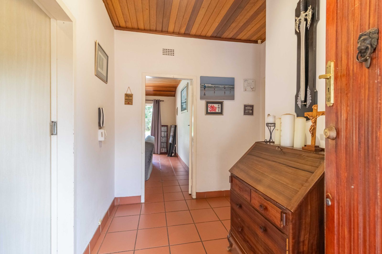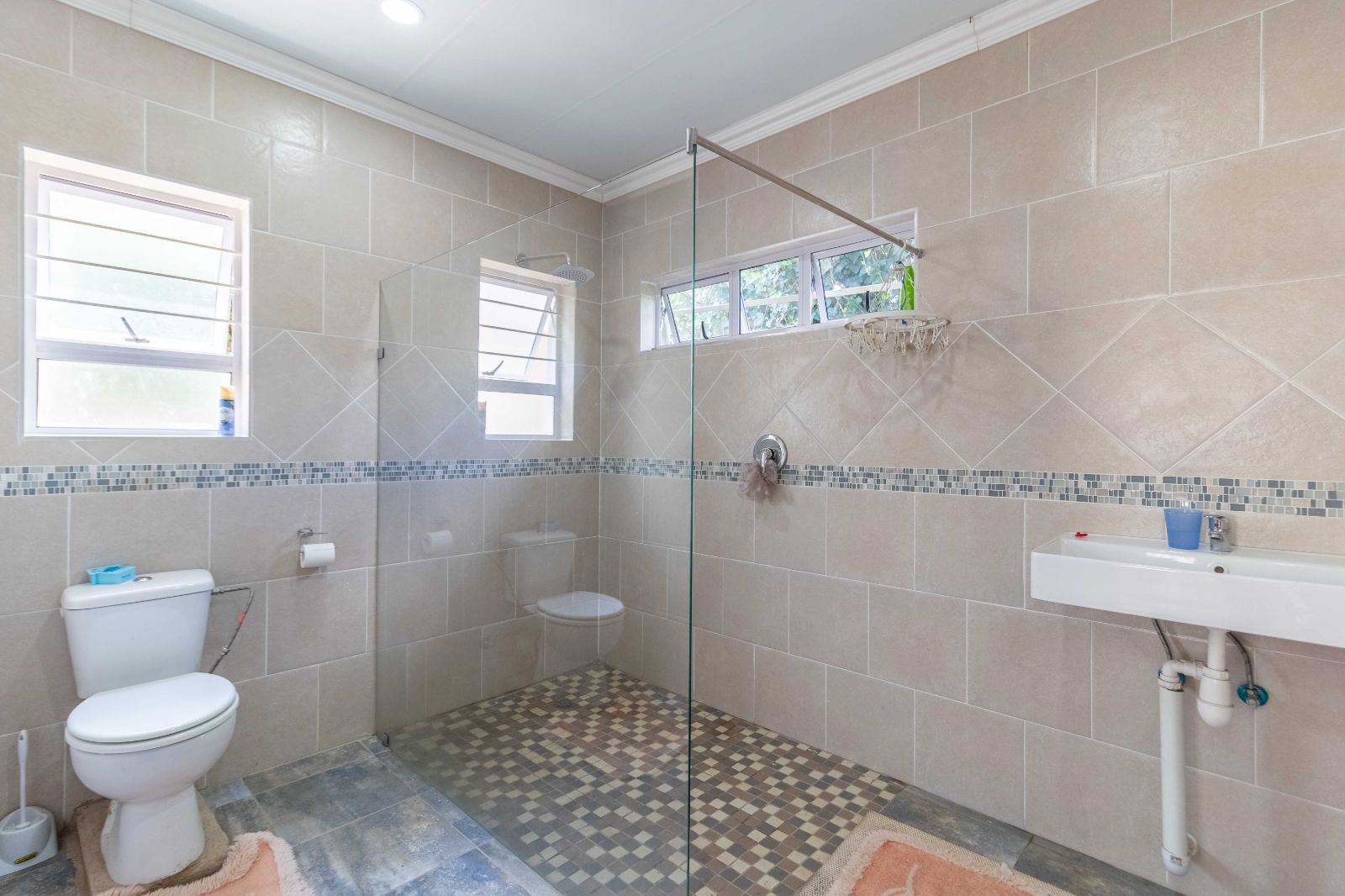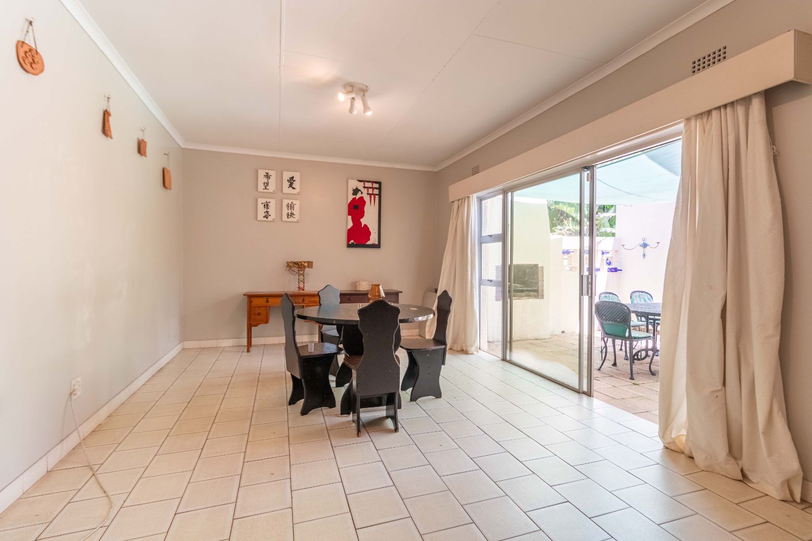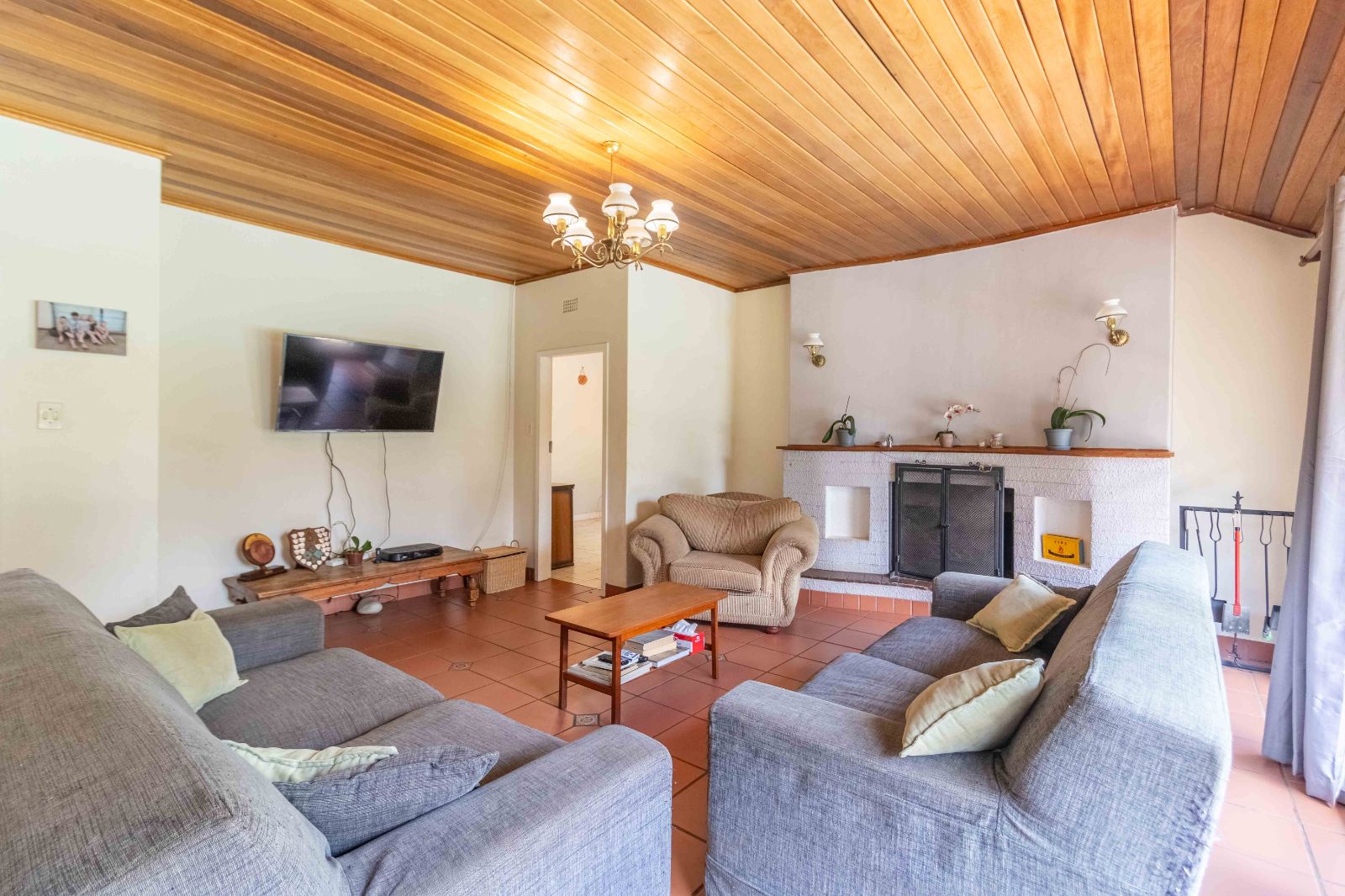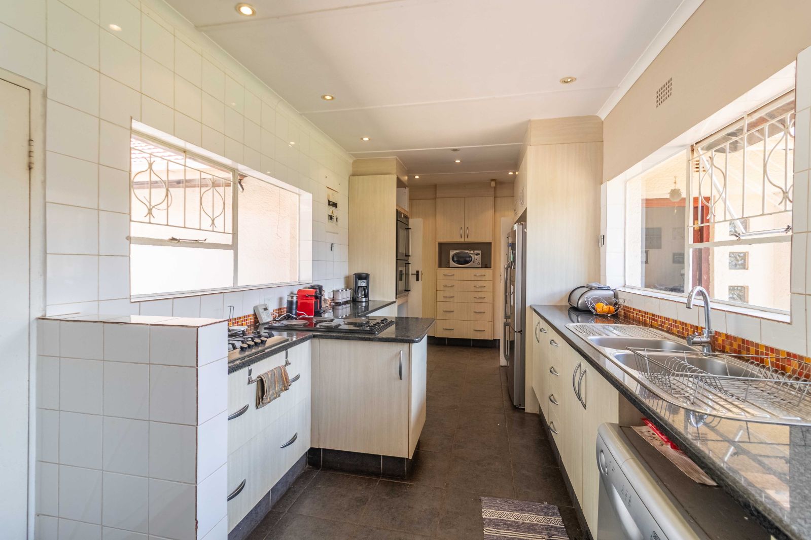 At the heart of the home is a fully equipped modern kitchen with granite countertops, both gas and electric stoves, ample cabinetry, and a pantry — perfectly suited for family living and entertaining. Additional features include a double garage, helpers’ quarters, pre-paid electricity, and a solar geyser for energy efficiency.