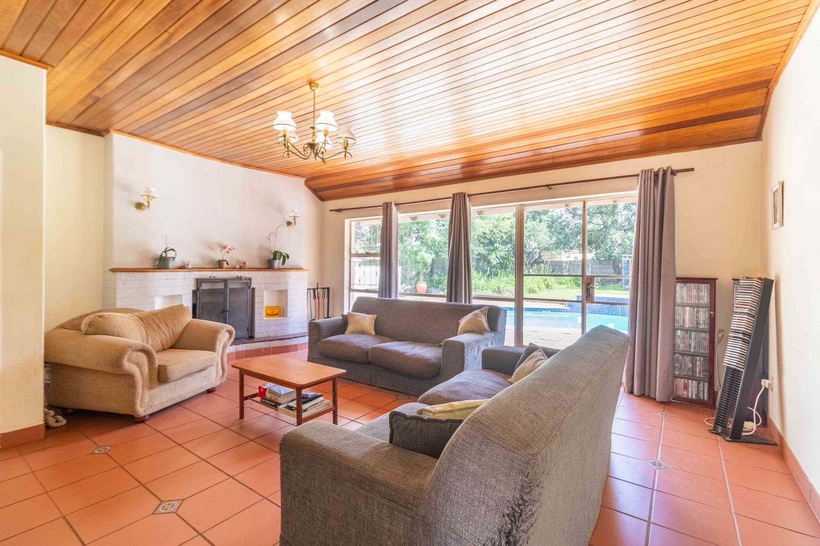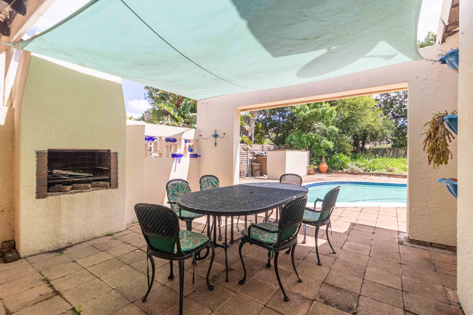The home offers a separate lounge and dining area, both flowing seamlessly onto a covered patio with built-in braai, ideal for entertaining while overlooking the gorgeous pool and vast, child- and pet-friendly backyard. Notably, the lounge, dining area, patio, and all bedrooms are oriented to capture serene garden and pool views, enhancing the sense of space and tranquility throughout.