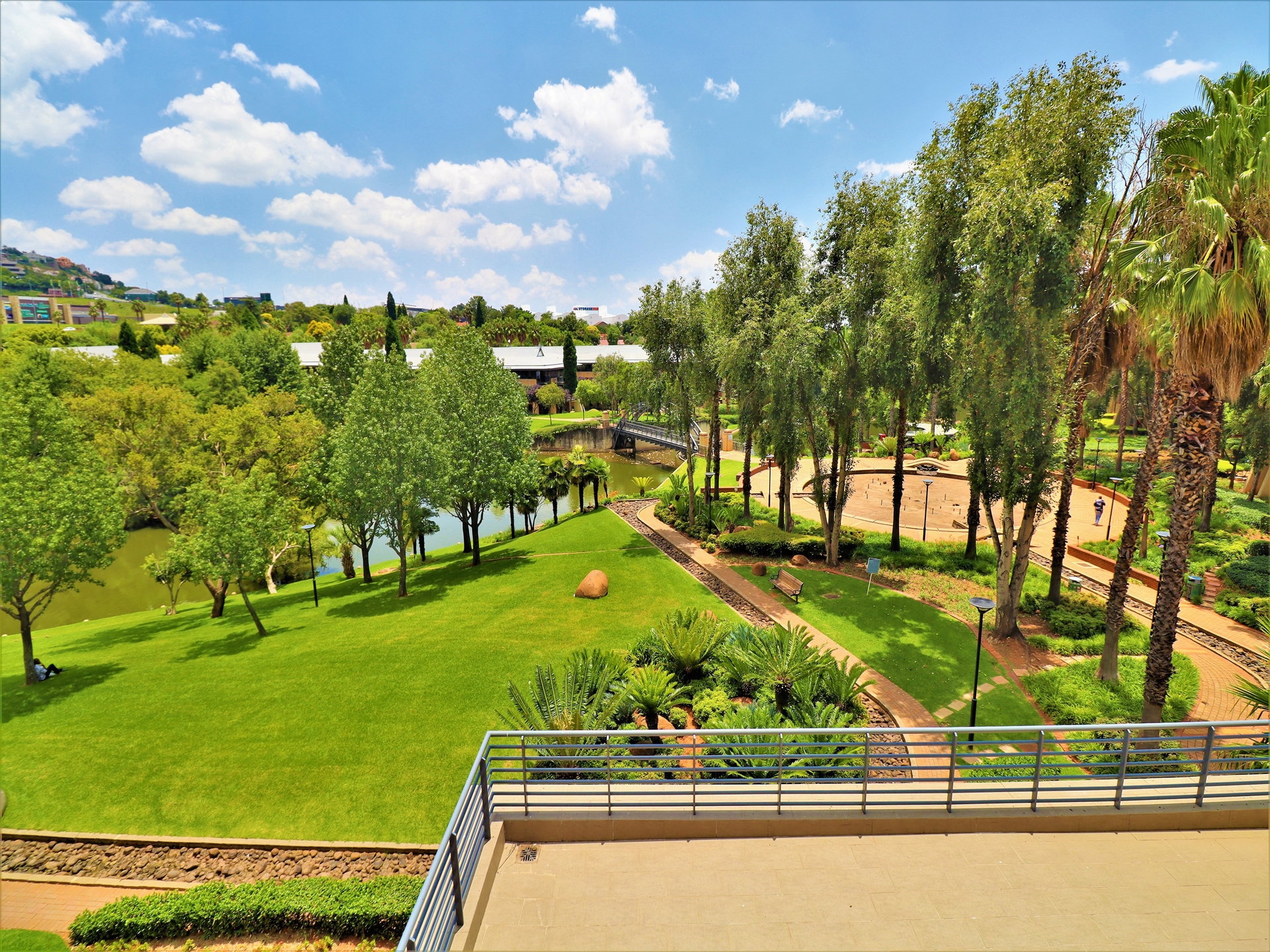 Constantia Office Park is ideally situated just of the N1 freeway in Constantia Kloof, Roodepoort. Upon entering the park you immediately experience the tranquil environment with an eye-catching fountain and a convenient fuel station to keep you on the move. The office park consists of 17 well-maintained face brick office buildings, some reaching a towering height of 4-floors. Each building offers an access controlled entrance and a welcoming entrance lobby. The office park boasts with lush green gardens, palmb trees and everegreen plants followed by a river that runs through the office park with benches strategically placed to enjoy the scenery.