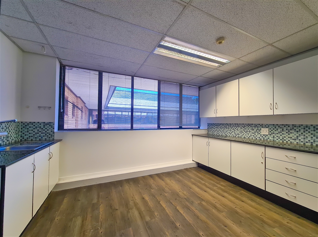 This spacious office to let in Constantia park welcomes you with a dedicated reception area followed by 2 small meeting rooms, a spacious open plan office, a private dedicated kitchen with a coffee station, a server room and a storeroom. The office is filled with natural light and offers endless opportunities for a business to make changes to accommodate any office requirement. All the windows have ready fitted blinds. The building is fibre ready and is conveniently connected to a backup generator and water tanks.