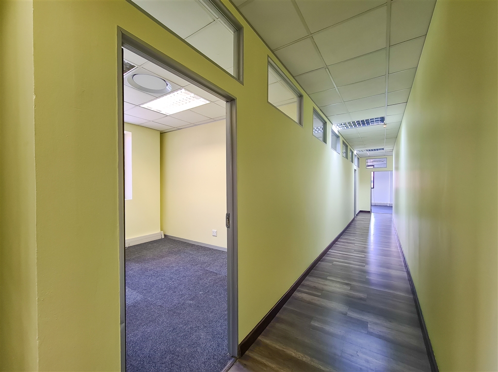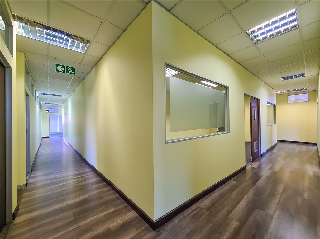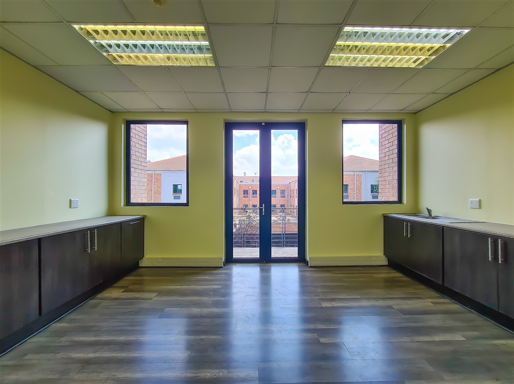 This spacious 567m2 office to let in Quadrum Office Park welcomes you with a spacious reception area followed by a spacious open plan office that can easily be used for training purposes or can be opened completely for a free-flowing office. A passage leads to a spacious boardroom followed by multiple individual offices and a natural light filled kitchen with access to a private dedicated balcony. This office has a lot of potential to accommodate any requirements. The building is ideally supported by a generator that operated 24/7 and back-up water tanks. Fibre is already pulled into the office. The landlord offers a generous tenant installation allowance to assist with any required changes. A roof-top venue is also available to rent for special events.
