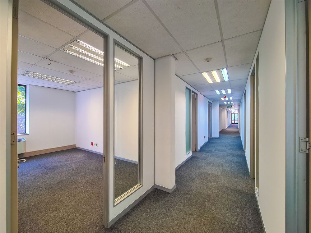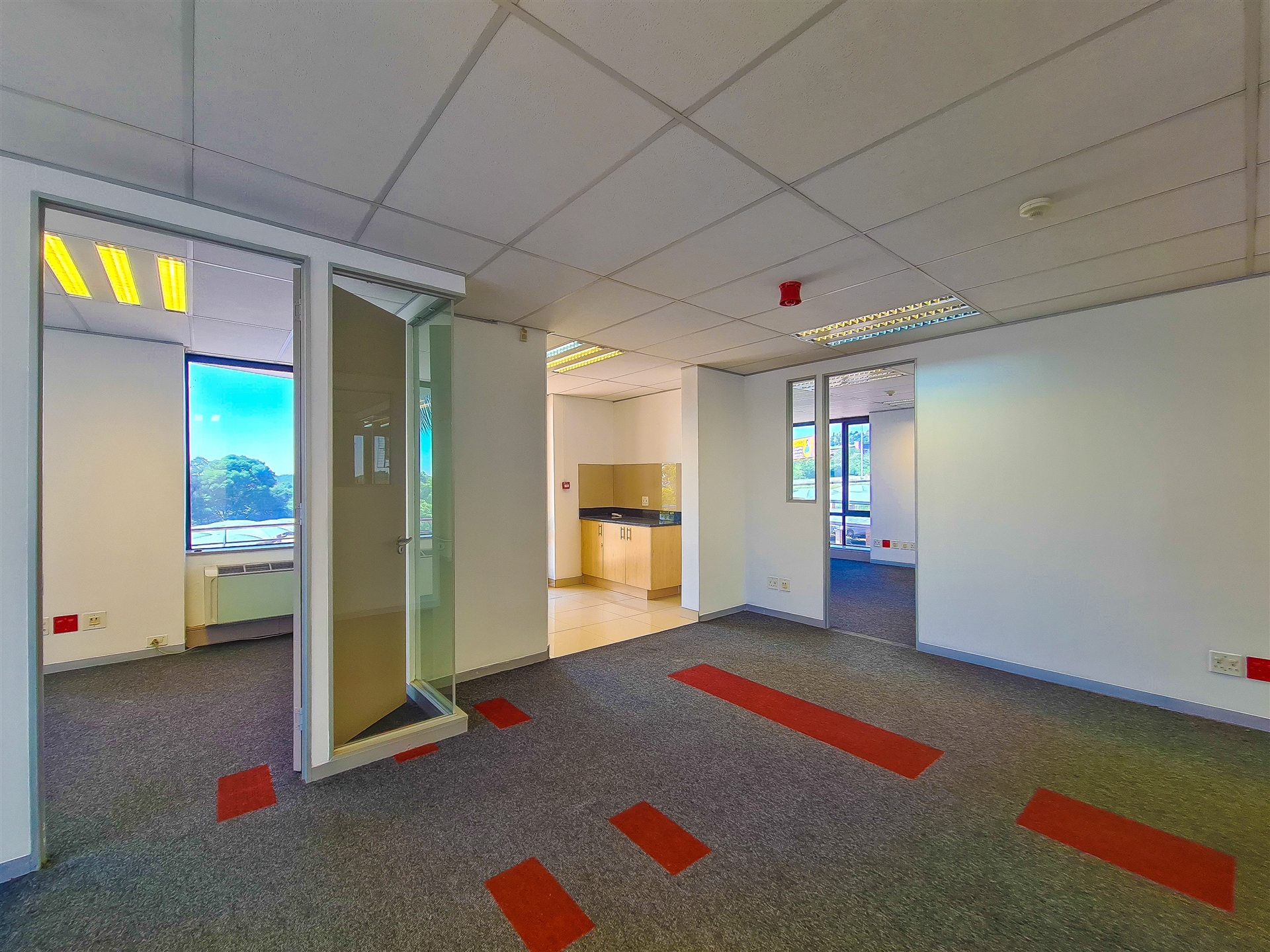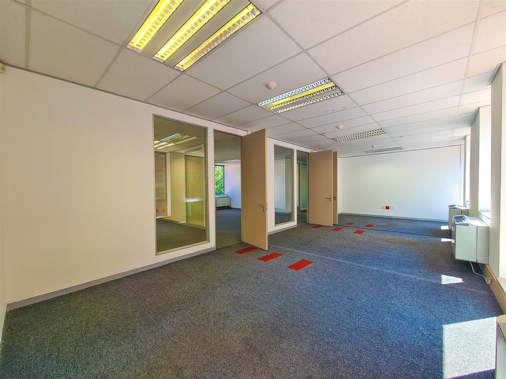 This spacious first-floor office for rent in Constantia Office Park features a modern reception area, ollowed by three boardrooms, a large kitchen with ample space for tables and chairs, an open-plan workspace, three individual offices and a storeroom. The East wing further consist of additional individual offices offices and two private dedicated kitchens. The office has two entrances, is fully carpeted, and comes equipped with fitted blinds on all the windows. It also offers access to private balconies. The building is wheelchair-friendly and supported by a backup generator and water tanks for uninterrupted operations.