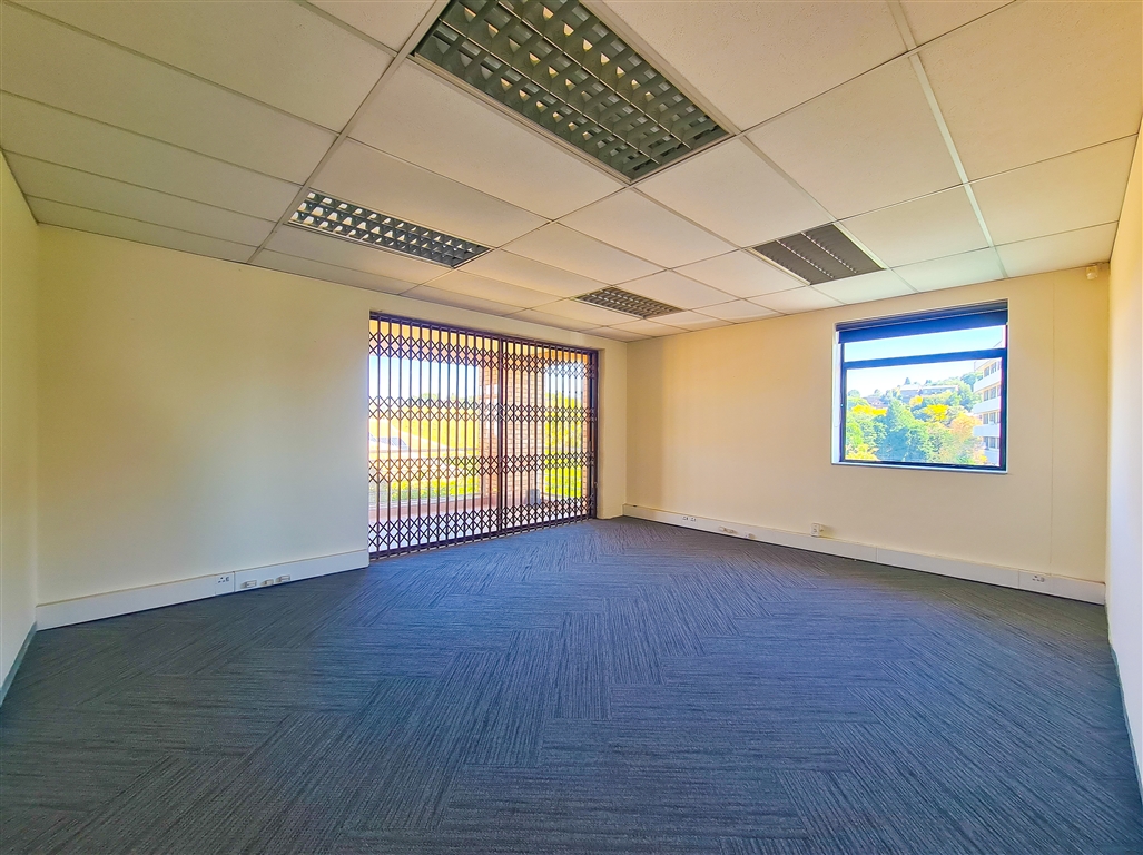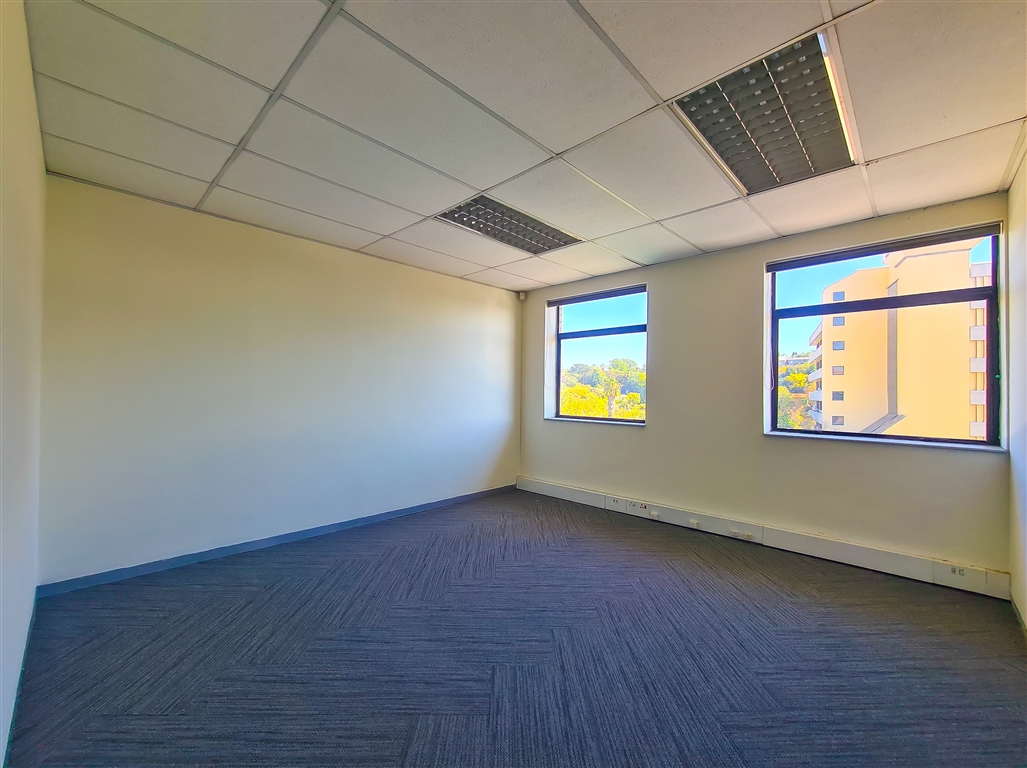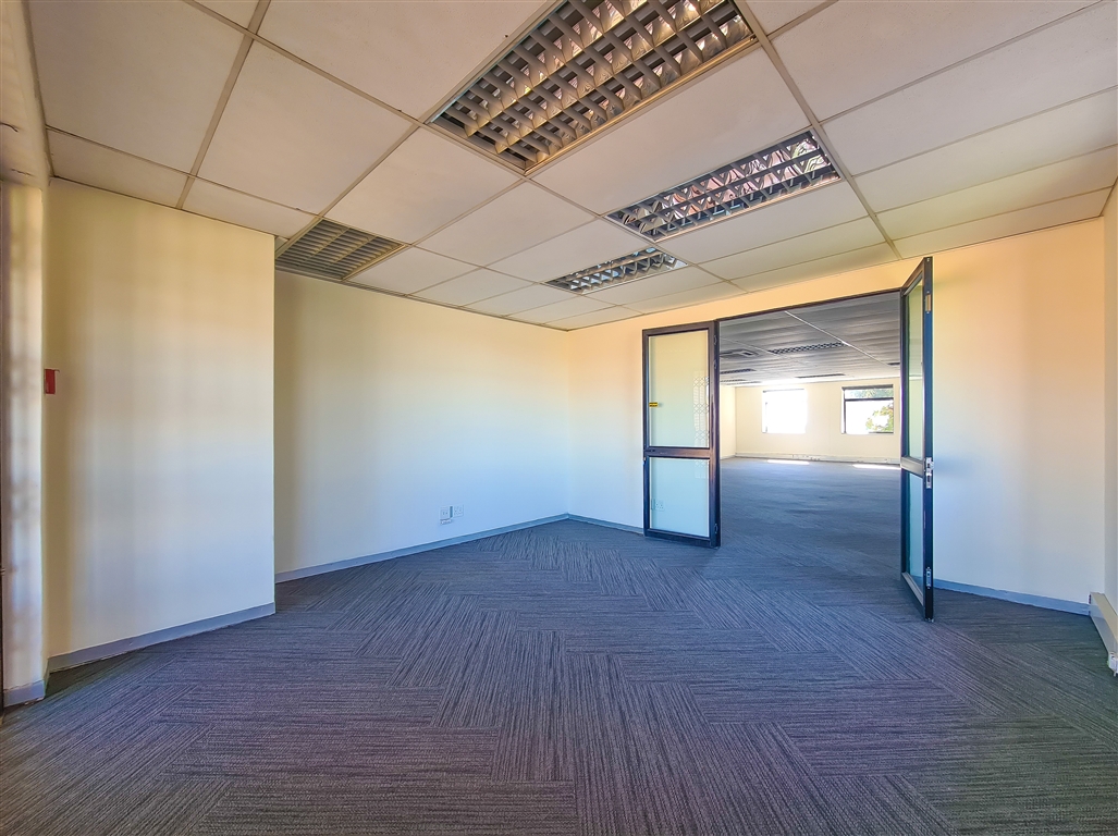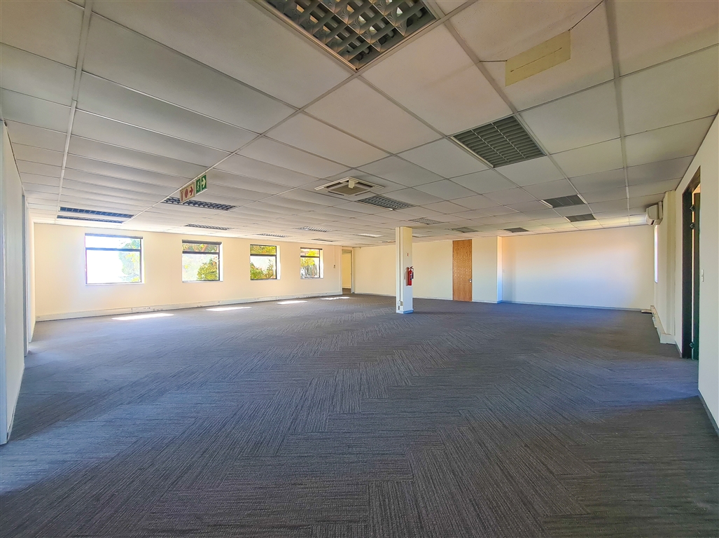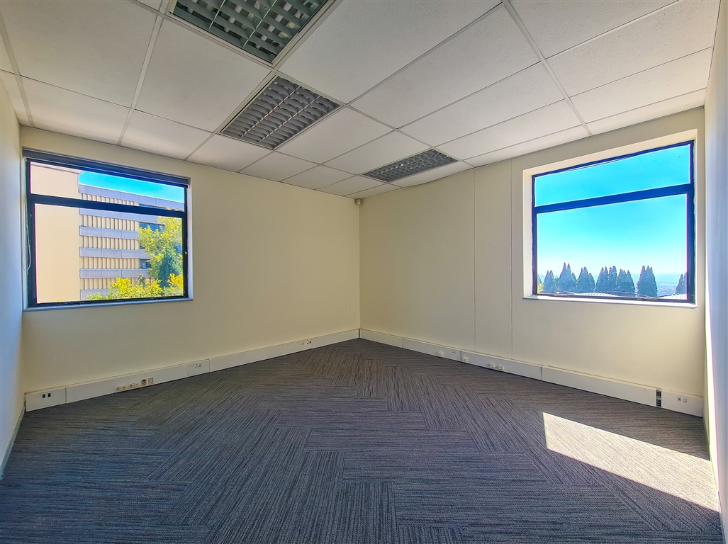 This 357m2 office to Let in Constantia Ridge Office Park welcomes you with a welcoming reception area followed by a spacious open plan office that can easily accommodate more than 10 desks, 4 individual offices of which 1 has access to a private dedicated balcony and a spacious boardroom with direct access to a balcony overlooking the beautiful scenery of Constantia Kloof. The office is filled with natural light. All the windows are fitted with modern roller blinds. The carpets are in exceptional condition. The building is conveniently supported by a backup generator.