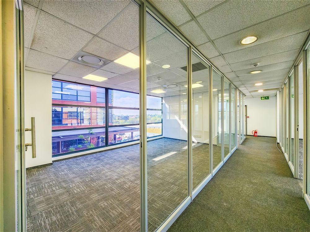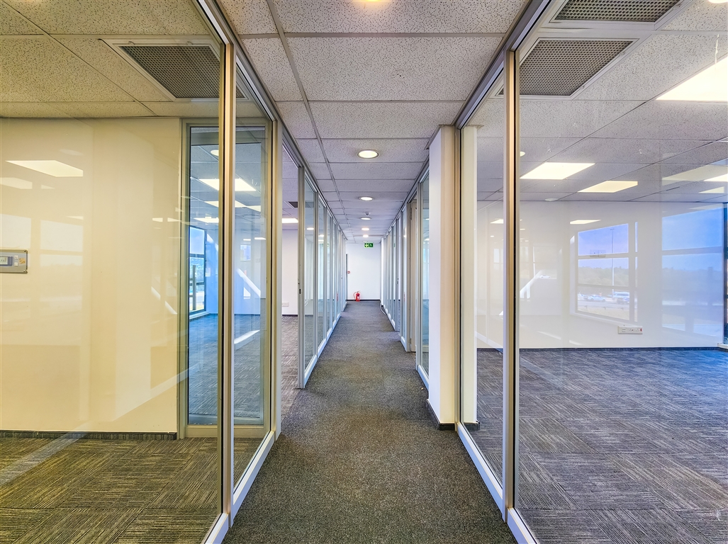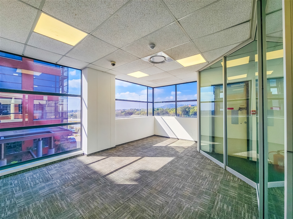 This impeccably maintained office space available to let in Constantia Office Park is situated on the third floor, offering a polished and functional environment ideal for modern businesses. Upon entry, you're welcomed by a spacious reception area that leads to two elegant, glass-enclosed boardrooms and a well-appointed kitchen. A central passageway connects a series of glass-partitioned private offices, all boasting sweeping panoramic views over the N1 freeway. The open-plan workspace is thoughtfully sectioned off, providing access to two generously sized storerooms. A server room is positioned near the reception for optimal accessibility. The office features wall-to-wall carpeting, full air-conditioning, and abundant natural light throughout, thanks to its extensive use of glass partitioning. For added convenience, a ground-floor canteen offers a diverse selection of meals, making it easy for employees to enjoy quality dining without leaving the premises. Kindly watch the video for a virtual tour.