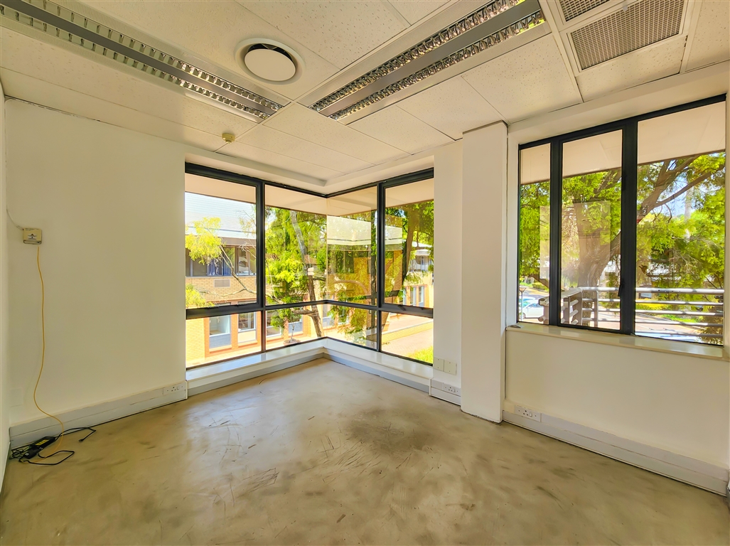 Discover a bright and versatile workspace for rent in Constantia Office Park. This first-floor office welcomes you with a modern open-plan layout followed by two private offices, and a storeroom. Screeded flooring enhances the contemporary feel, while a private balcony overlooking the park provides the perfect spot to unwind or host informal discussions.