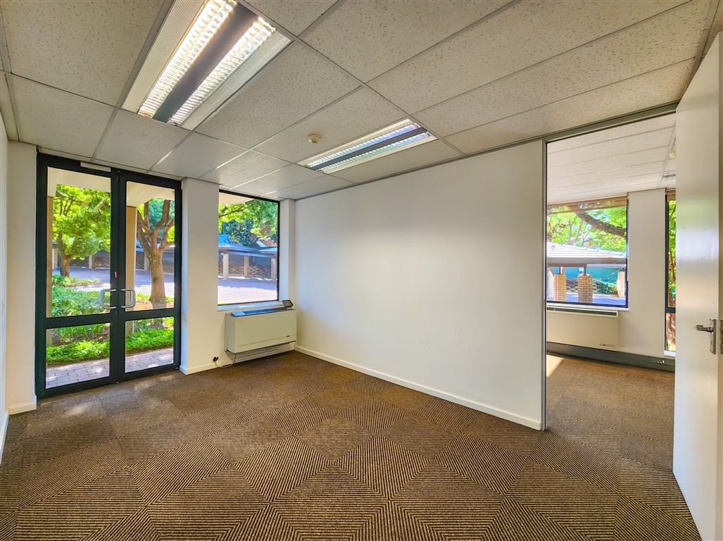 Welcome to a well-designed and functional office space to let in the prestigious Constantia Office Park. Upon entry, you’re greeted by a welcoming reception area, followed by a spacious boardroom and three private offices, ideal for focused work or executive use. At the back of the office, you’ll find a generously sized kitchen with ample room for seating — perfect for team breaks or informal meetings. The office is carpeted throughout, and large windows with ready fitted blinds invite an abundance of natural light, creating a bright and comfortable working environment.