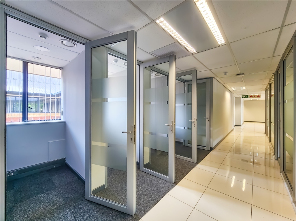 The South Wing of the premises greets you with a contemporary reception area, leading into three generously sized boardrooms. A passage connects to an additional boardroom, four private phone booths, and multiple individual offices overlooking a spacious open-plan workspace, creating a productive and collaborative environment. The North Wing features two spacious open-plan workspaces, several individual offices, and two storerooms, ideal for teams requiring both privacy and collaboration.