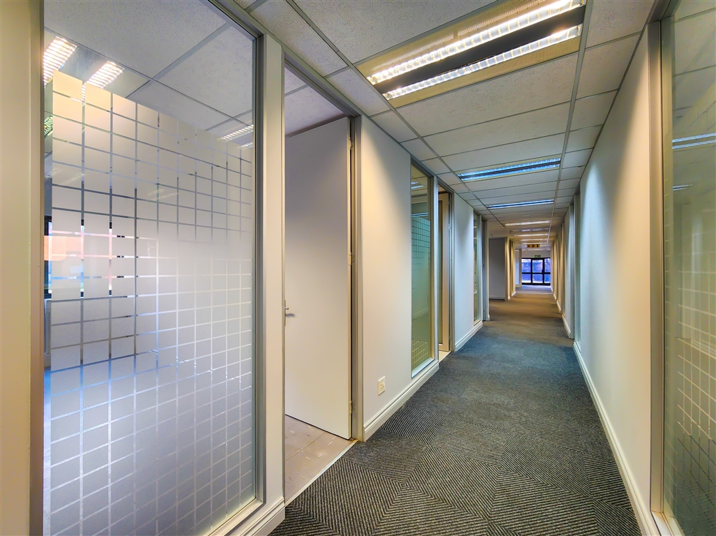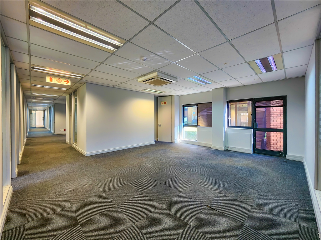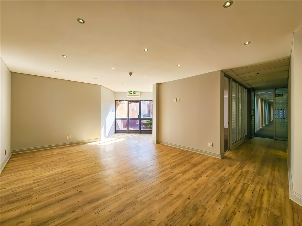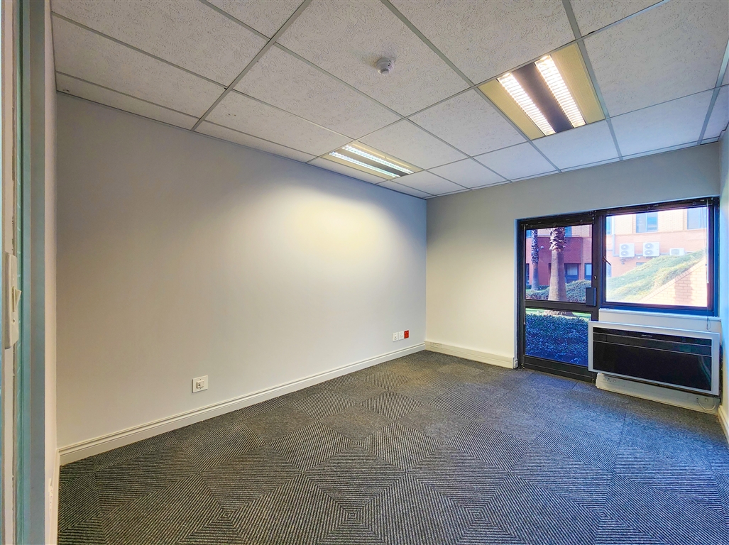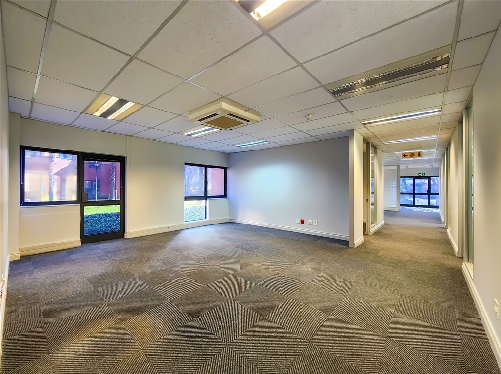 This well-appointed office suite available to let in Constantia Office Park features a contemporary reception area leading into a spacious boardroom, a medium-sized meeting room, a dedicated server room, and multiple private offices. The layout is further complemented by two medium-sized open-plan work areas and a fully equipped kitchen. The office enjoys direct access to beautifully landscaped gardens with tranquil views over the lake, creating an exceptional working environment.