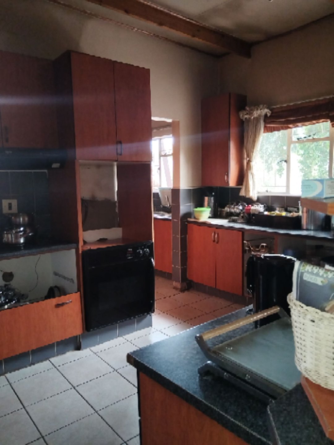 This property offers a 5 spacious bedrooms, 3 Bathrooms (MES), open-plan kitchen with a scullery, lounge and dining room with a fire place, private formal lounge, study, pool, braai area, large flat with its own entrance and a garage for 4 cars.