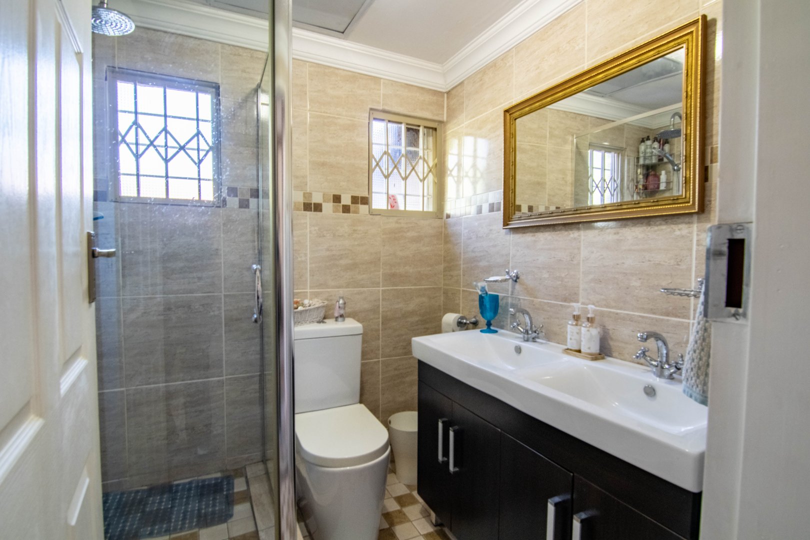 Second Bathroom: Modern and practical, with a sleek walk-in shower.