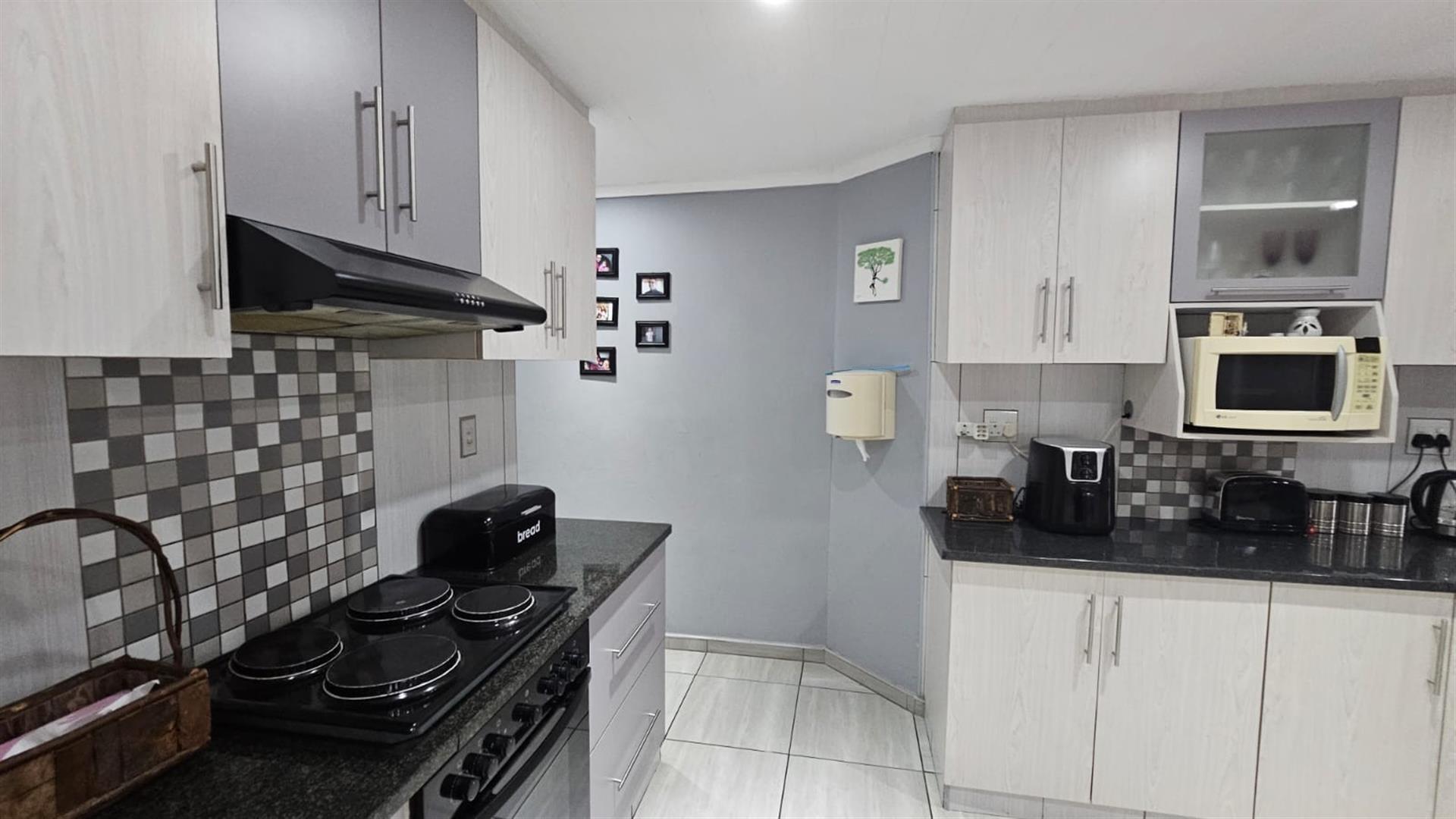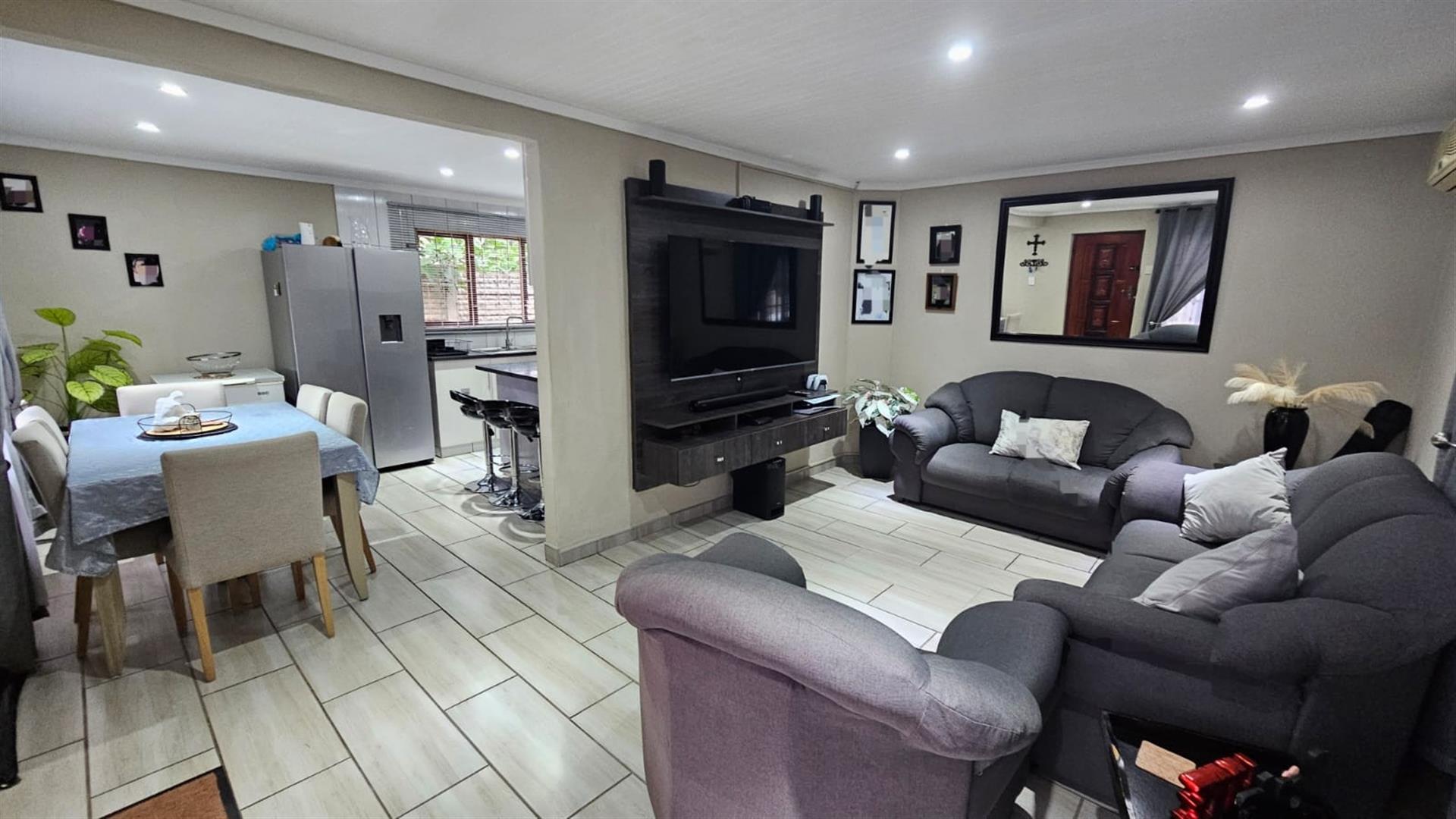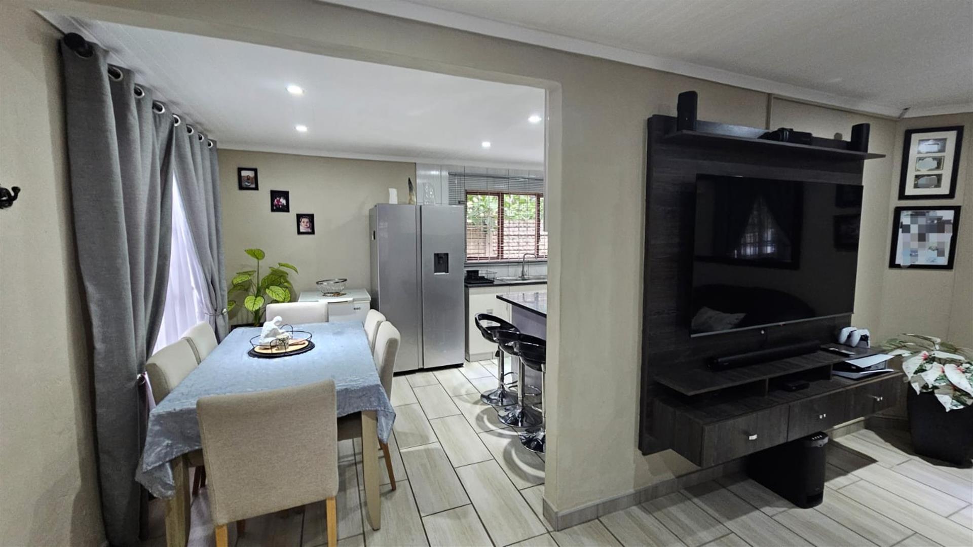 This home offers three well-proportioned bedrooms, all thoughtfully designed with ample built-in cupboards and the added luxury of television connections already installed—a rare and practical touch. The main bedroom features a private en-suite, while both bathrooms have been tastefully upgraded, reflecting the same modern aesthetic found throughout the home.