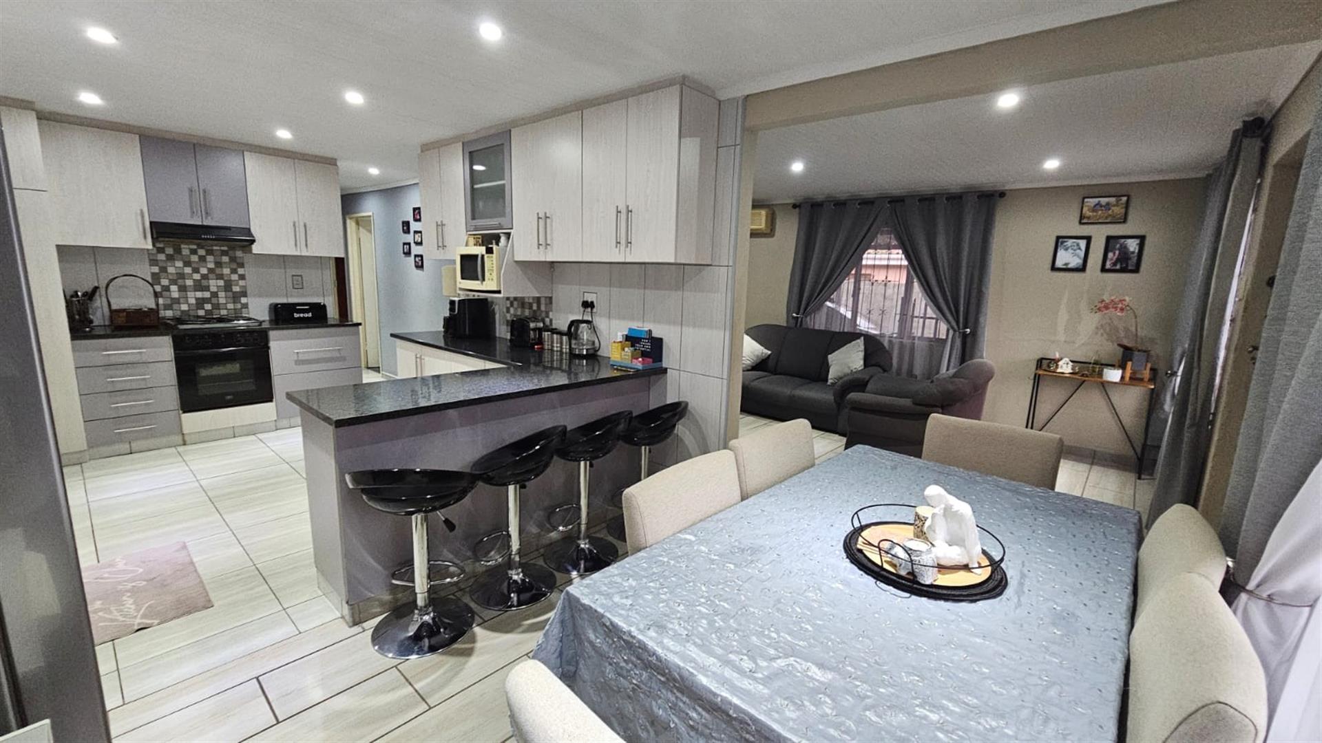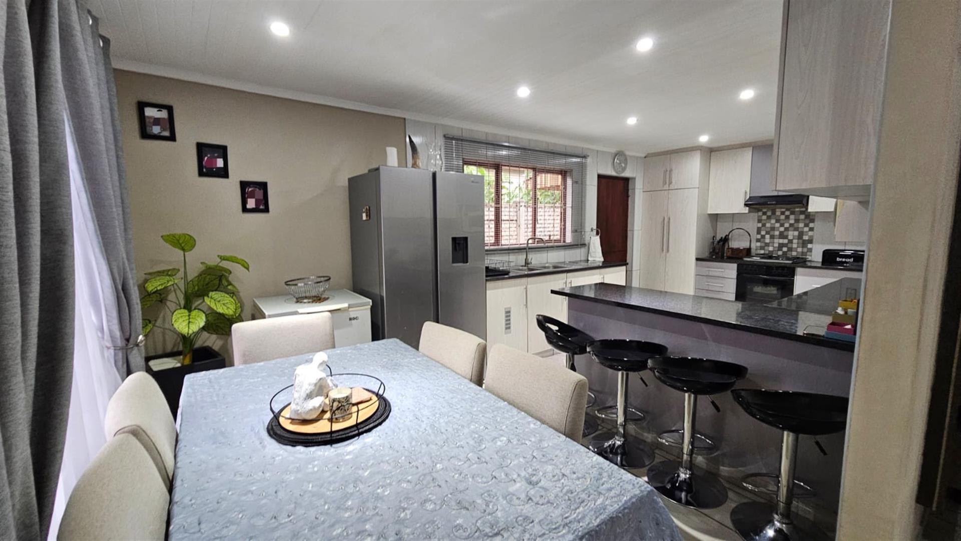 Fully tiled from end to end, the home is cool, low-maintenance, and effortlessly move-in ready. Outside, a double carport, neat Wendy house, and fully fenced yard provide both functionality and peace of mind, complemented by a security alarm system for added confidence.