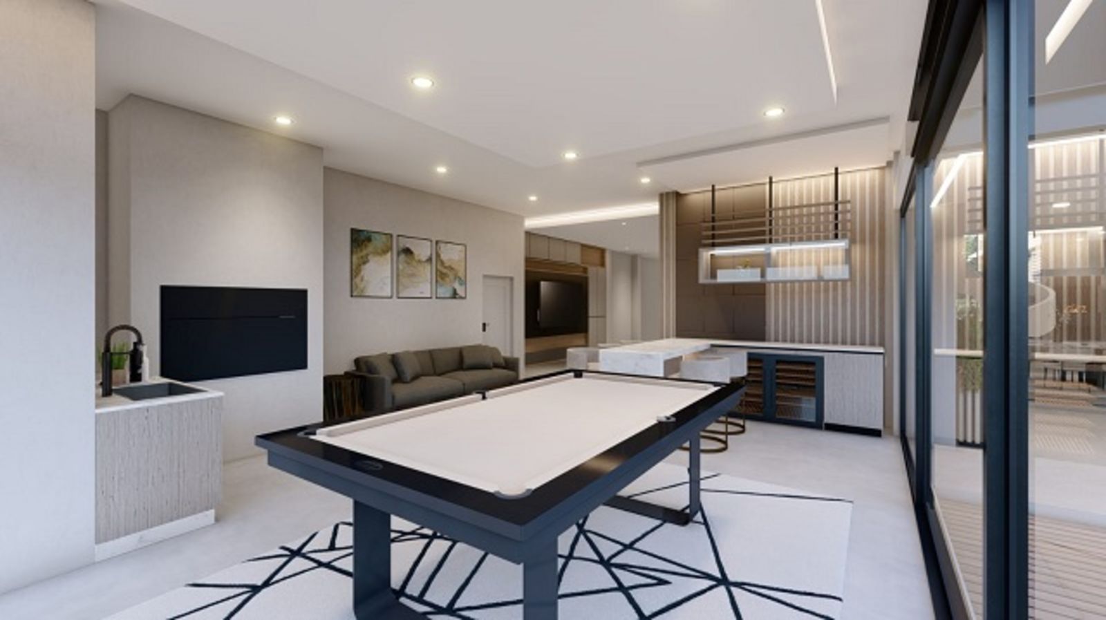 Multiple entertainment and lounge areas