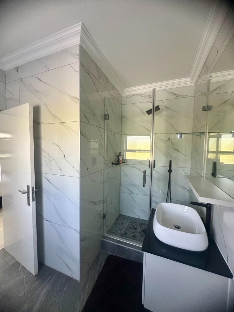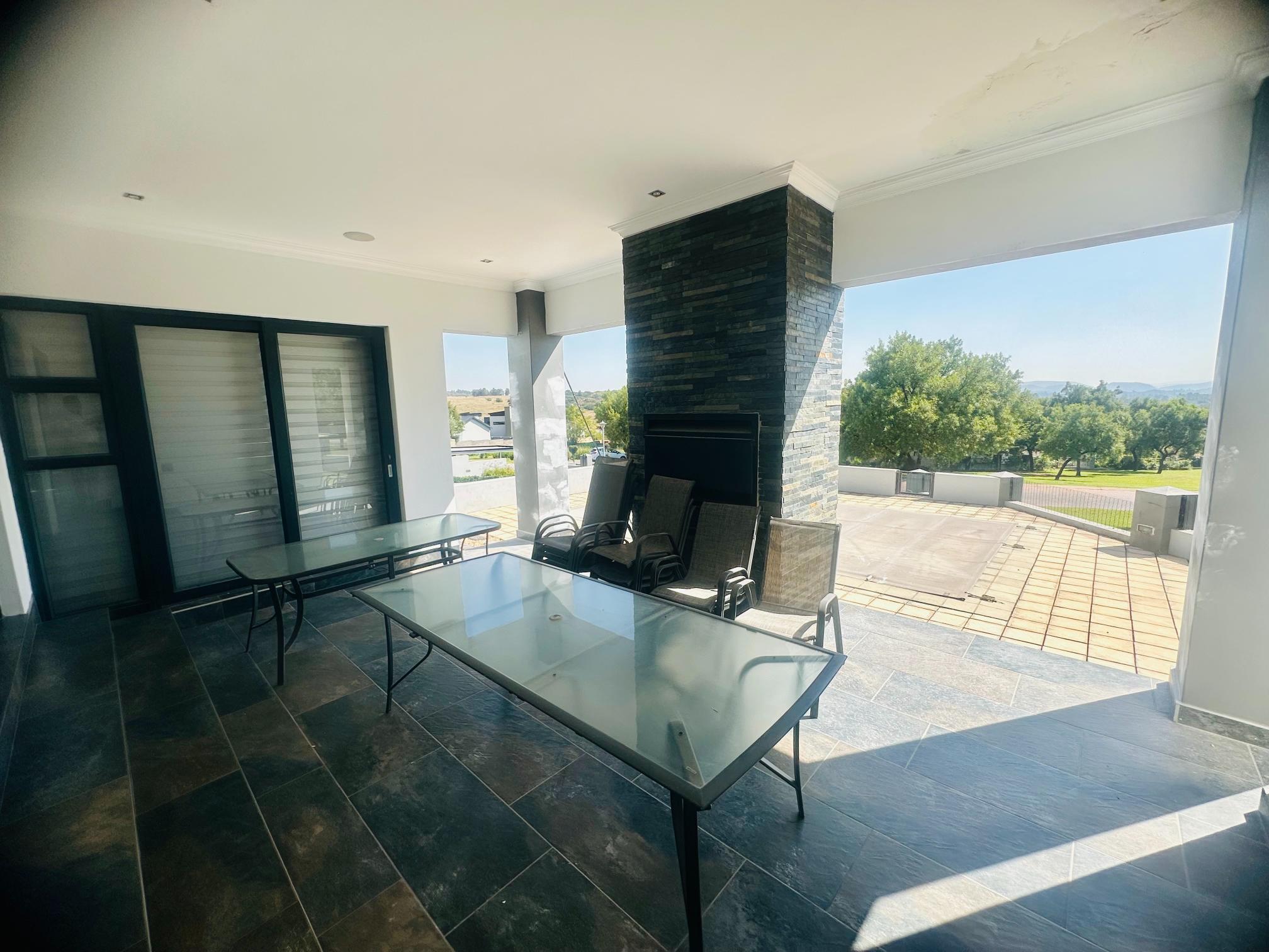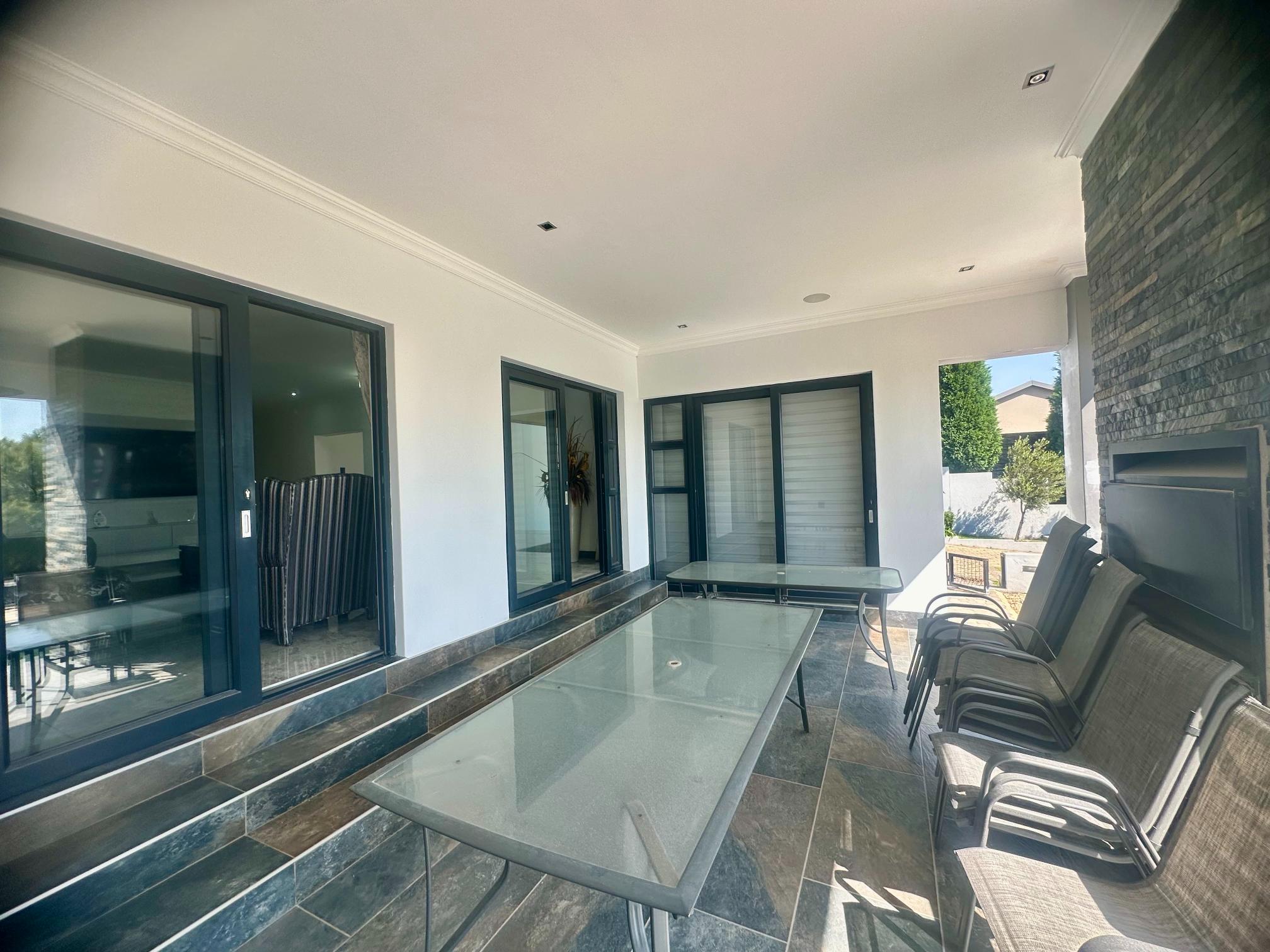 From the moment you enter, you’re welcomed by a seamless open-plan layout that blends the gourmet kitchen, dining, and lounge areas ideal for both everyday family life and elegant entertaining. Stacking doors open onto a covered patio with a built-in braai, overlooking a sparkling swimming pool and the lush fairways of the prestigious Ernie Els-designed golf course. It’s a home built for unforgettable moments, inside and out.