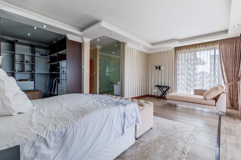 This exquisite residence is a masterful blend of modern sophistication and timeless charm, perfectly capturing the essence of luxury living. With five spacious bedrooms, each boasting an en-suite bathroom, and an additional half bathroom, this property offers ample space for family and friends. The open-plan design creates a seamless flow between living, dining, and entertainment areas, perfect for hosting memorable gatherings. The braai area, boma, and sparkling pool invite alfresco living, while the backup power system ensures uninterrupted comfort. As a resident of Copperleaf Estate, you'll enjoy a lifestyle that's deeply connected to nature. Surrounded by a lush green belt and boasting breathtaking views of the Magaliesberg mountains, this estate offers a serene and tranquil environment. Copperleaf Estate is designed to provide a secure and exclusive lifestyle, with beautifully landscaped parks, walking trails, and an abundance of birdlife. With its convenient location near top schools, shopping centers, and major highways, Copperleaf Estate offers the perfect balance between luxury, nature, and convenience. Whether you're seeking relaxation, adventure, or simply a sense of community, Copperleaf Estate has something for everyone.