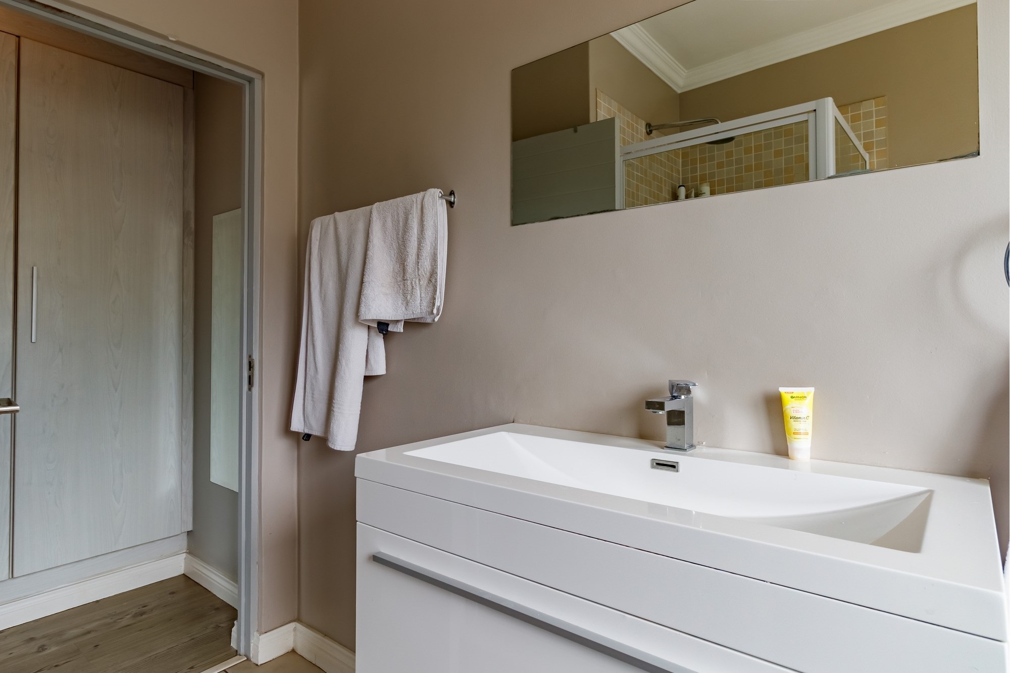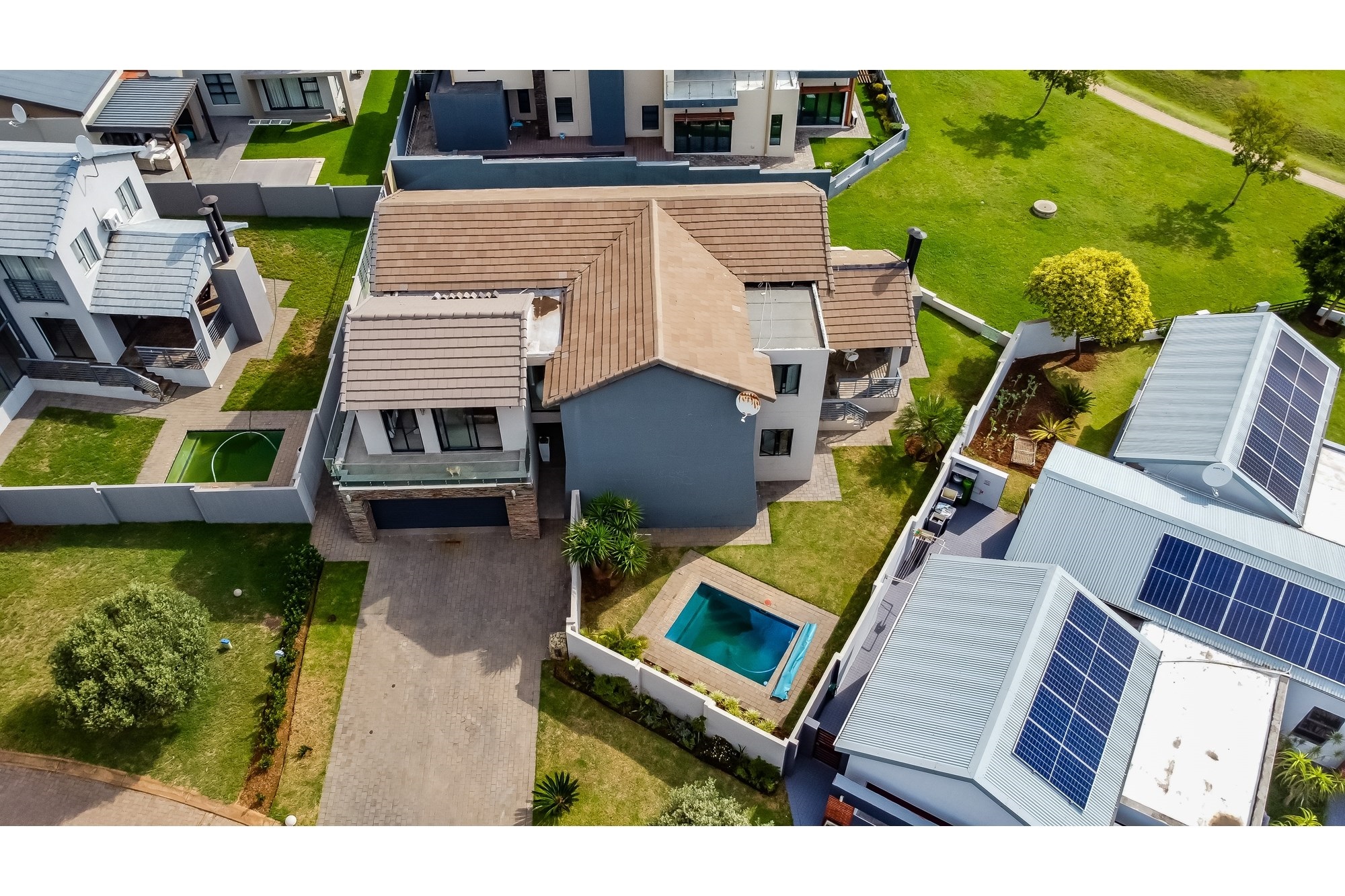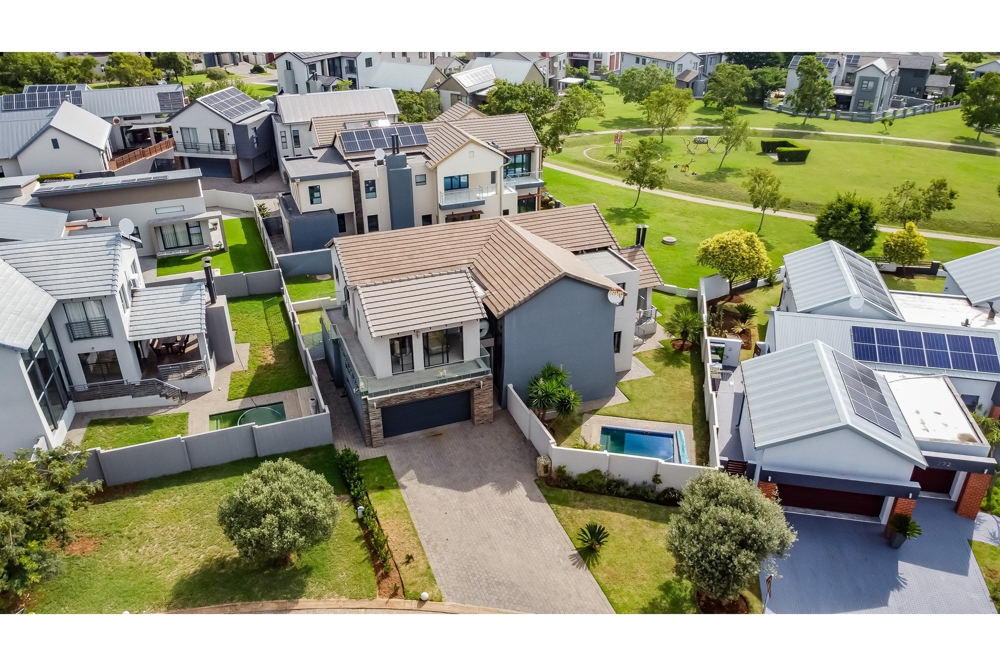 Nestled in the heart of Copperleaf Estate, this breathtaking 3 bedroom, 2.5 bathroom architectural beauty is a true showstopper. With its sleek, modern design and expertly crafted finishes, this one-of-a-kind property is a masterpiece of contemporary living. The expansive open-plan living area flows seamlessly into the beautifully appointed kitchen, perfect for entertaining and everyday living. The three spacious bedrooms are serviced by two modern bathrooms and a convenient guest toilet, while the property also features a double garage and private garden.