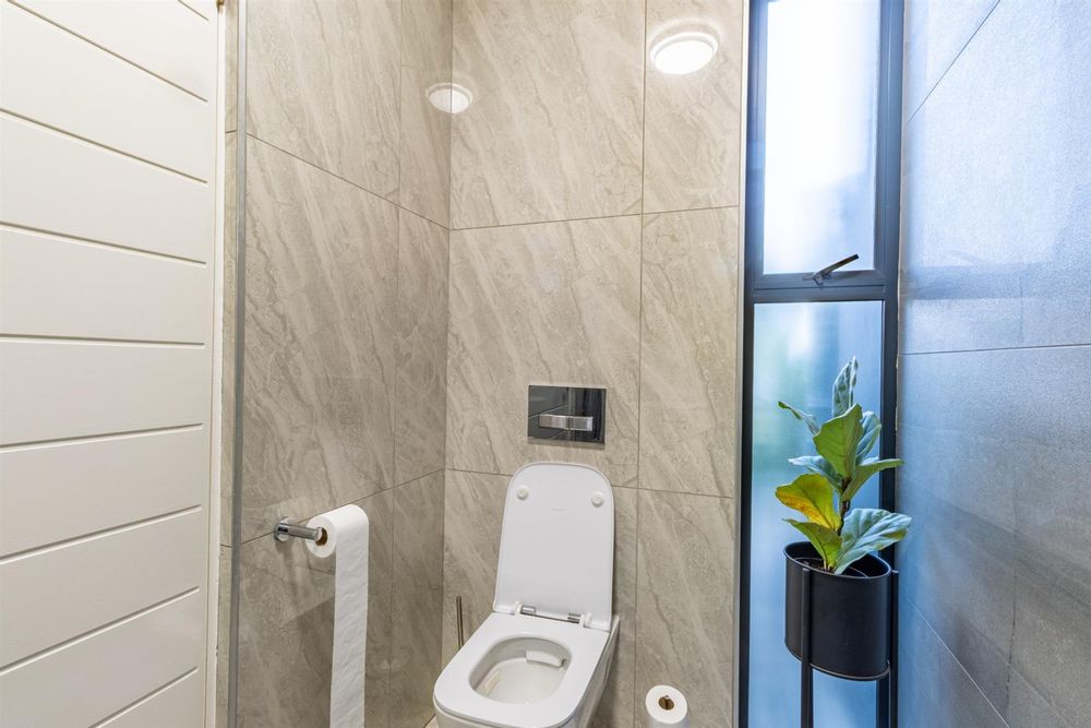 Every bathroom is fitted with premium Hans Grohe taps and Geberit wall-hung toilets, while the main bathroom and guest toilet showcase elegant Victoria + Albert basins.