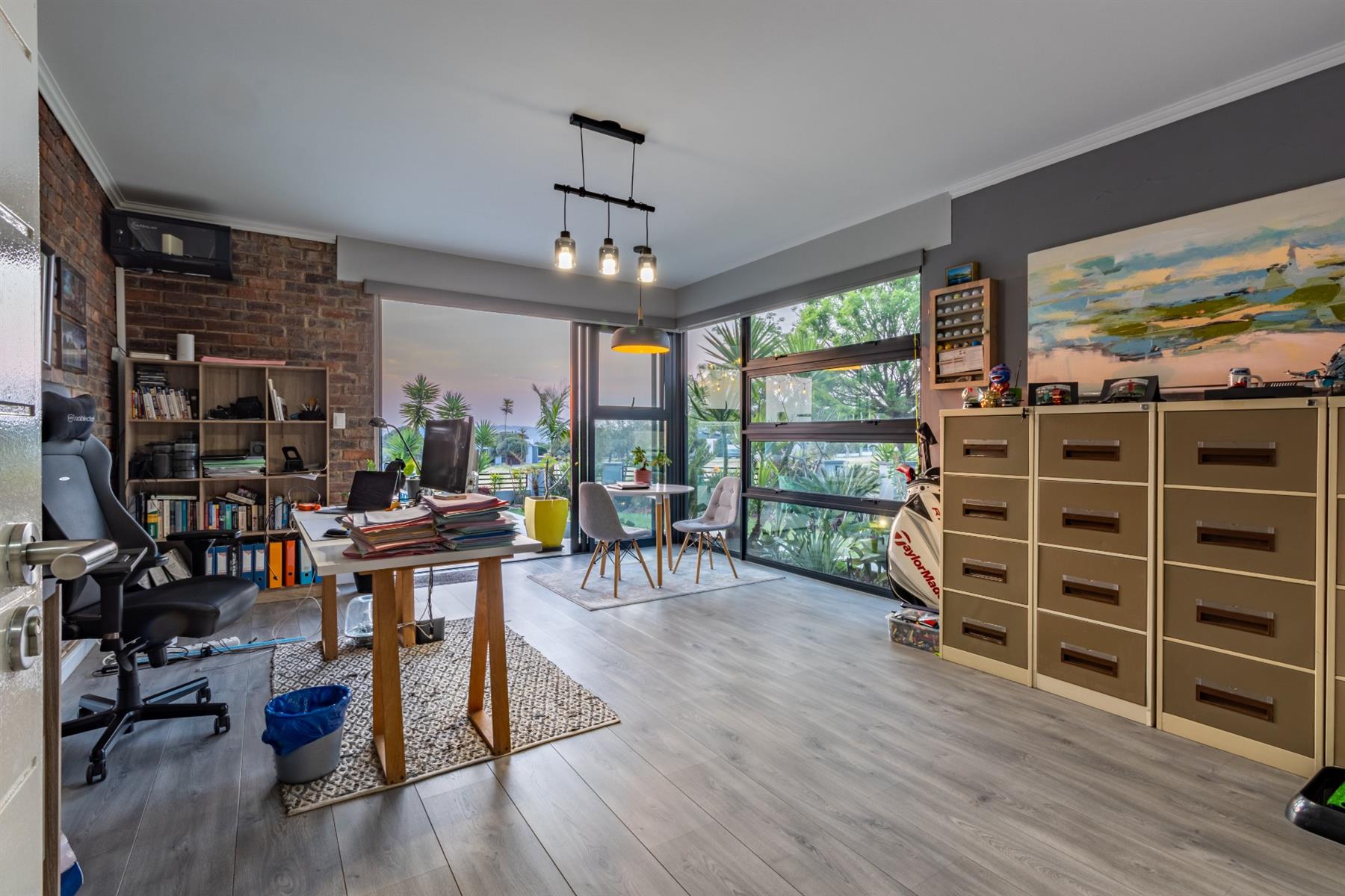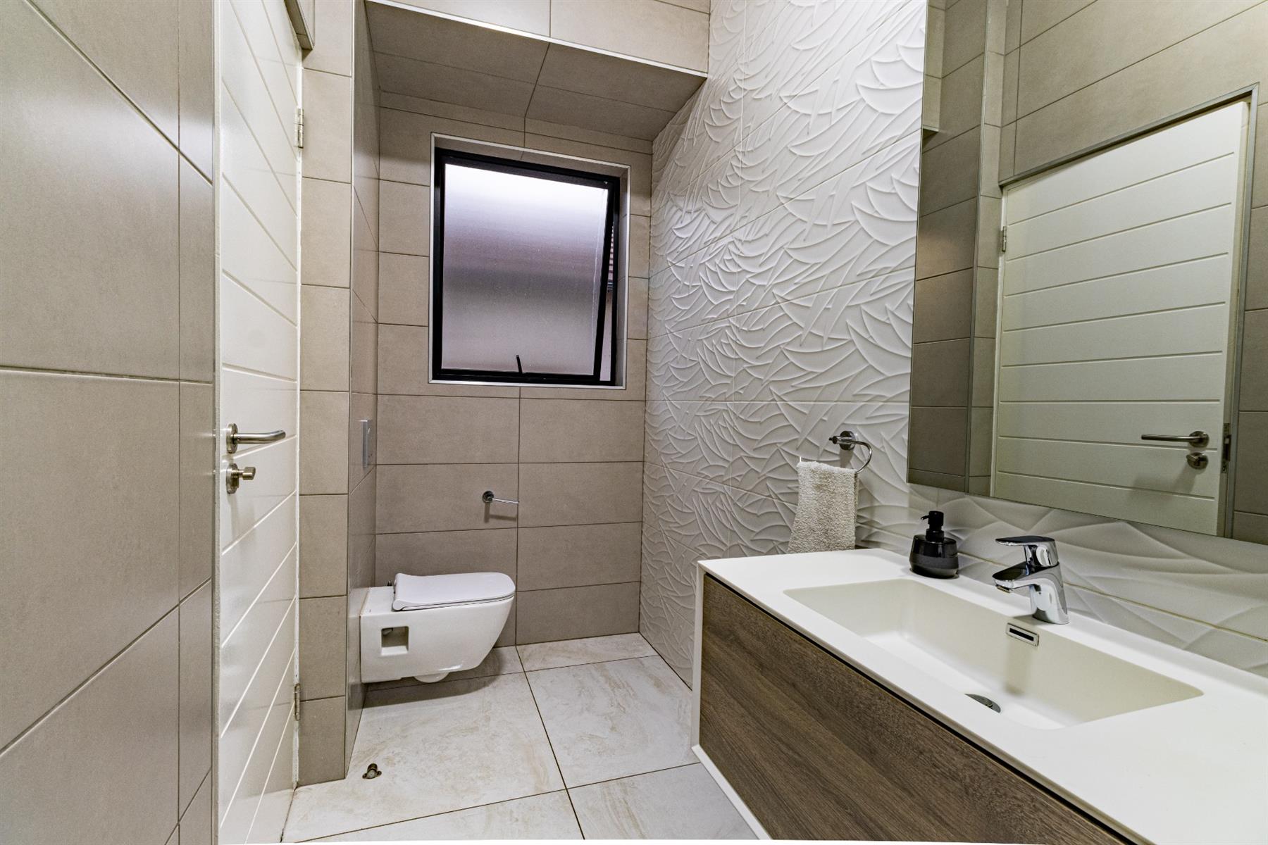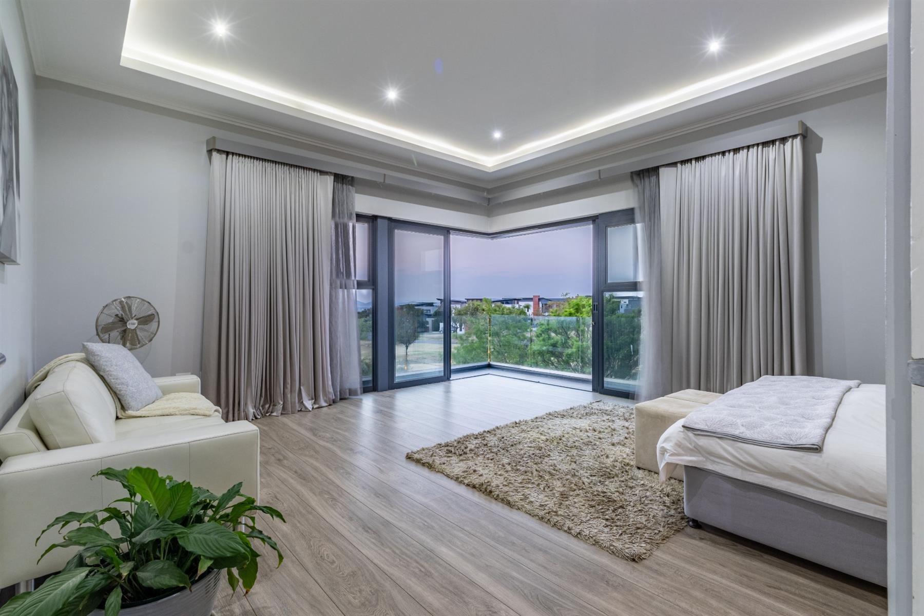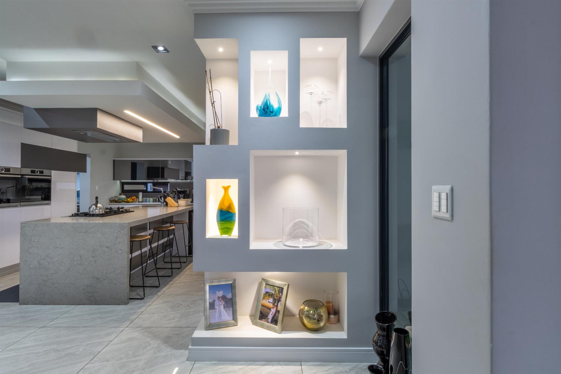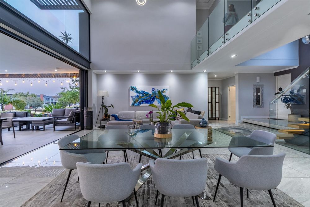 An infinity-edge pool offers seamless beauty and functionality, supported by separate pumps and filters housed discreetly in a dedicated pump room. Independent solar geysers with monitoring systems, an Alpha ESS Smile5 solar system, and back-up water tanks ensures uninterrupted comfort and efficiency.
