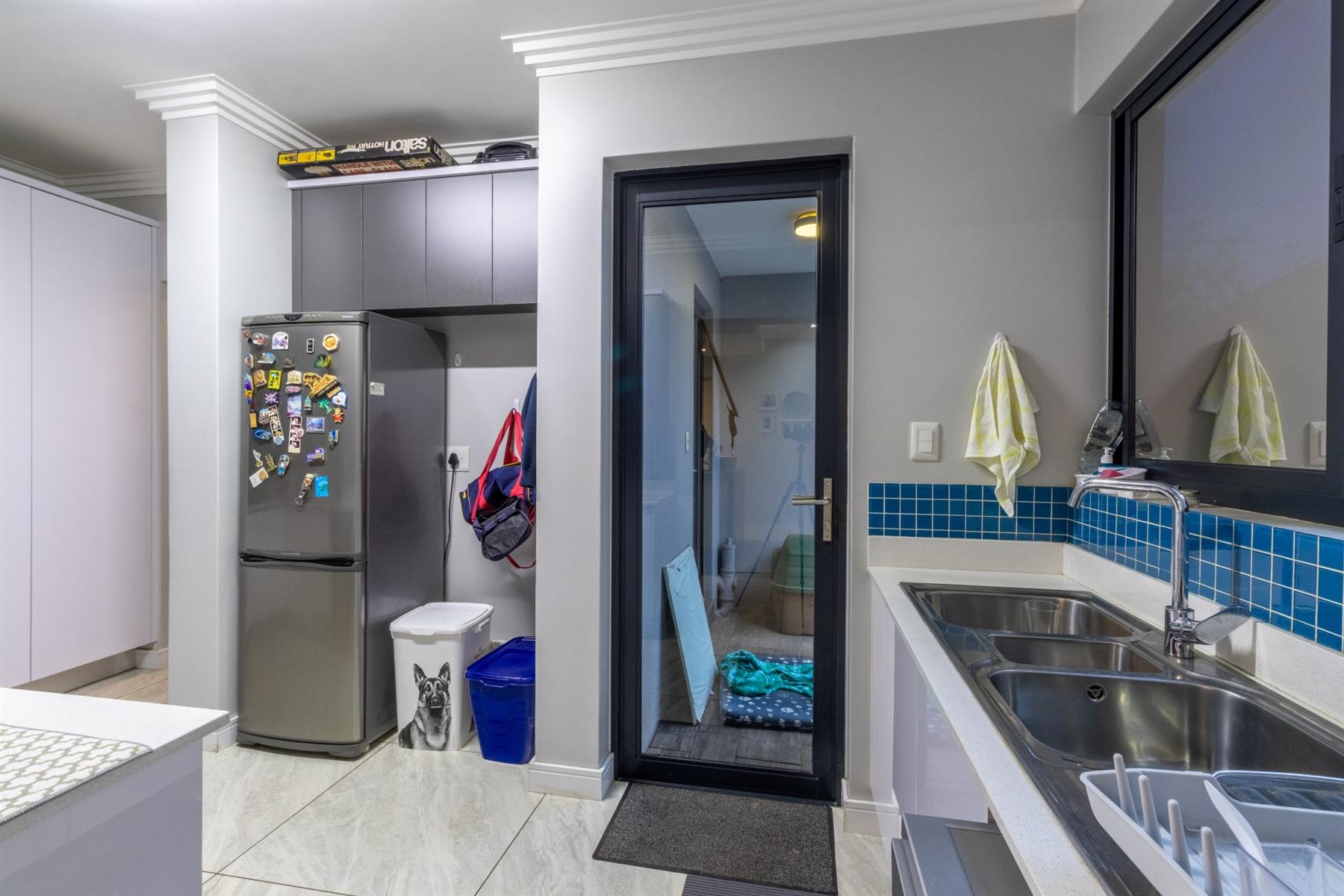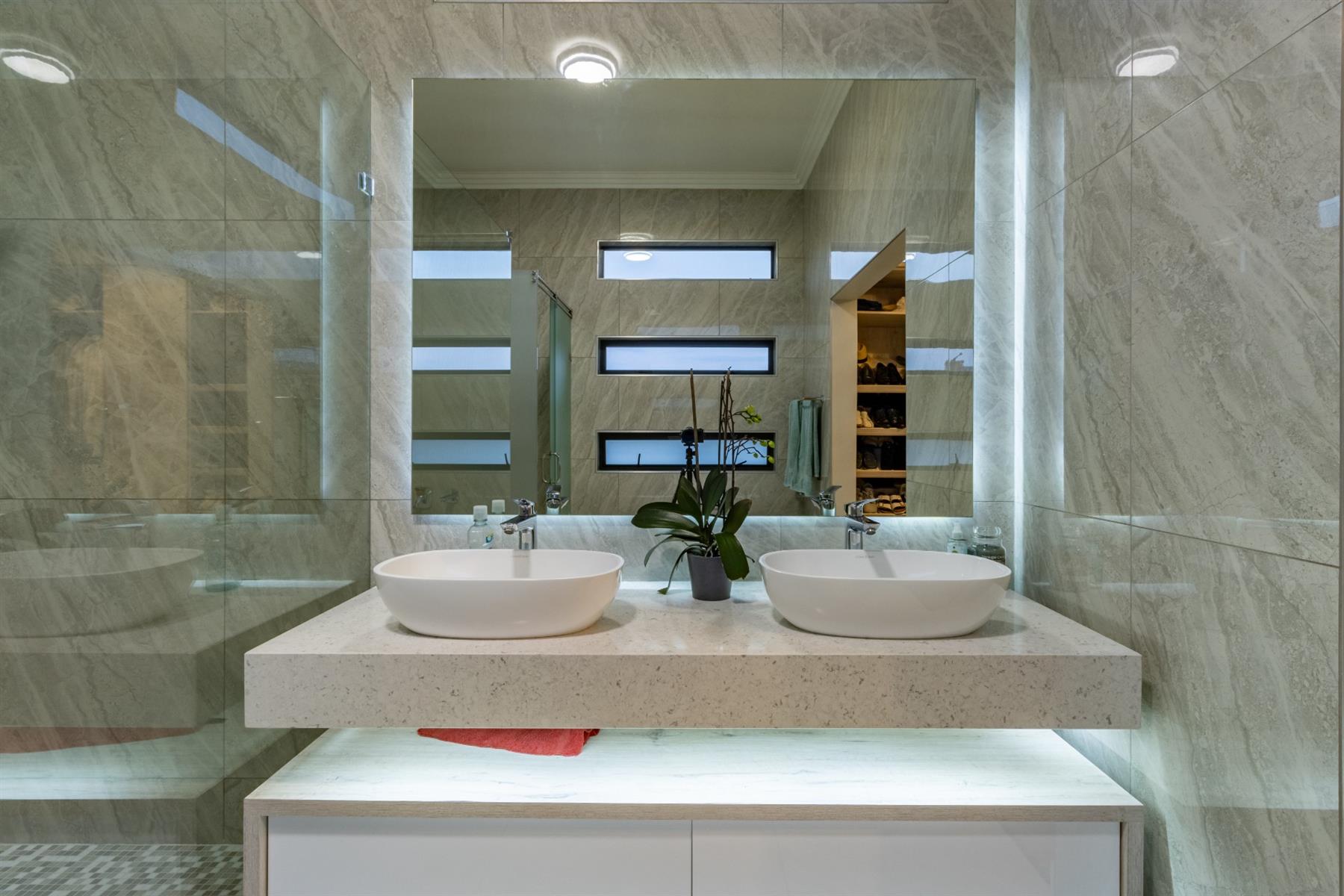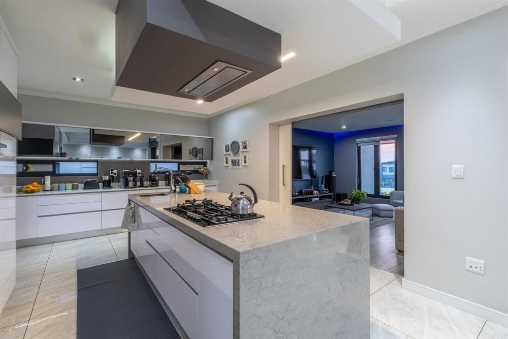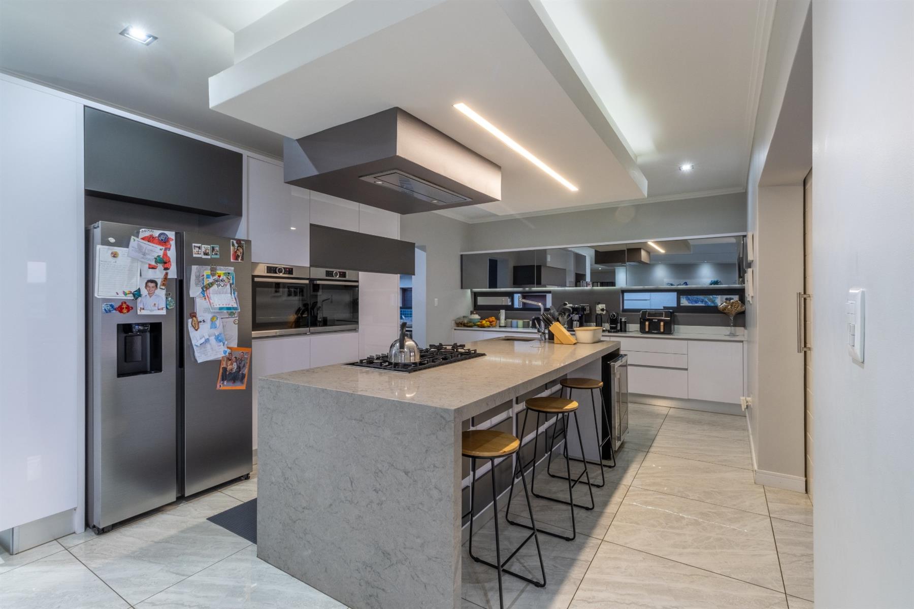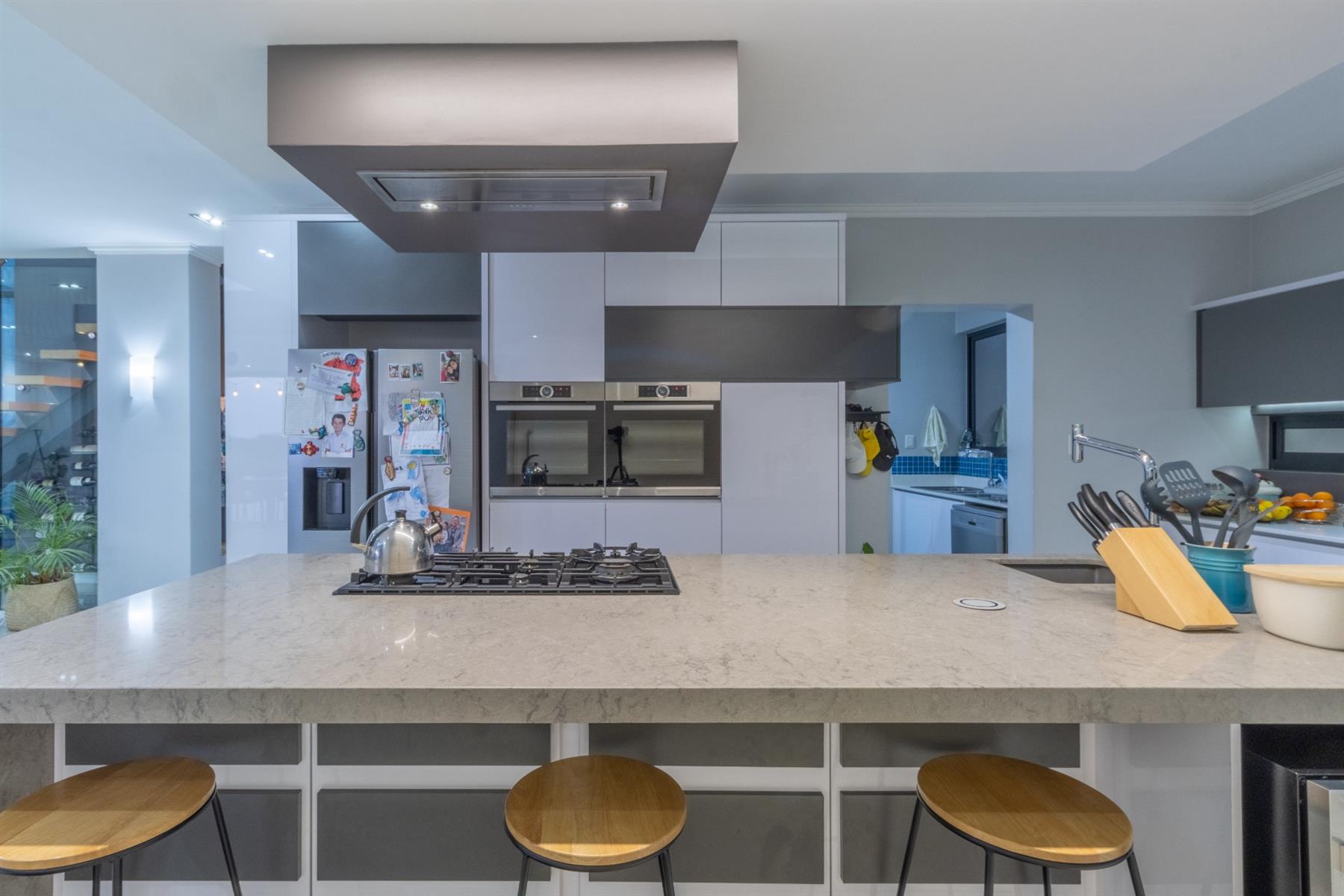 The extractor fan is elegantly recessed into the bulkhead. A spacious scullery accommodates plumbed double-door fridges and adds to the home’s practicality.