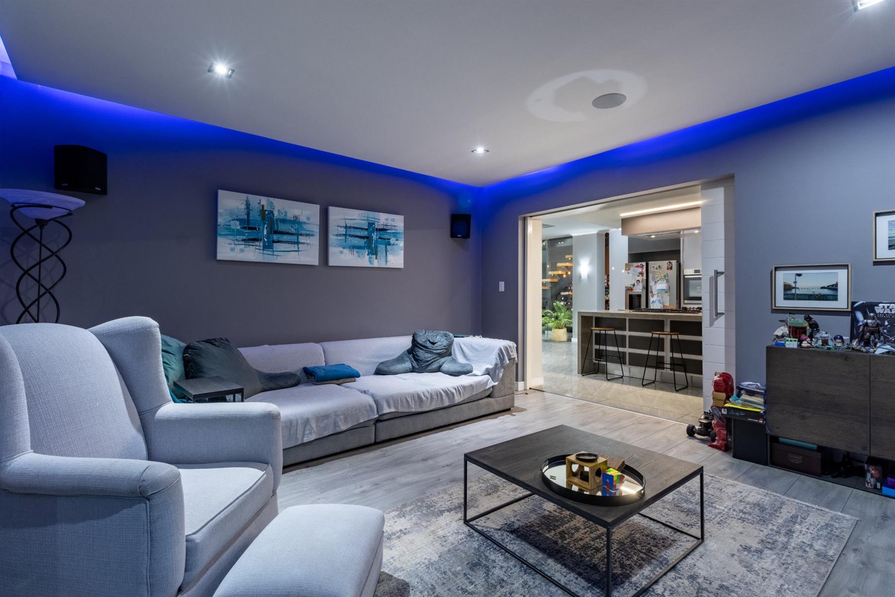 The main suite exudes luxury, featuring automated curtains, LED backlighting in the bedroom, bathroom, and walk-in closet, and a tranquil ambiance throughout.