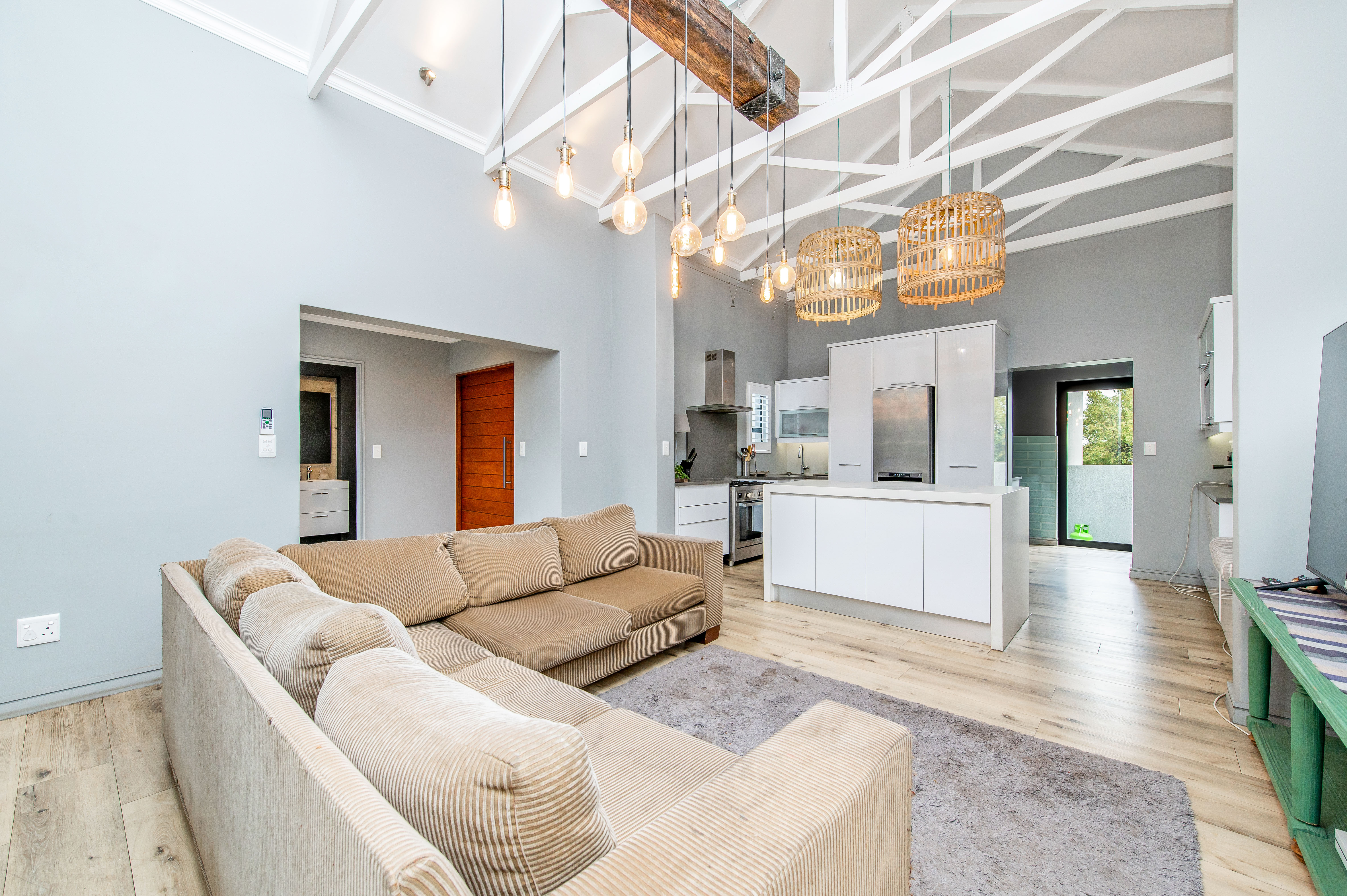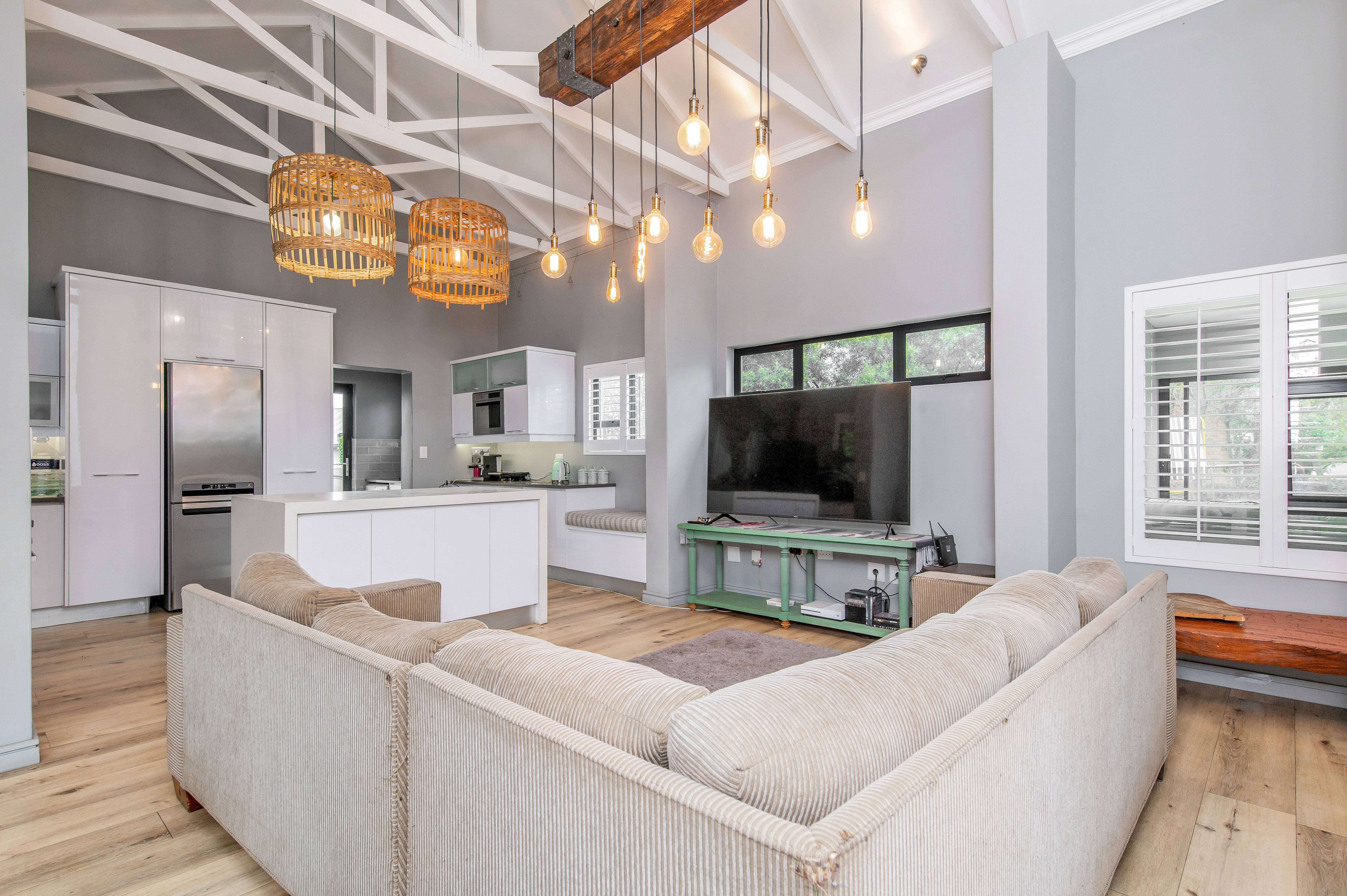 Even with the high ceilings the lounge still manages to feel cosy enough to cuddle up and watch a movie or read your favorite book with the fireplace on.