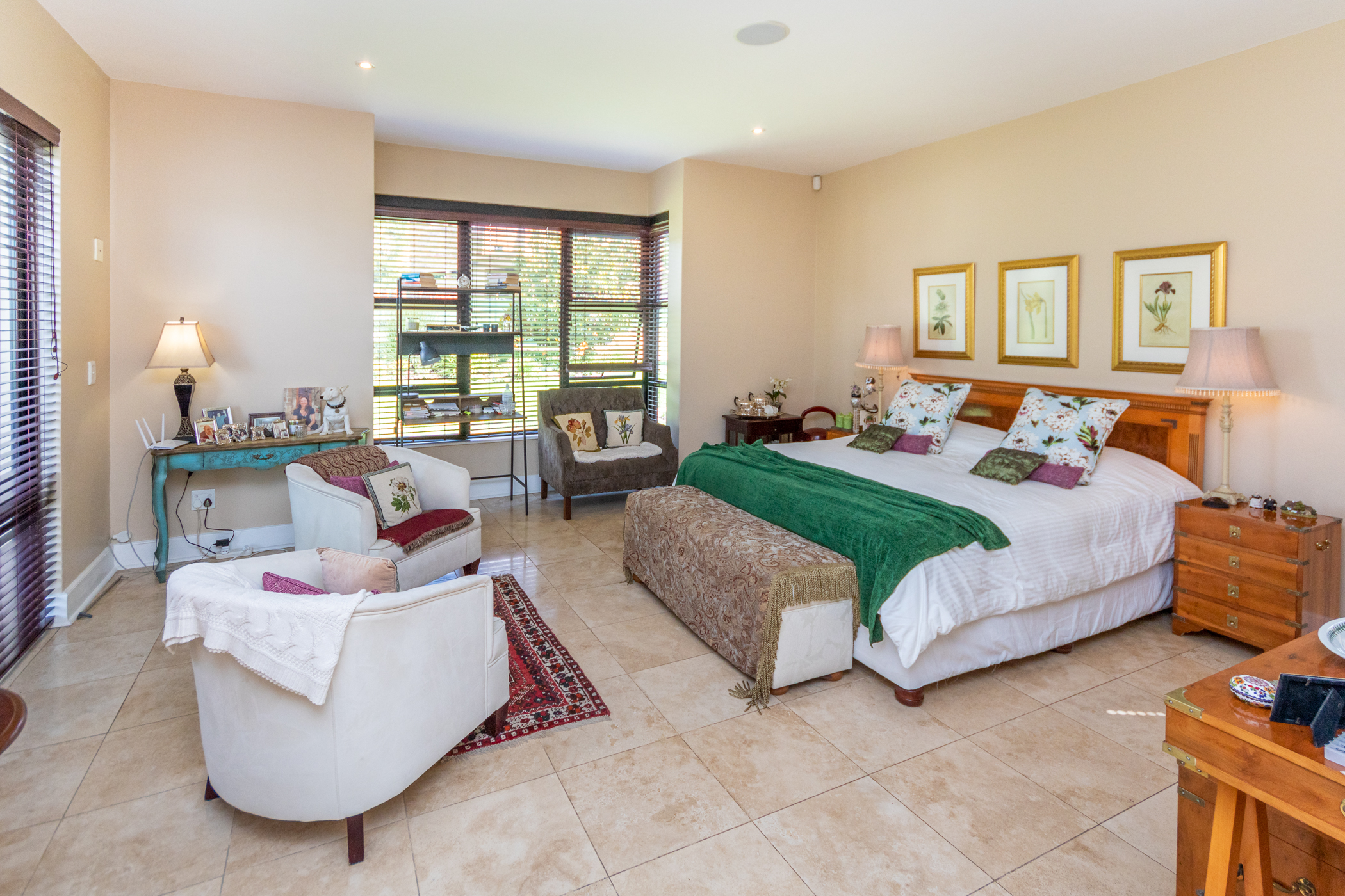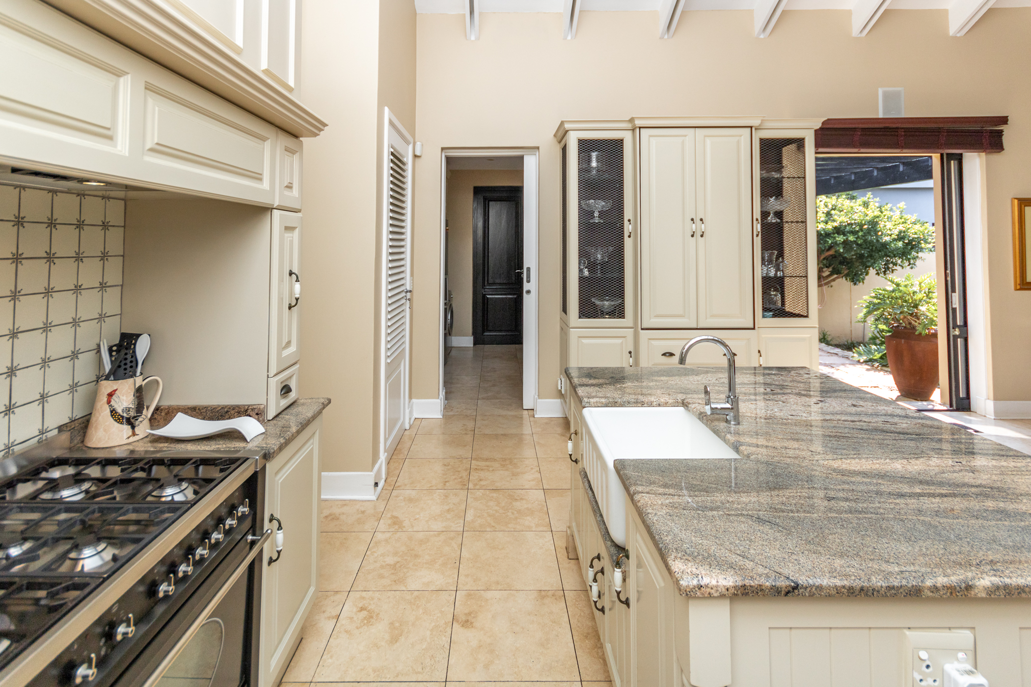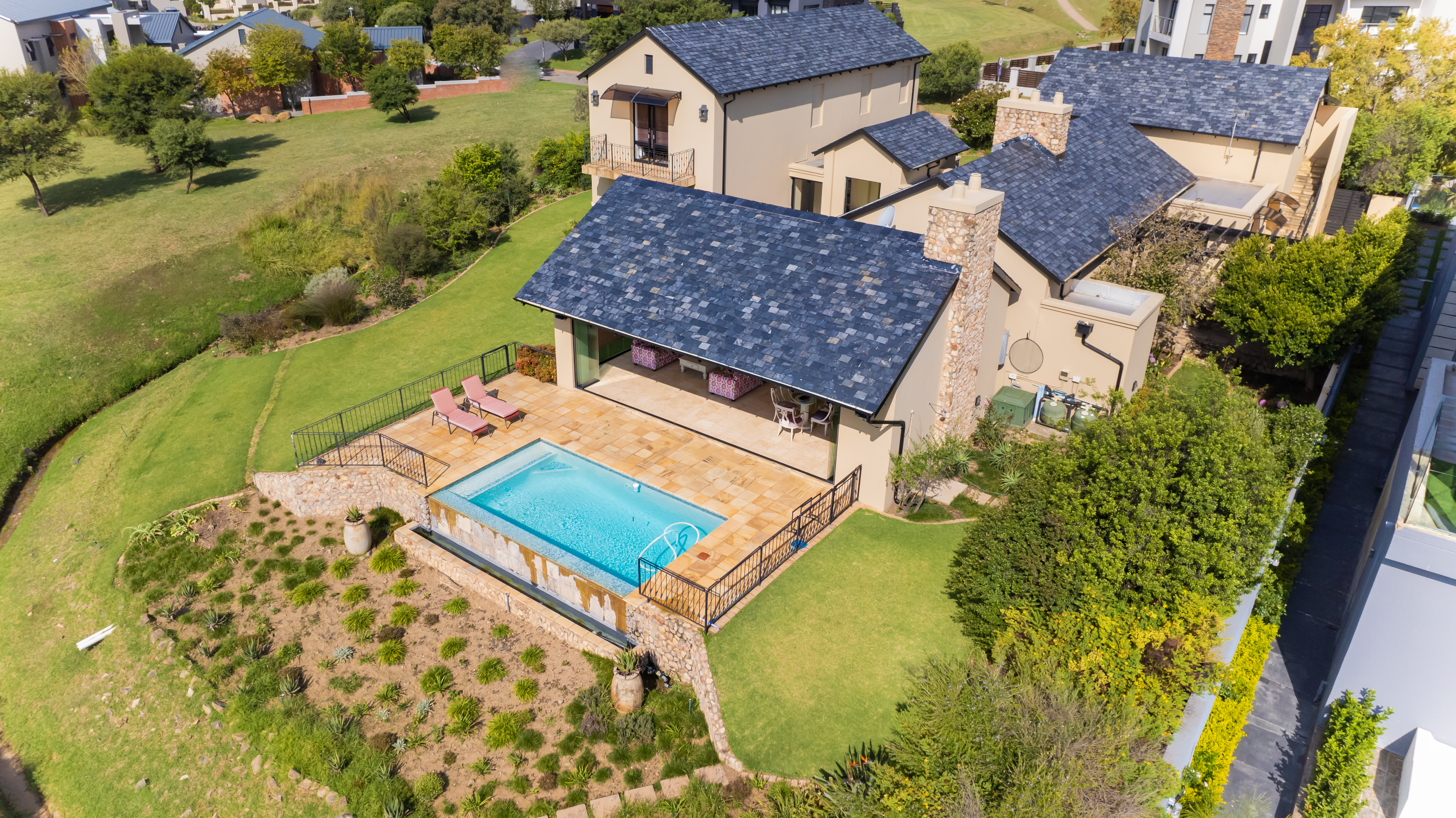 Modern comforts abound, including gas, a backup generator, a surround sound system, underfloor heating, and an irrigation system, ensuring convenience and luxury at every turn.