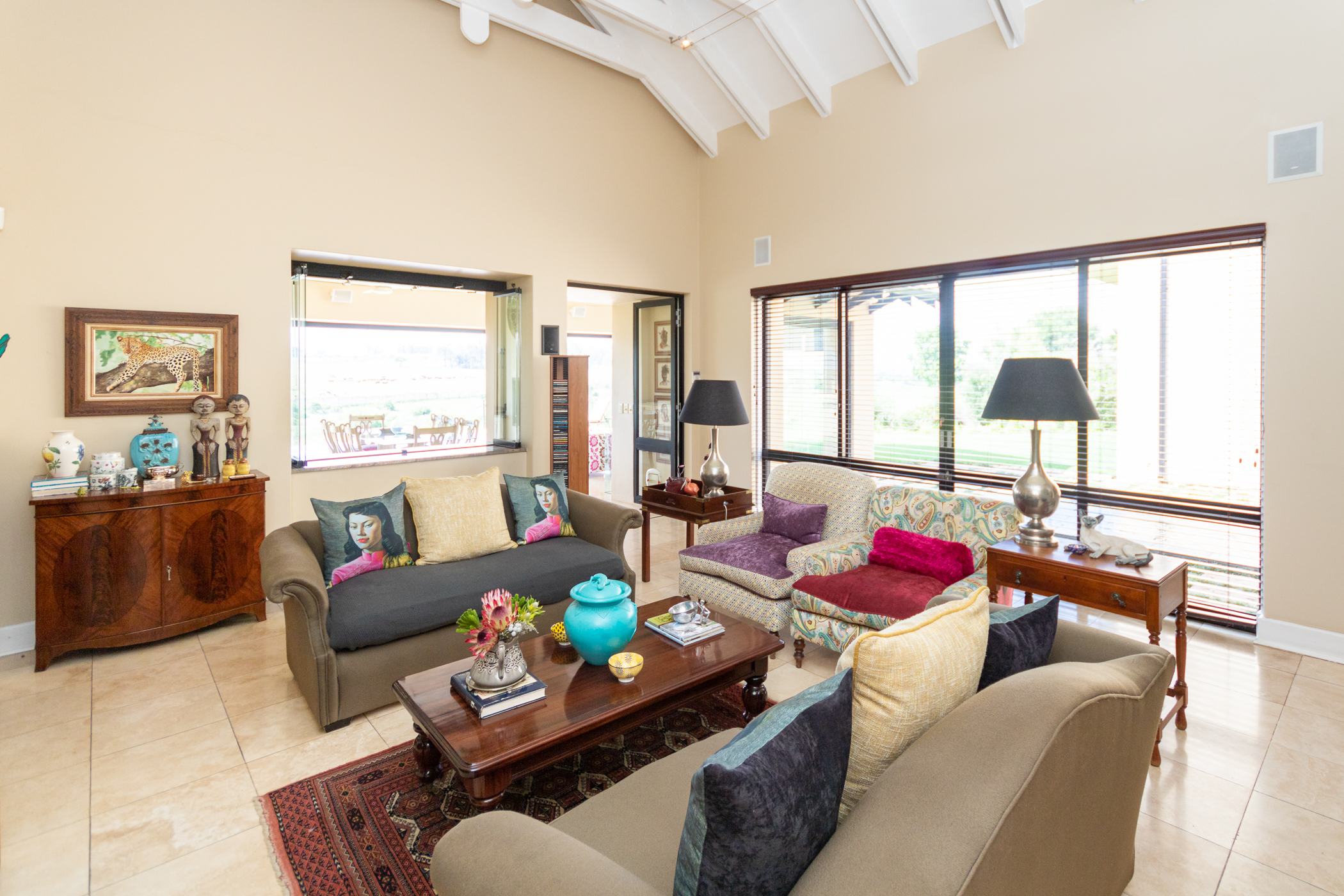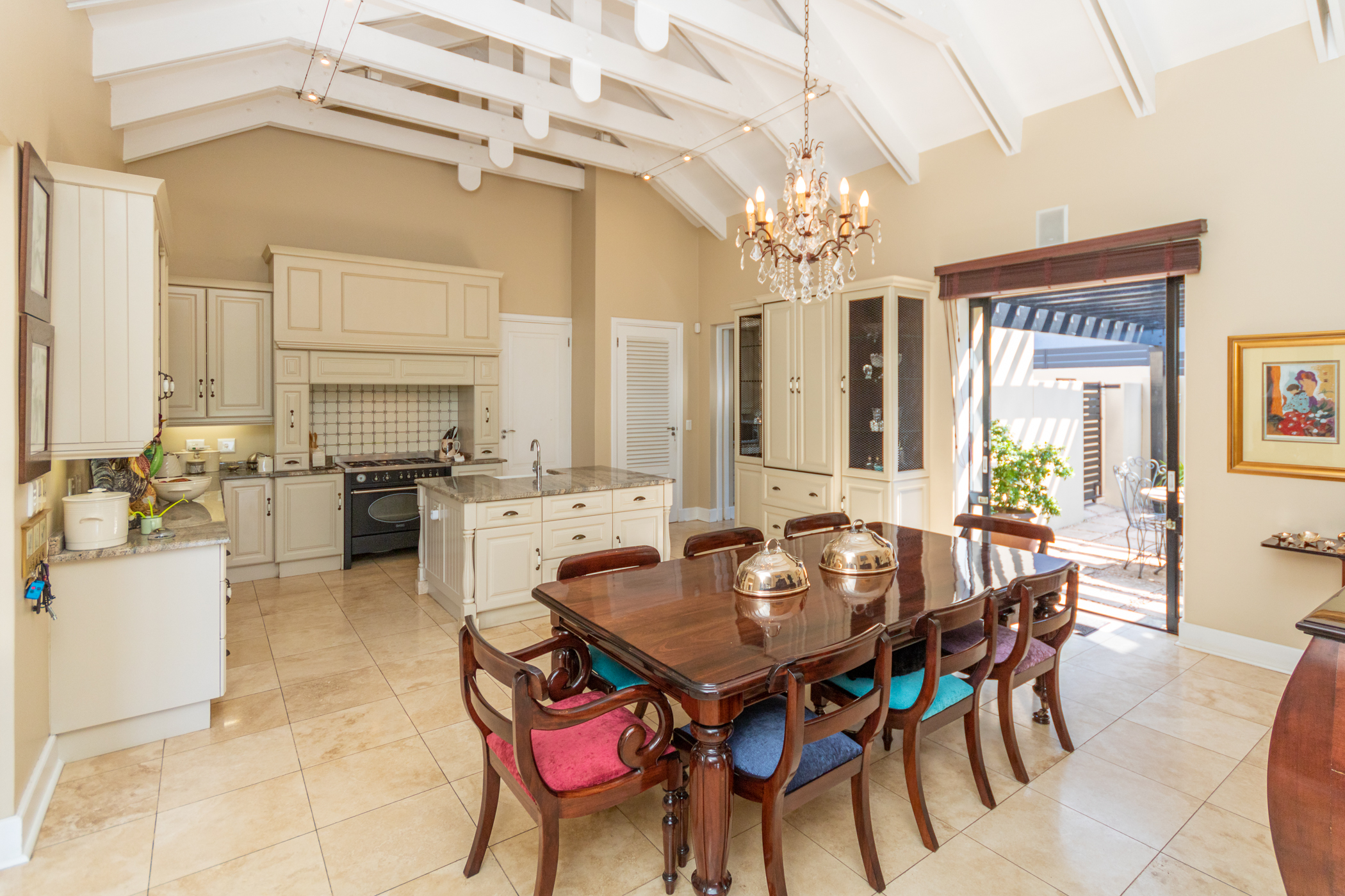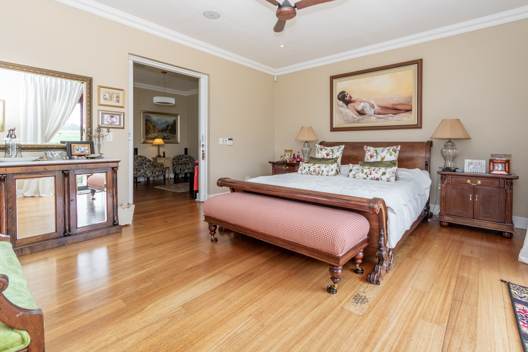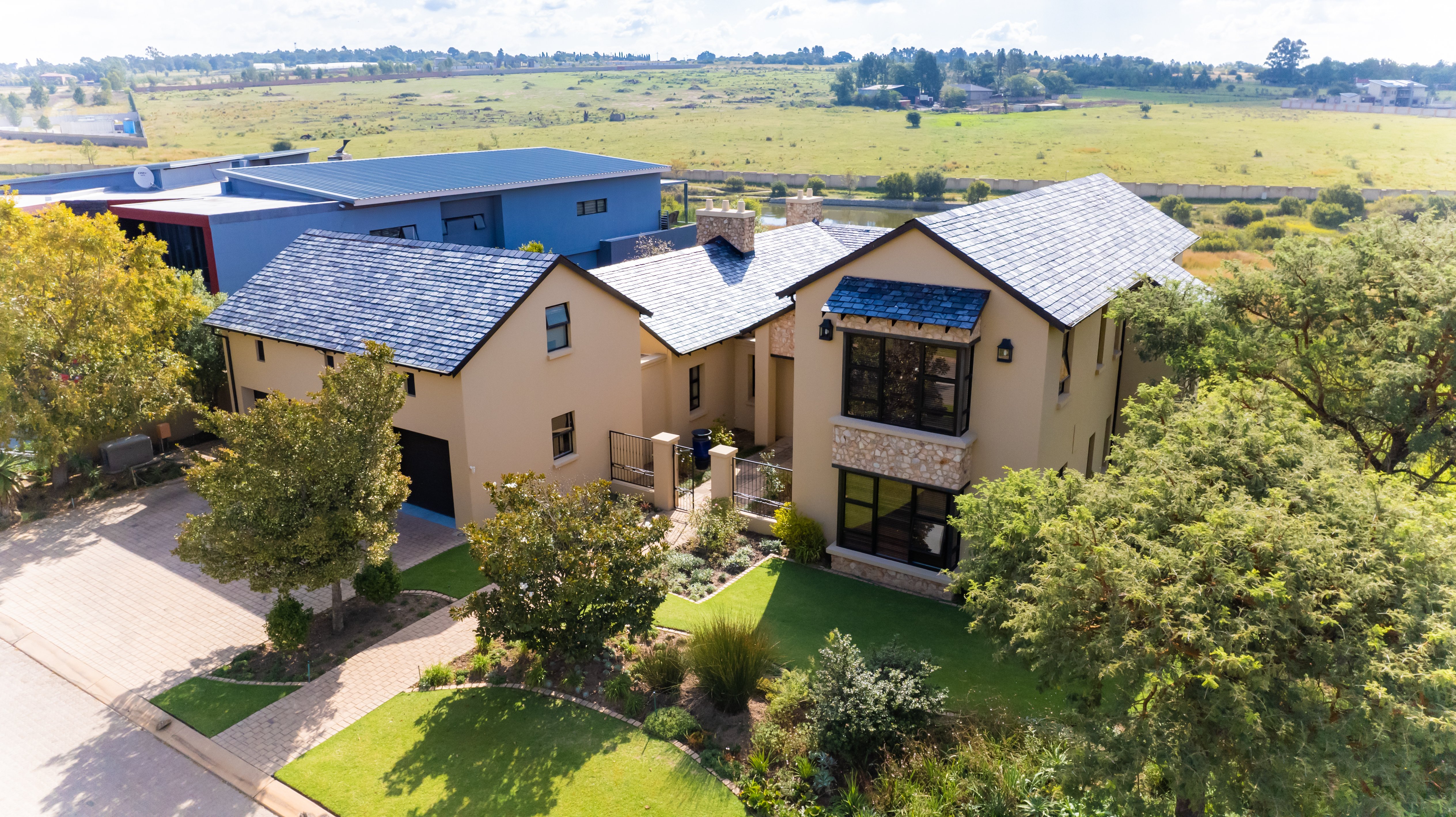 Modern comforts abound, including gas, a backup generator, a surround sound system, underfloor heating, and an irrigation system, ensuring convenience and luxury at every turn.
