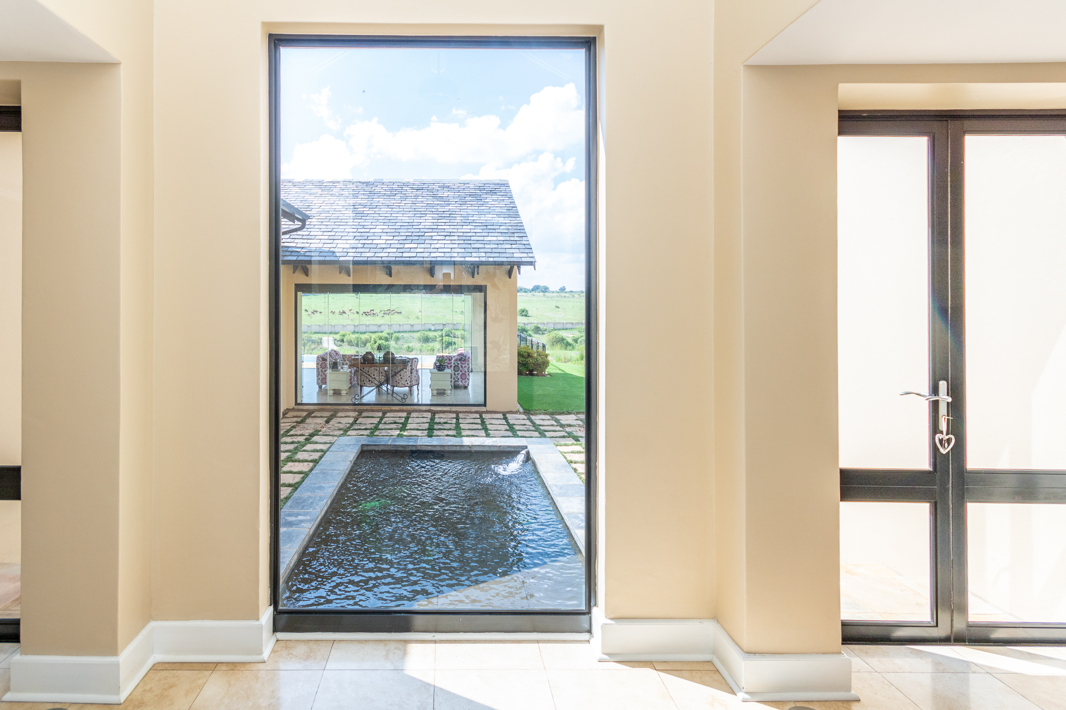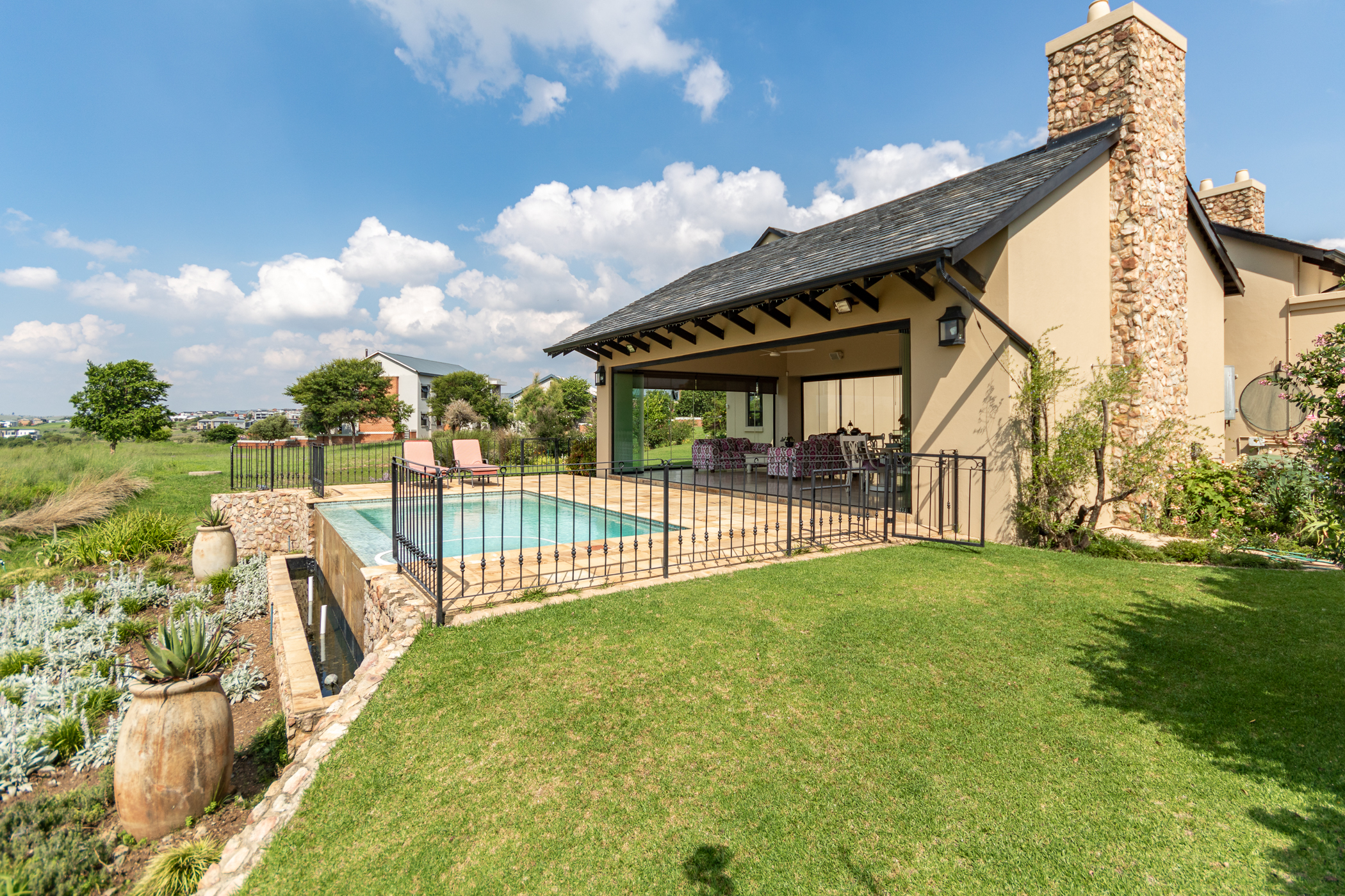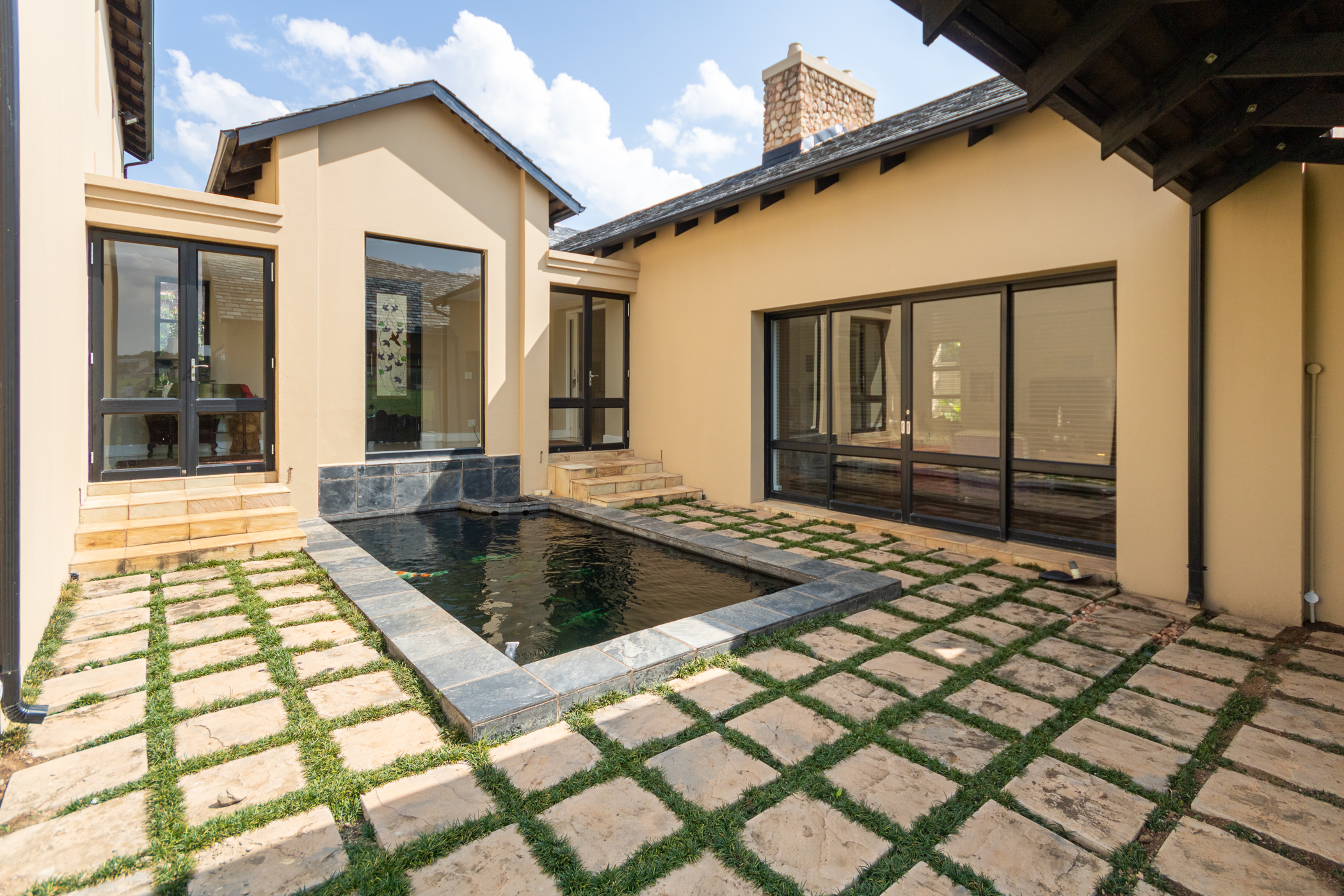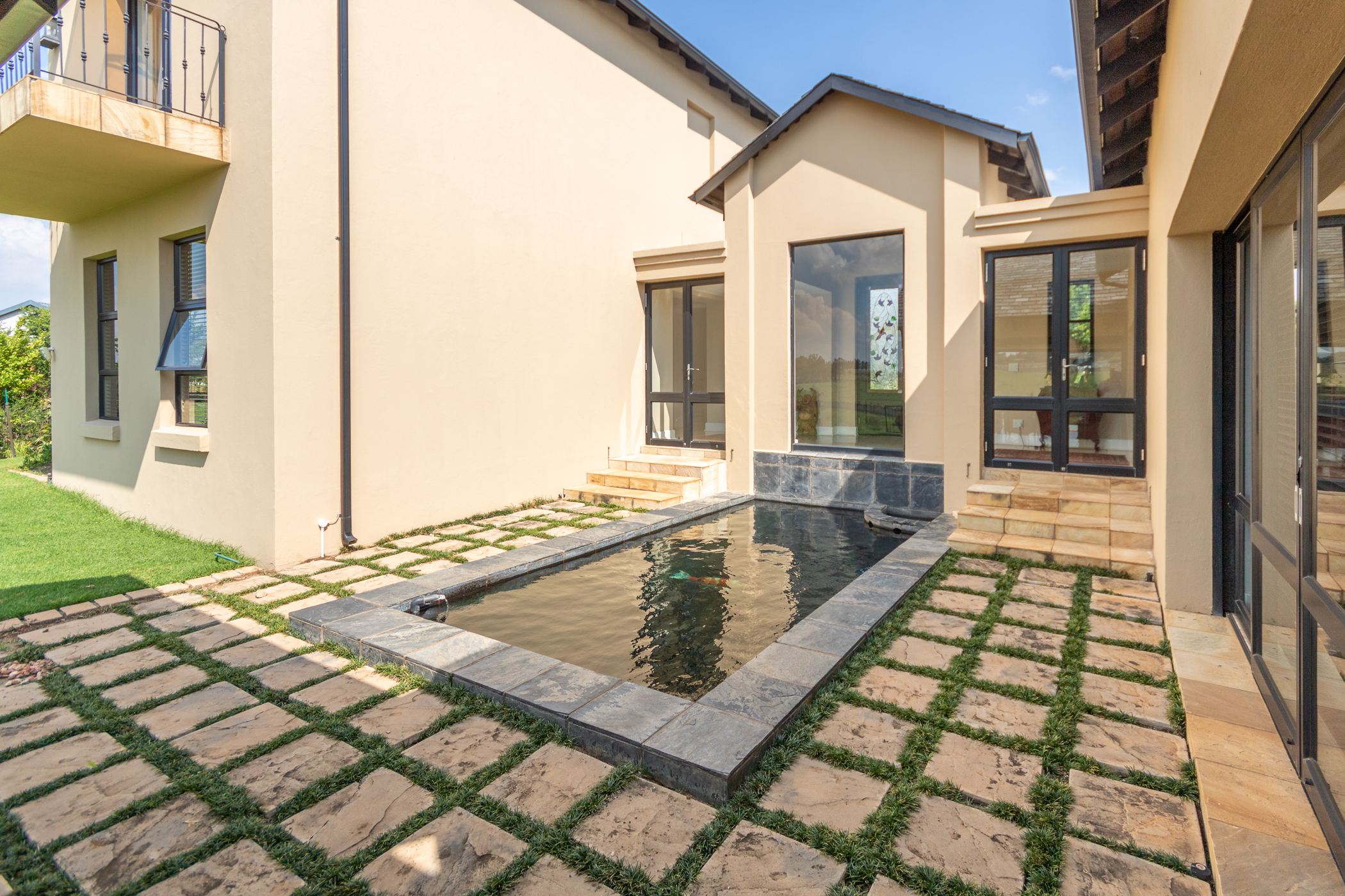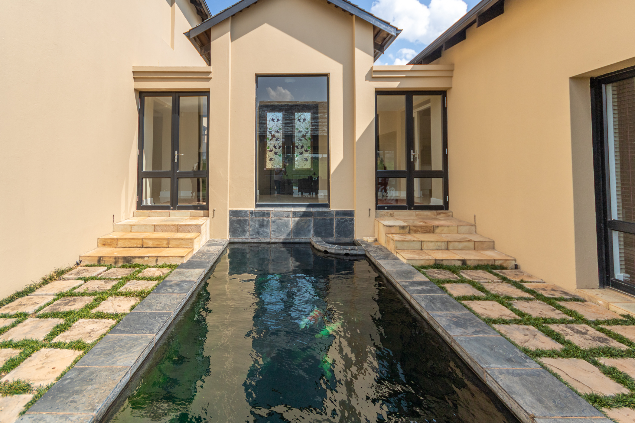 Indulge in the allure of French-inspired elegance with this enchanting 3-bedroom home nestled within the prestigious Copperleaf Golf Estate. From the moment you step through the bespoke glass double front doors, you're transported to the tranquil landscapes of France, greeted by the soothing melody of a Koi fishpond, setting a tone of serene sophistication.