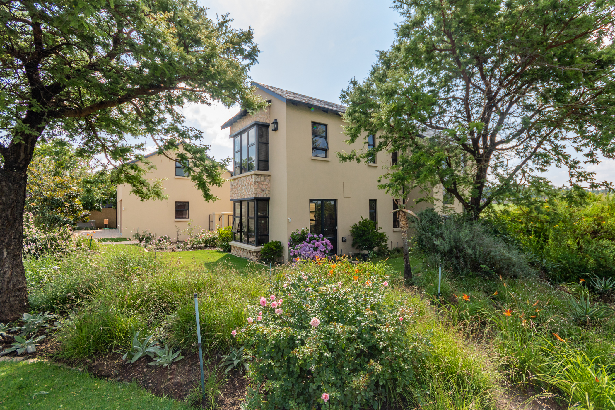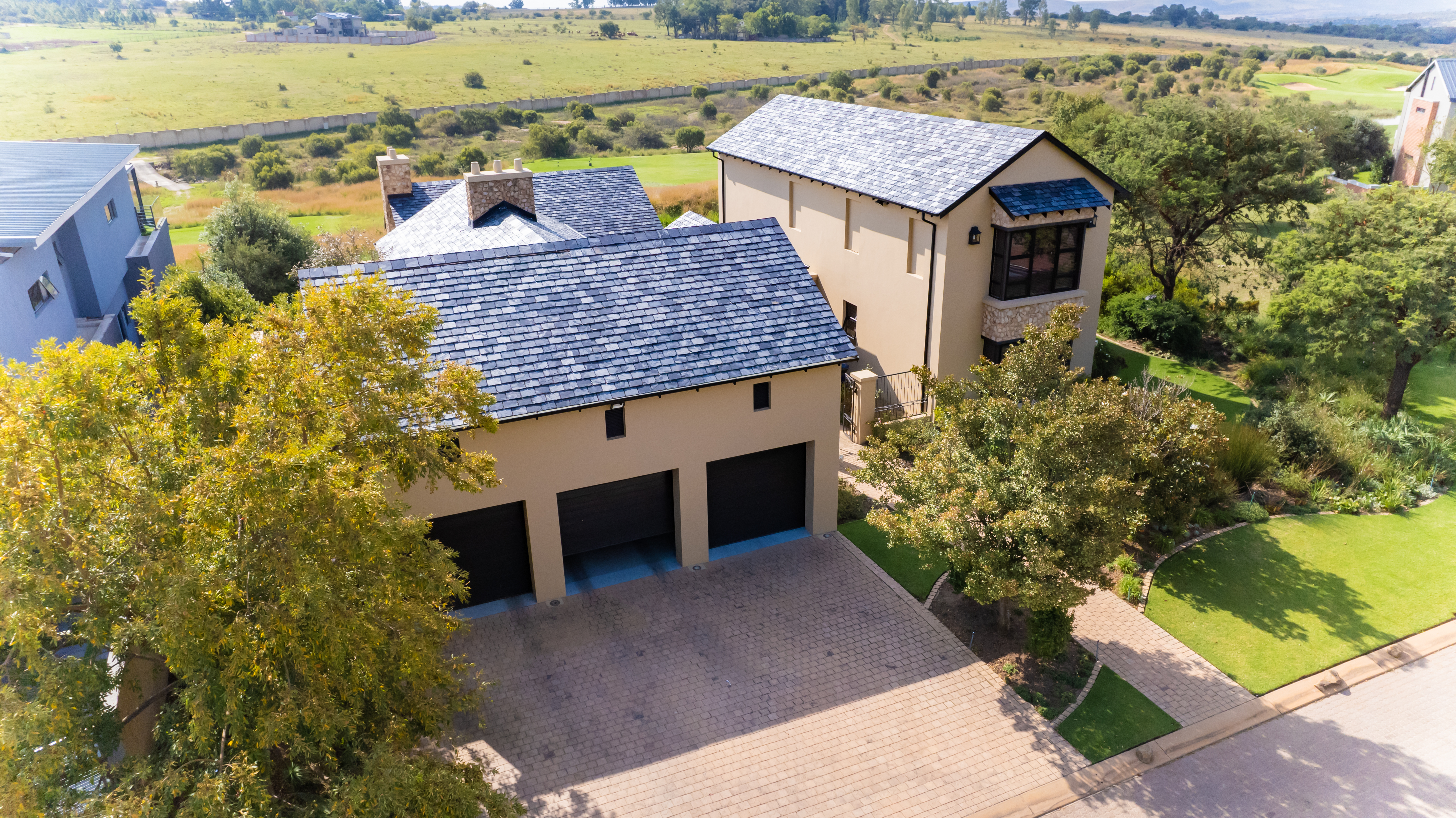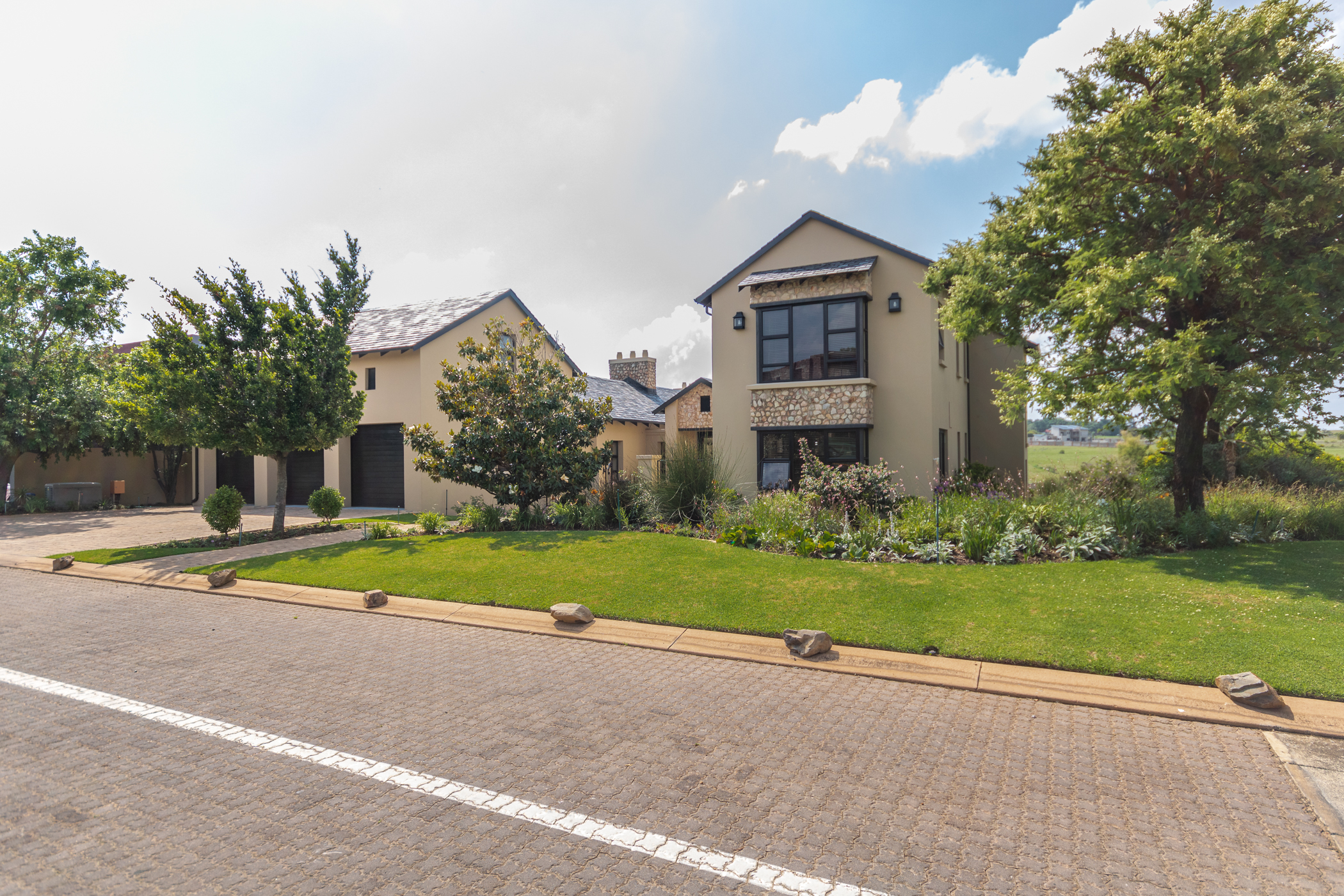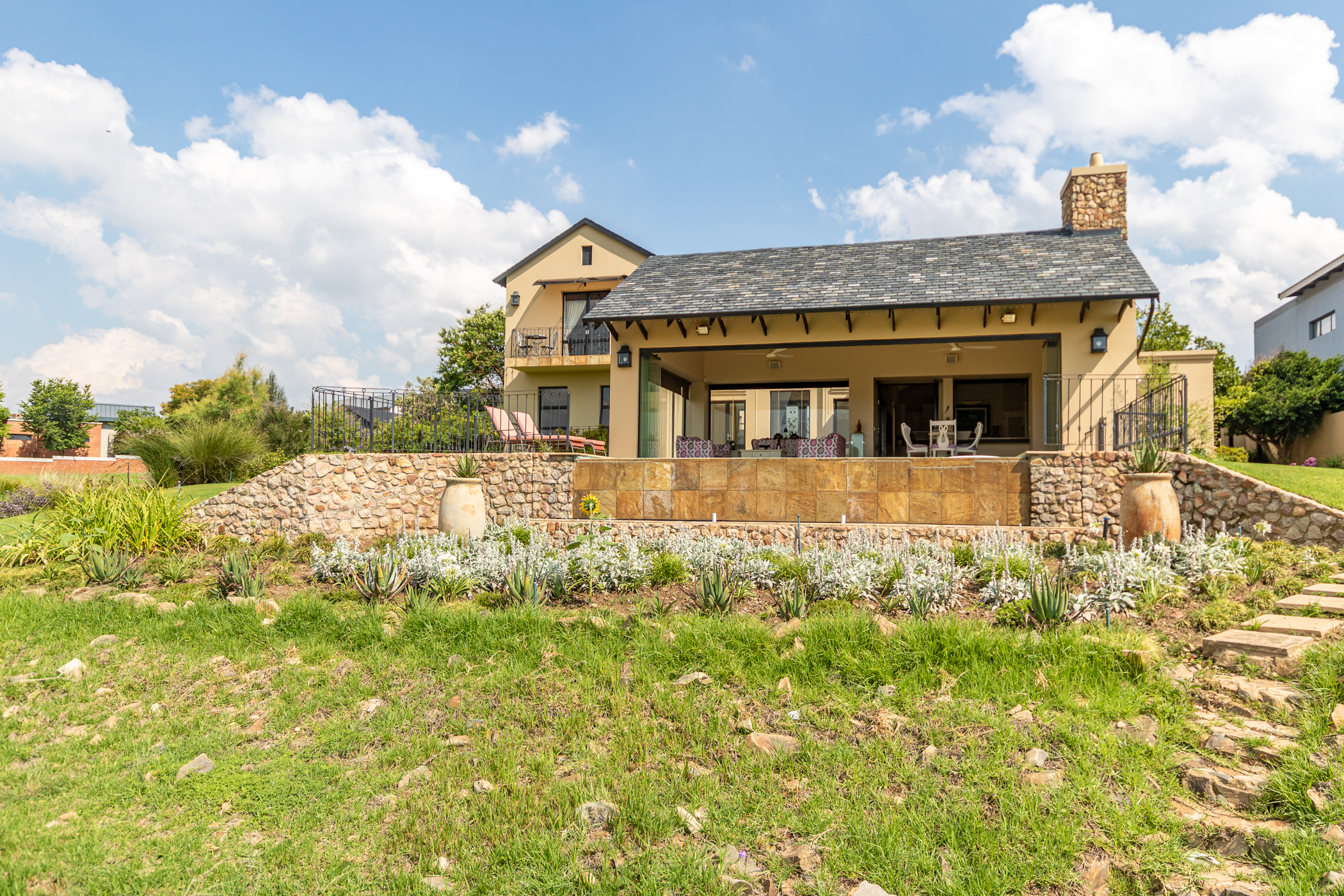 Downstairs, two well-appointed en suite bedrooms await, while upstairs, the luxurious master suite beckons with a walk-in cupboard, PJ lounge, small computer workstation, and a private patio. Additionally, a separate flatlet with its own entrance, kitchenette, and bathroom provides versatile living options offering the option to expand to a 4th Bedroom and Enormous Master Balcony. Three automated garages and two storage rooms cater to your practical needs.