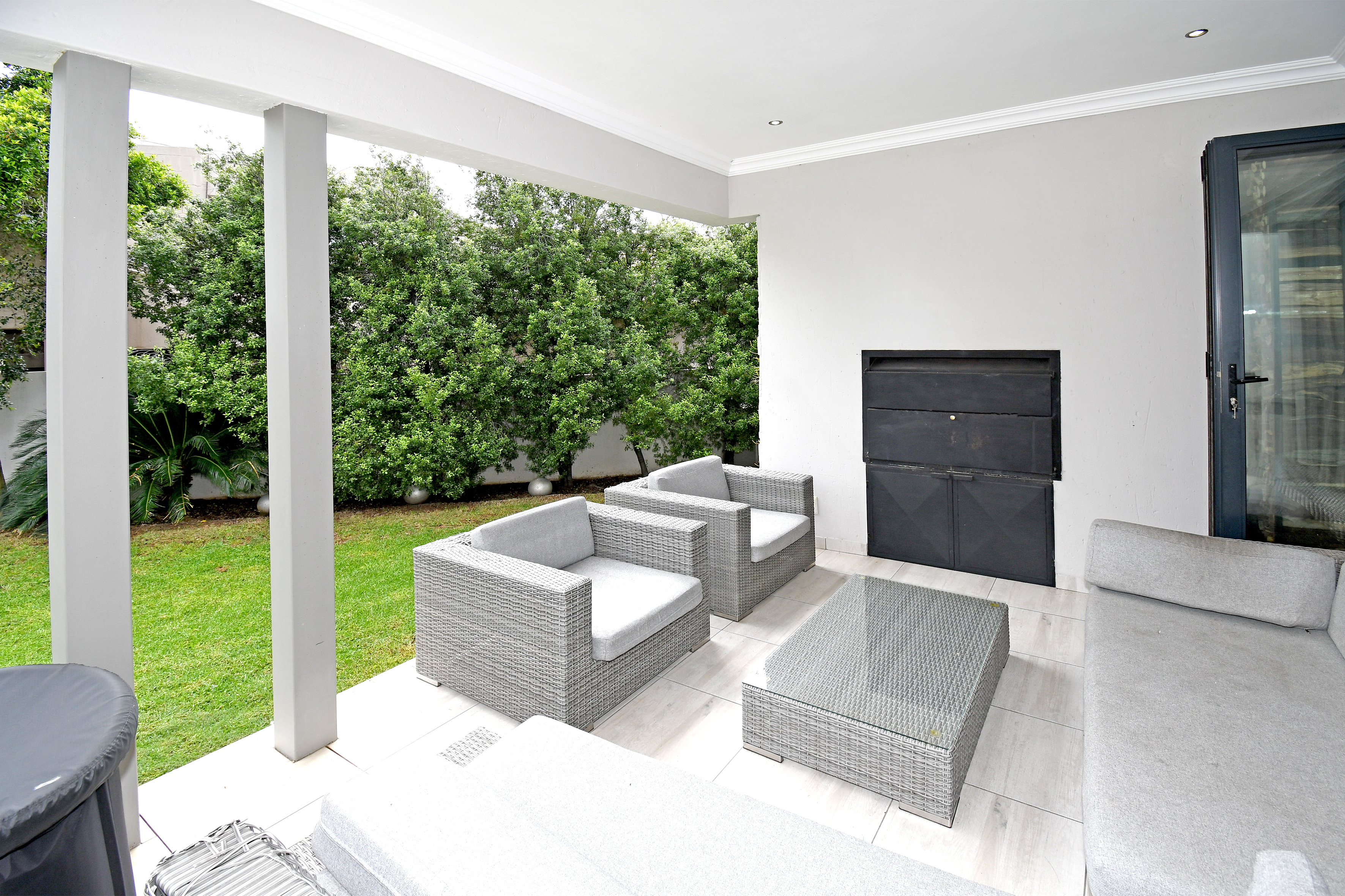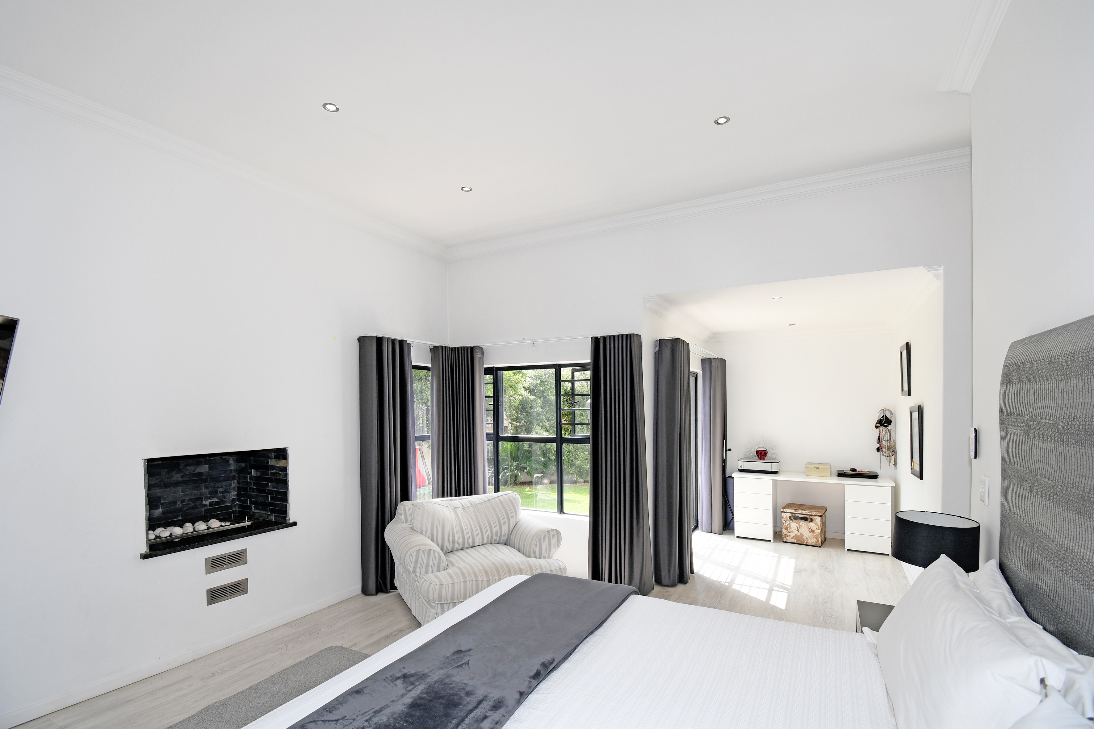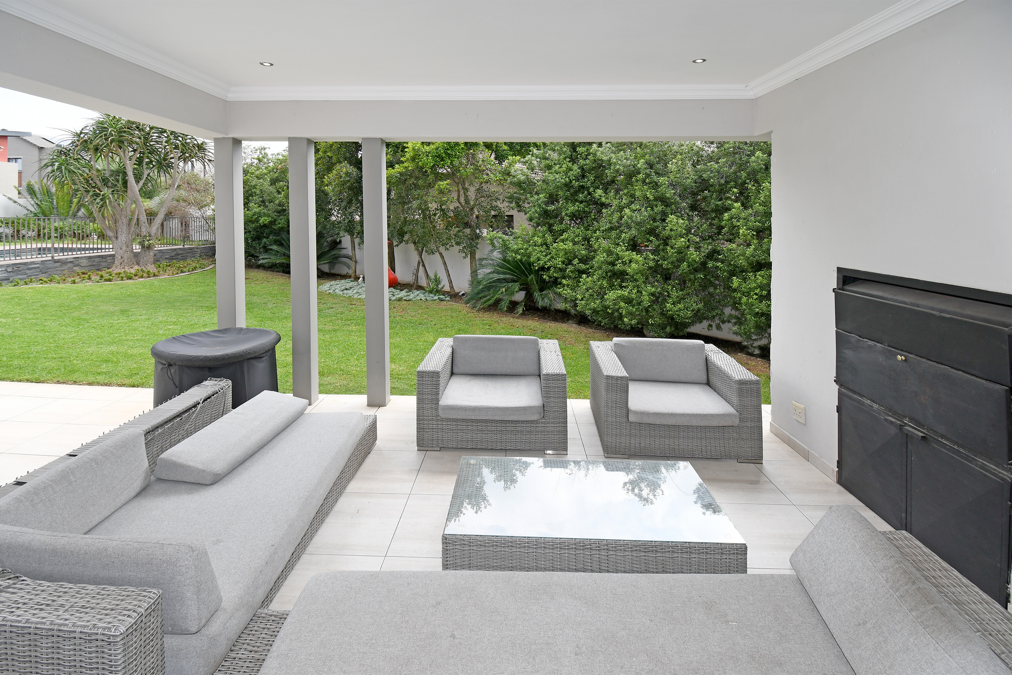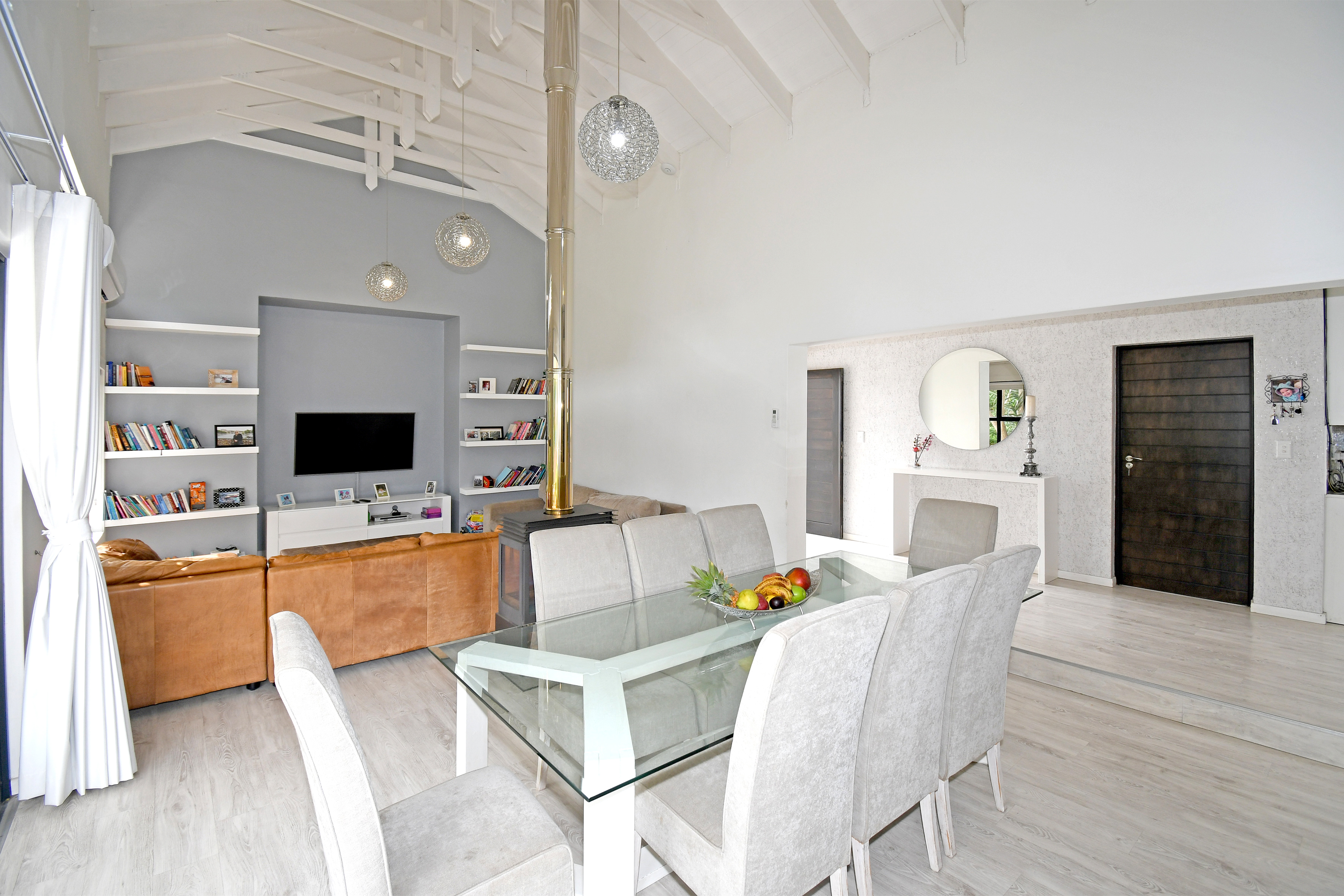 Beyond its cutting-edge energy efficiency, this revamped single-storey masterpiece is designed for those who love space, comfort, and entertaining. Step inside to a grand entrance hall that leads to an open-plan living and dining area, flowing seamlessly onto a covered entertainer’s patio with a built-in braai. From here, you step into a beautifully landscaped garden with a heated pool, perfect for year-round relaxation. When the temperatures drop, the elegant fireplace transforms the living space into a cozy retreat.