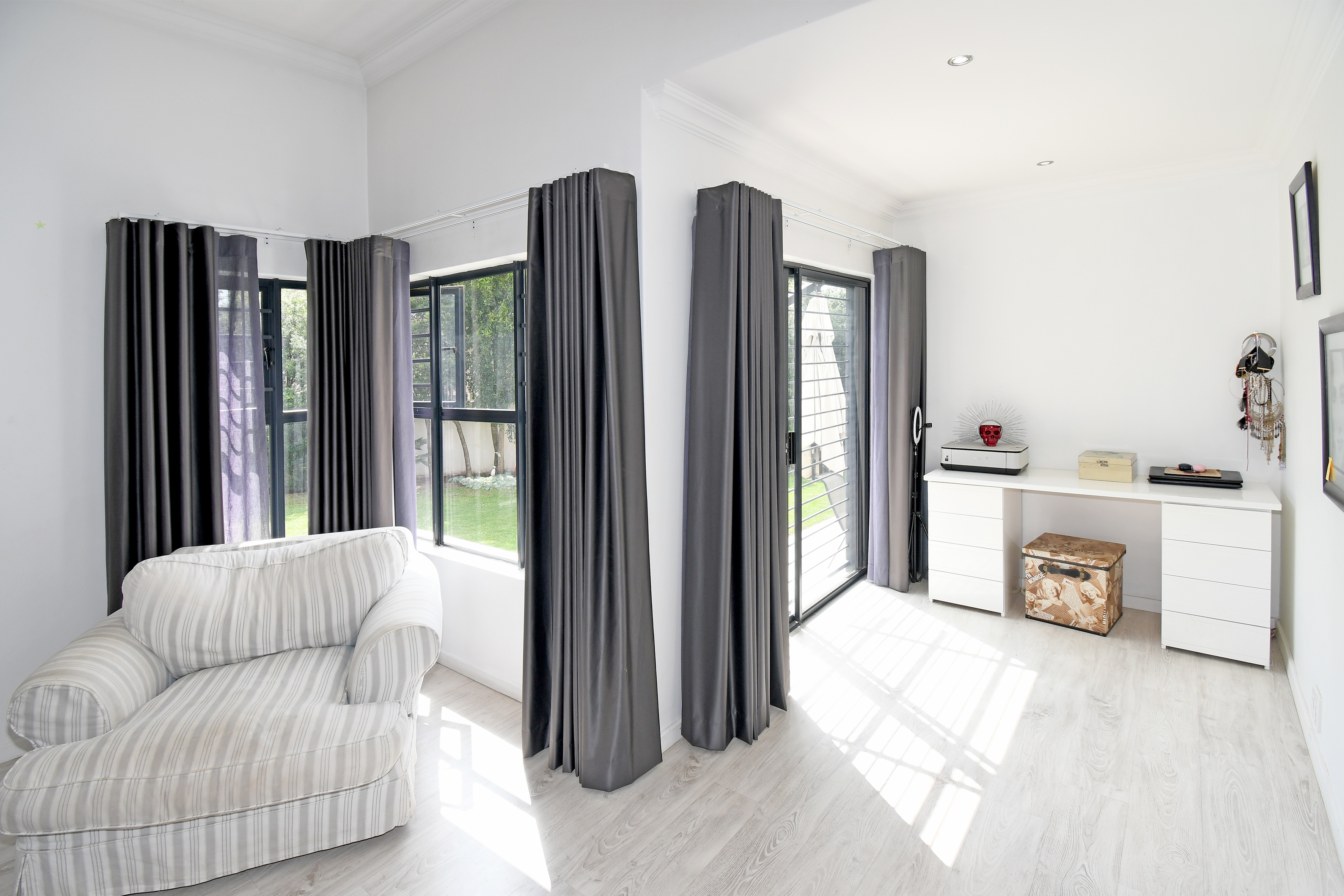 With four generously sized bedrooms, the home offers room to grow. The main suite is a sanctuary, boasting a luxurious en-suite bathroom and an expansive walk-in closet. A dedicated study area makes working from home a breeze, while staff accommodation ensures convenience.
