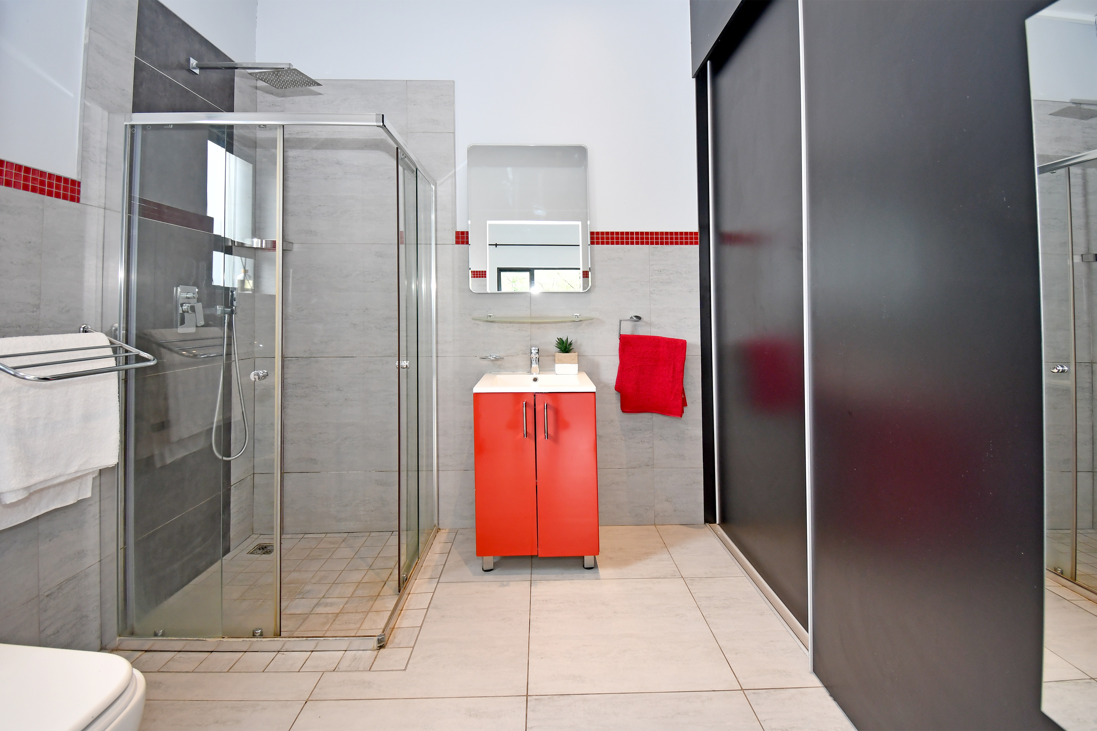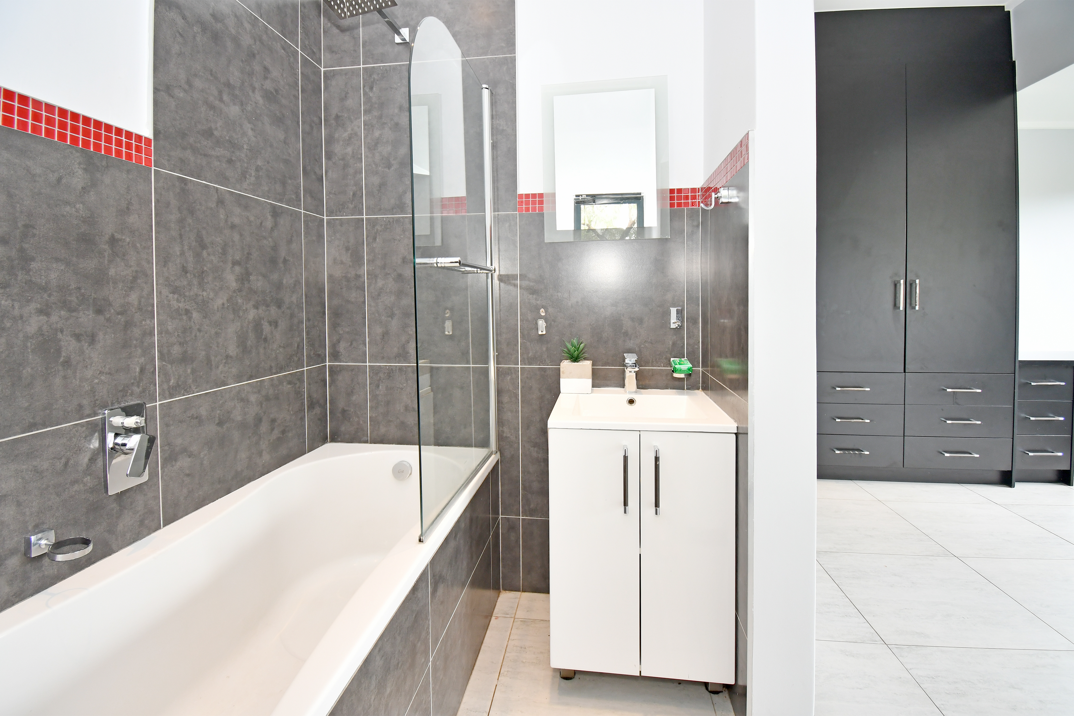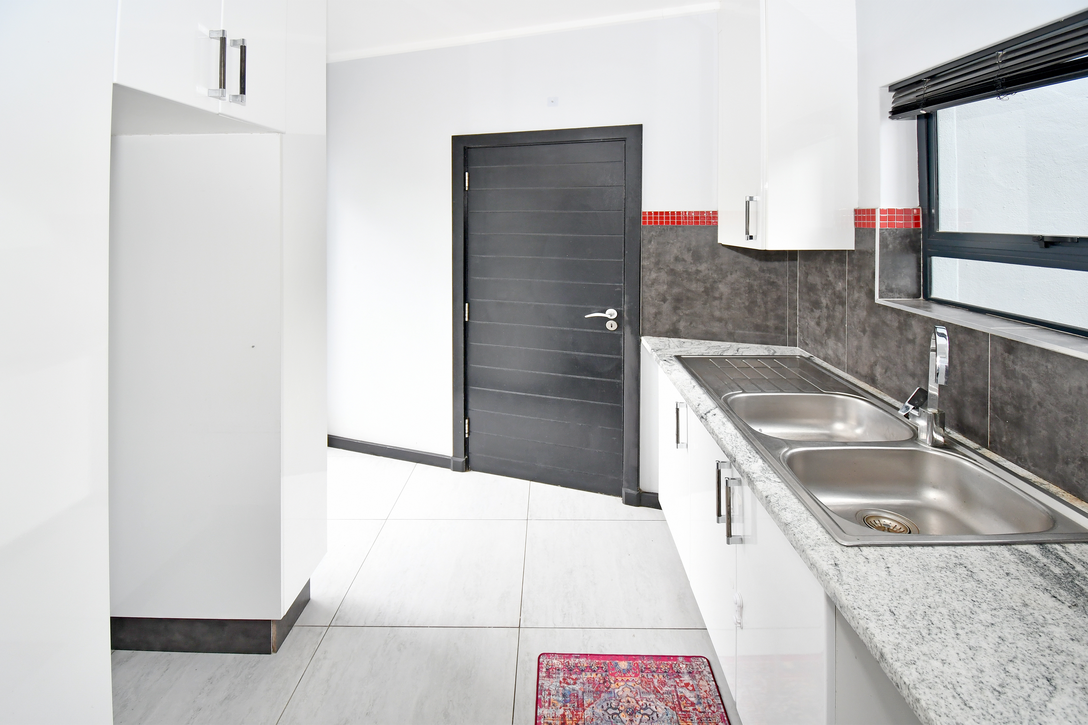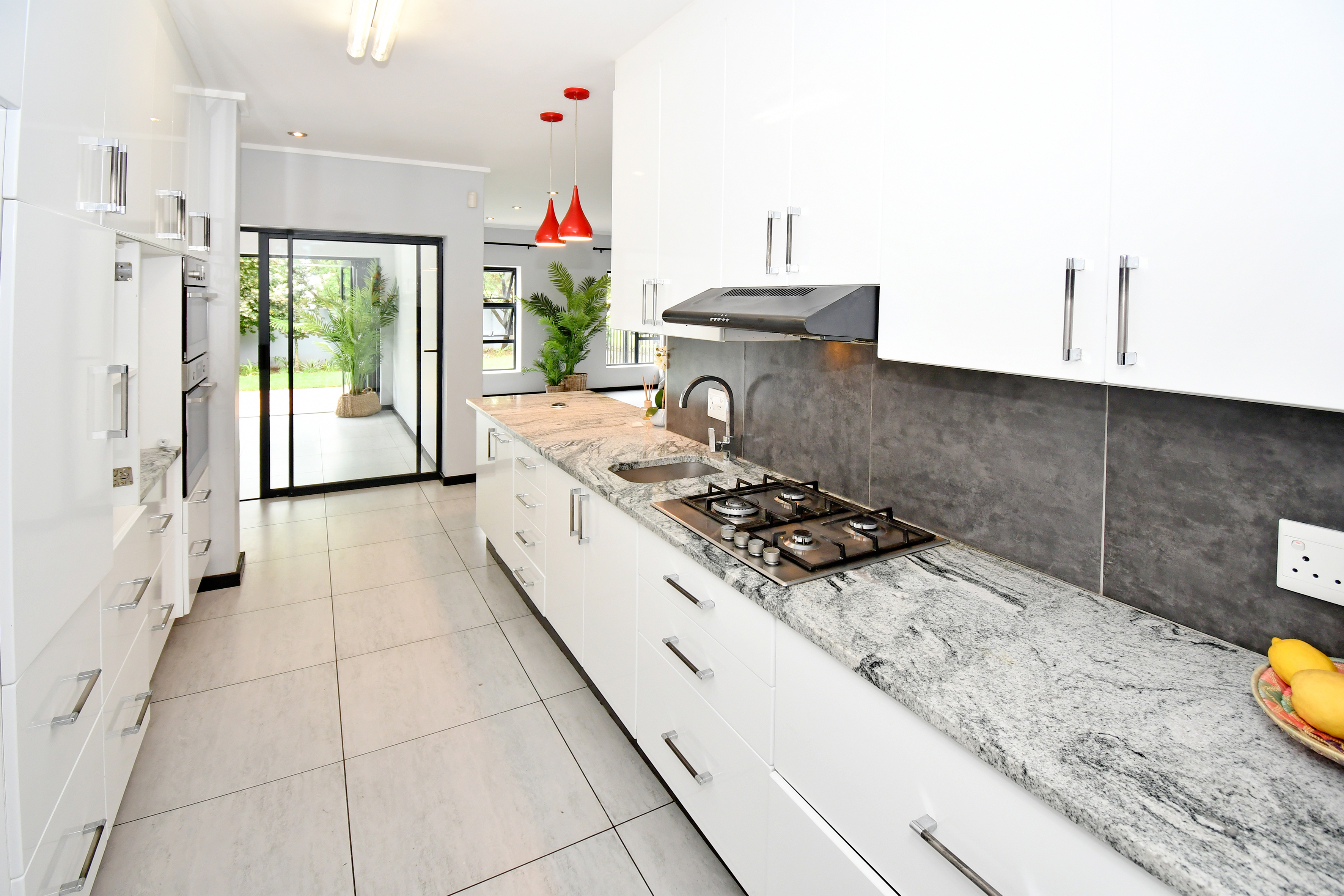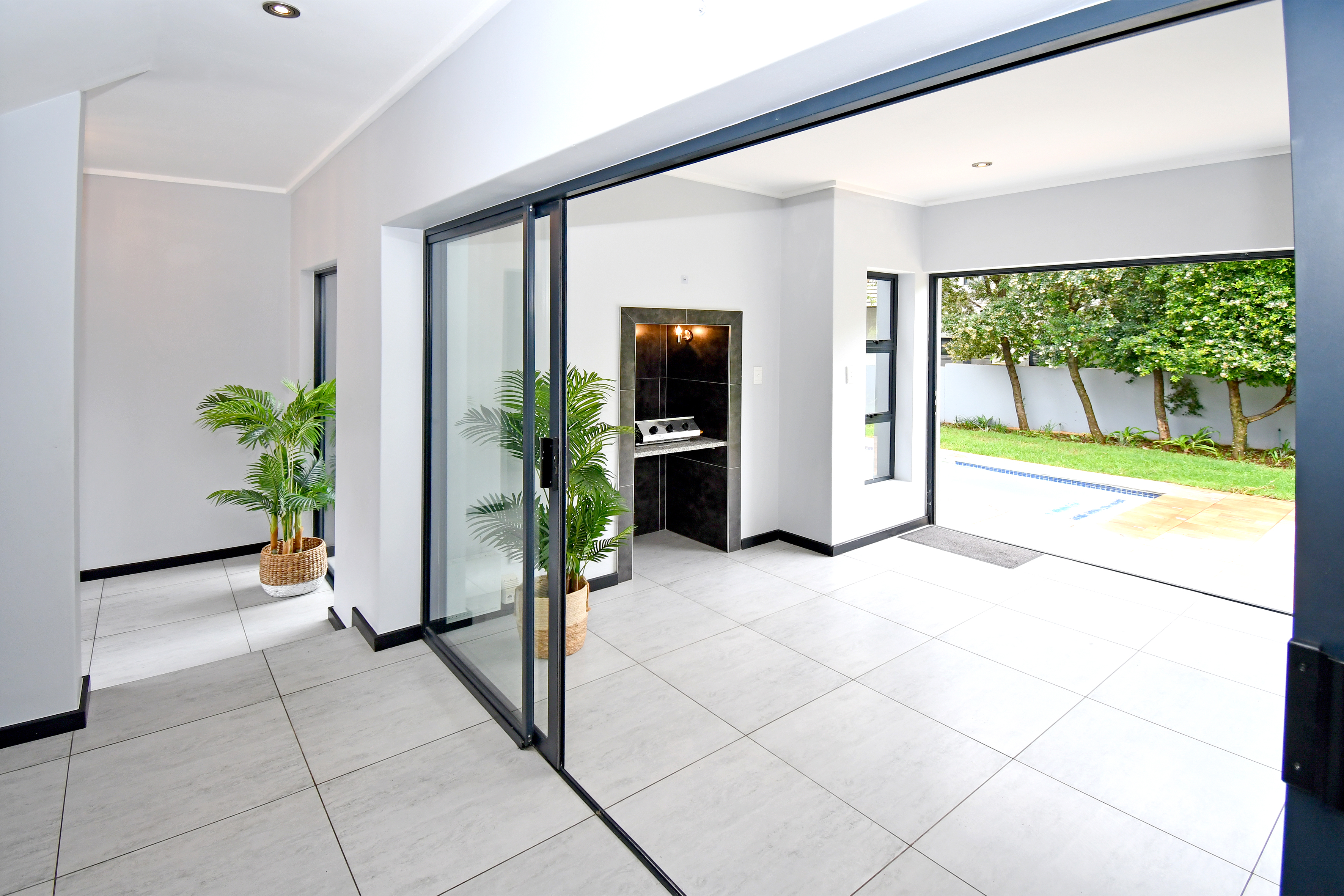 The interiors are modern, warm and thoughtfully designed, with no carpets anywhere and high-quality finishes throughout. The kitchen is a real highlight, offering two eye-level ovens, a gas hob and a separate scullery with space for two under-counter appliances. The living areas flow smoothly to a covered patio and a sparkling pool, creating an inviting space for entertaining or simply enjoying time with family.