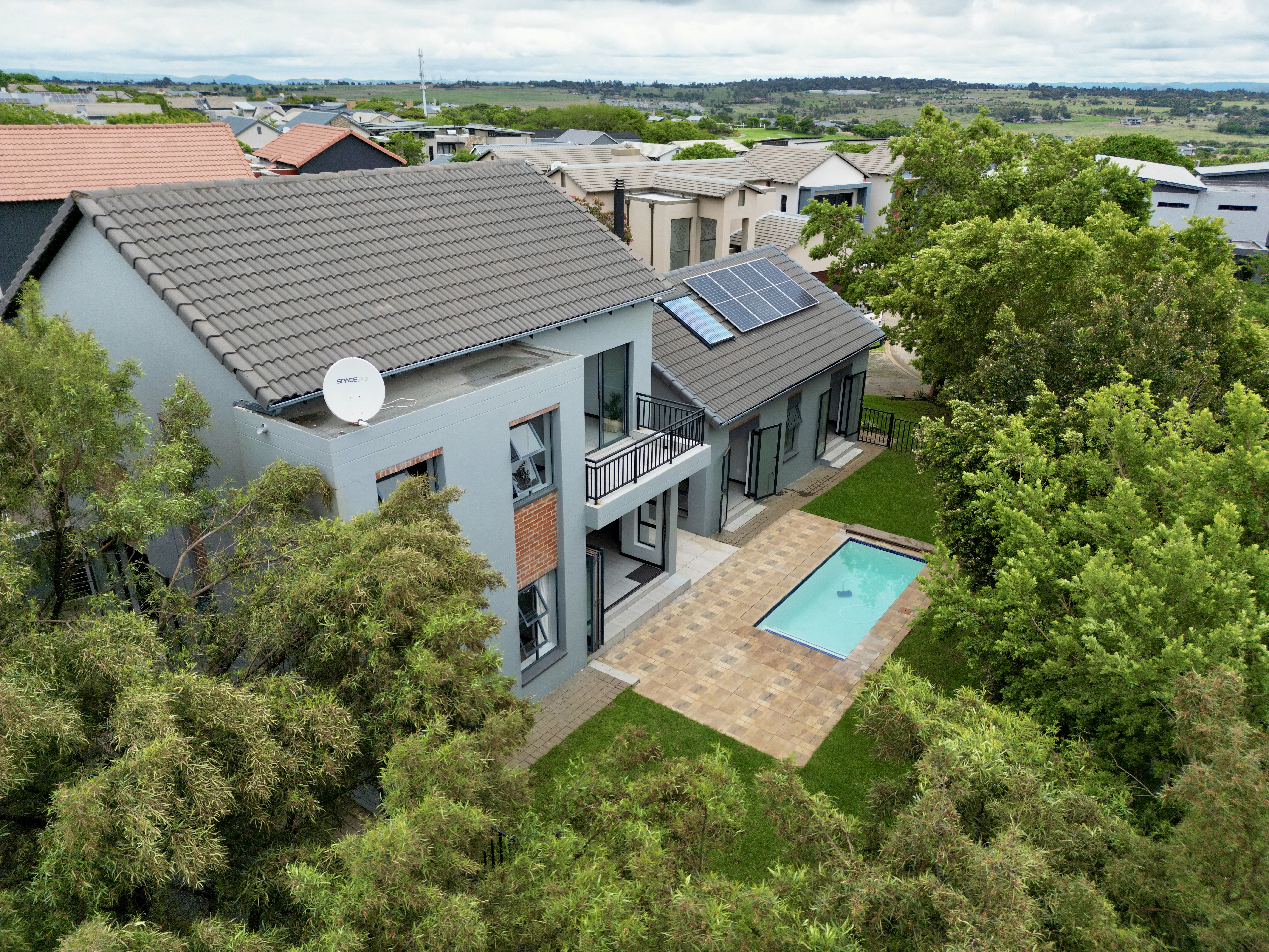 The property includes a solar system with six photovoltaic panels, a five-kVA Sunsynk inverter and a five-kilowatt-hour Sunsynk battery, which helps reduce running costs and provides reliable backup power. Additional features include a double garage and a staff quarters that can also be used as a convenient golf cart parking space.