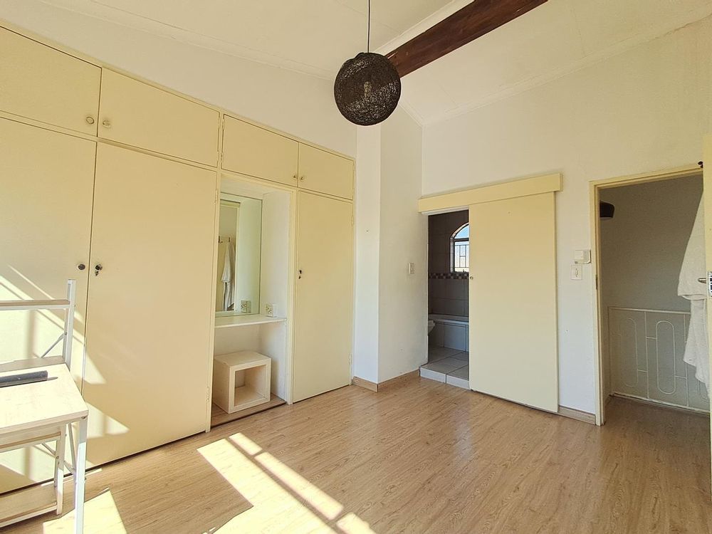 UPSTAIRS, you'll find a spacious bedroom featuring built-in cupboards and a vanity dresser complete with a mirror. The room boasts elegant laminated flooring and is complemented by an en-suite bathroom equipped with a bath, shower, basin, and toilet.